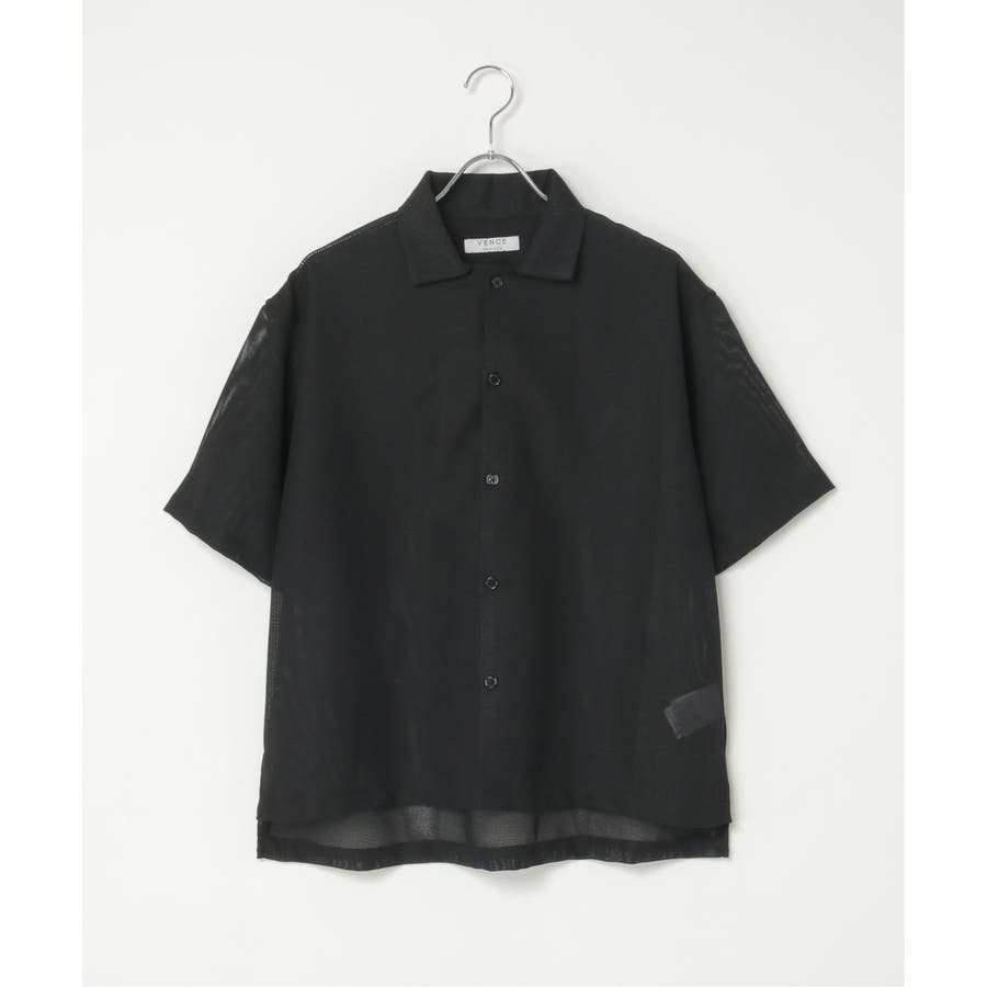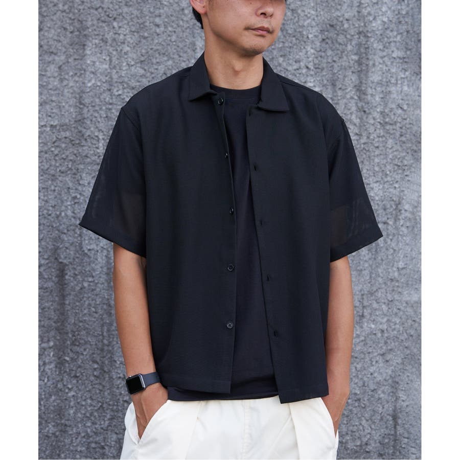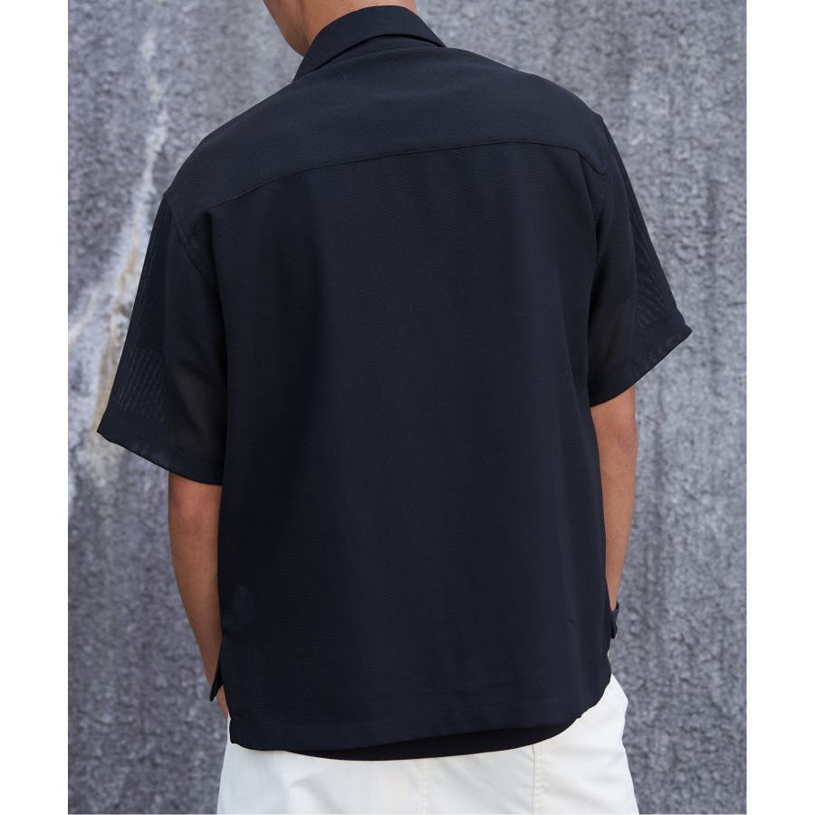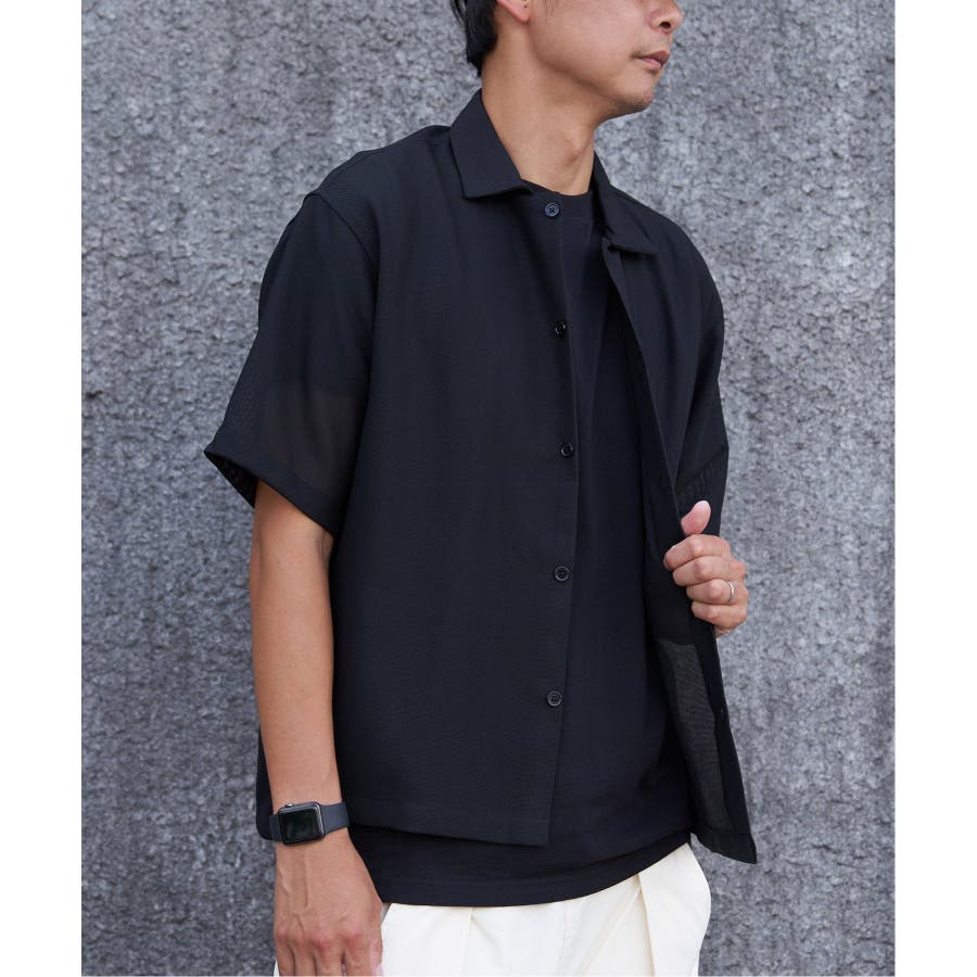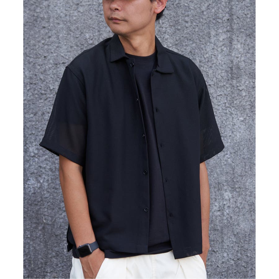 透け感と風通しの良さが魅力のシアーメッシュ素材で仕立てた、夏にぴったりの半袖シャツ。