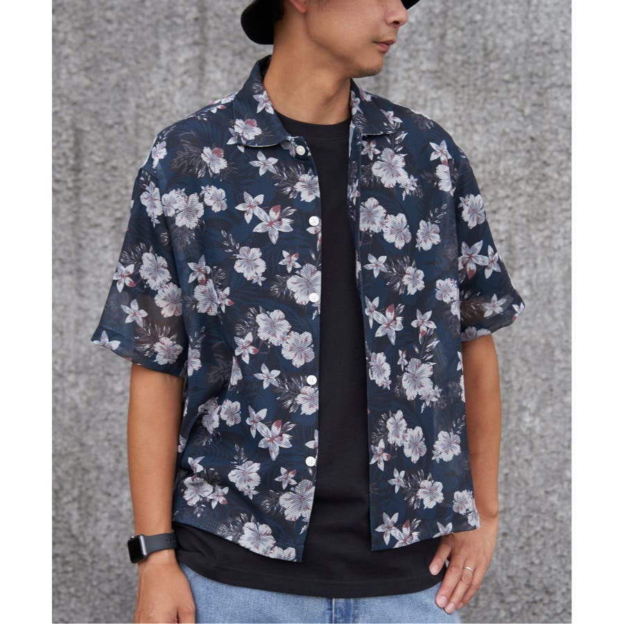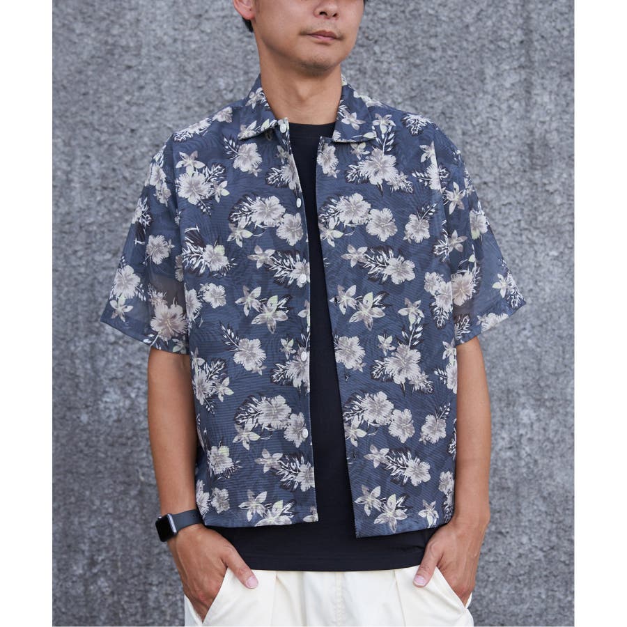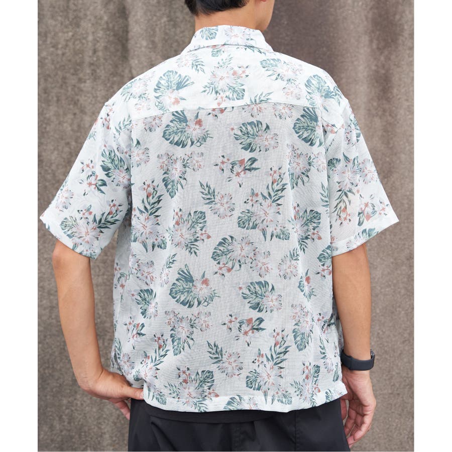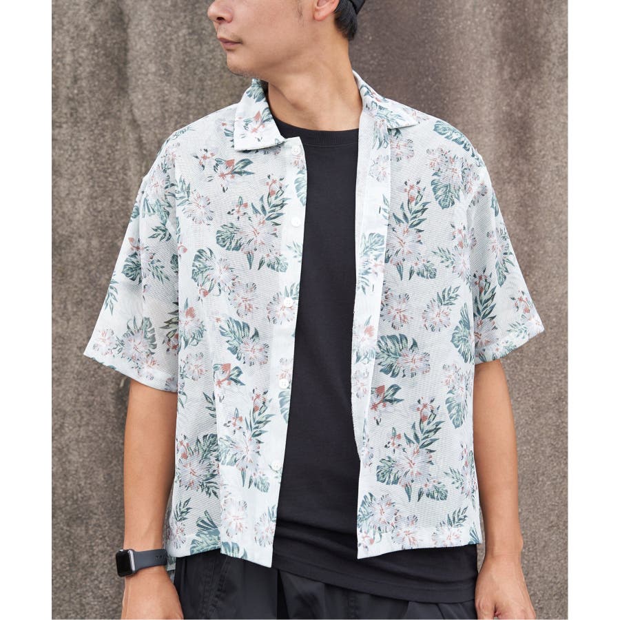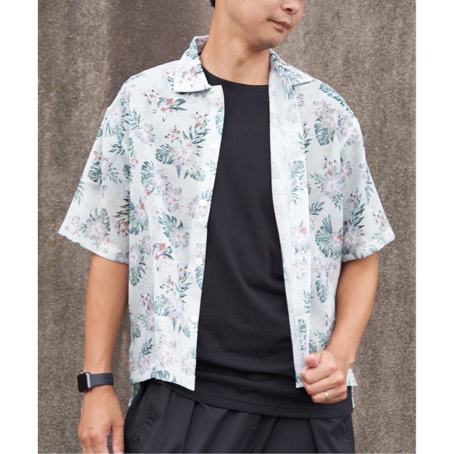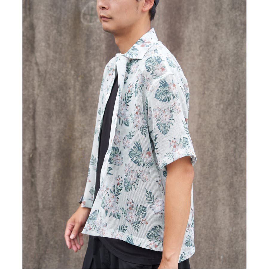 透け感と風通しの良さが魅力のシアーメッシュ素材で仕立てた、夏にぴったりの半袖シャツ。