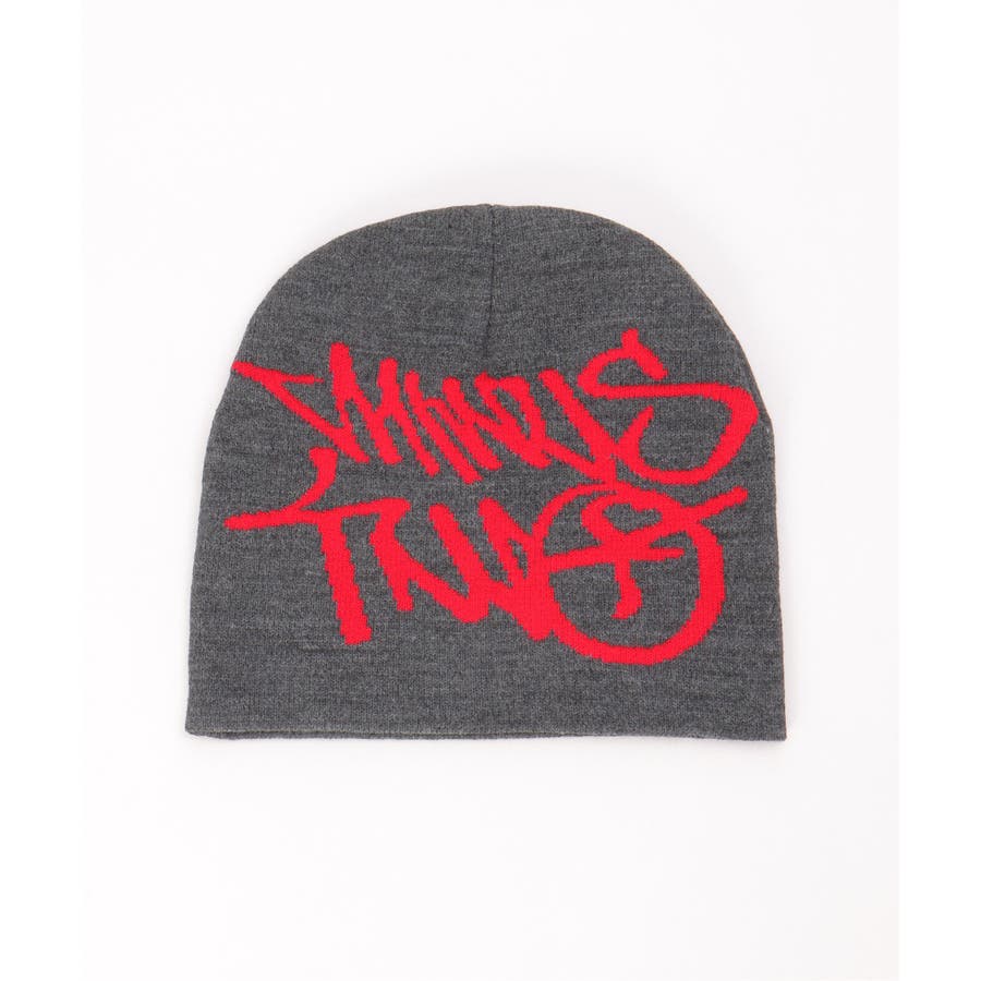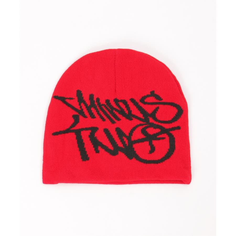 ストリートアート風のグラフィティデザインがアクセントのビーニーニット帽。
