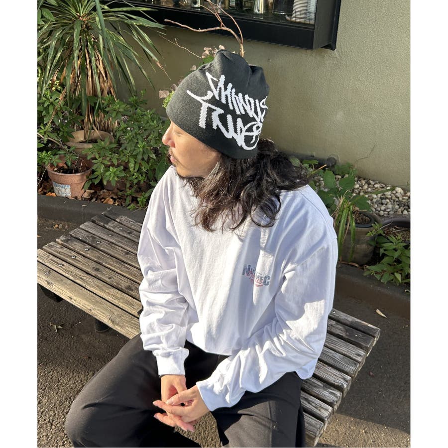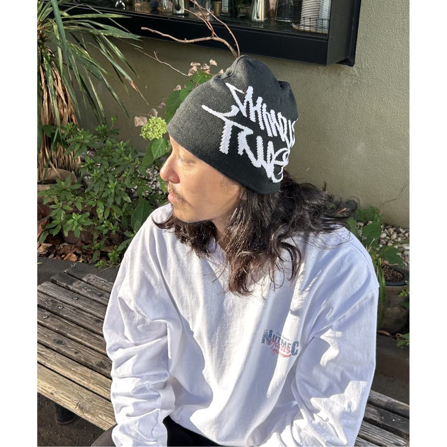 大胆なグラフィティデザインが目を引くニットキャップ。