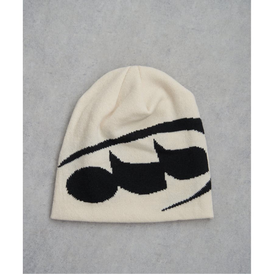 視線を引き寄せるモチーフ柄を落とし込んだ、存在感のあるビーニーニット帽。