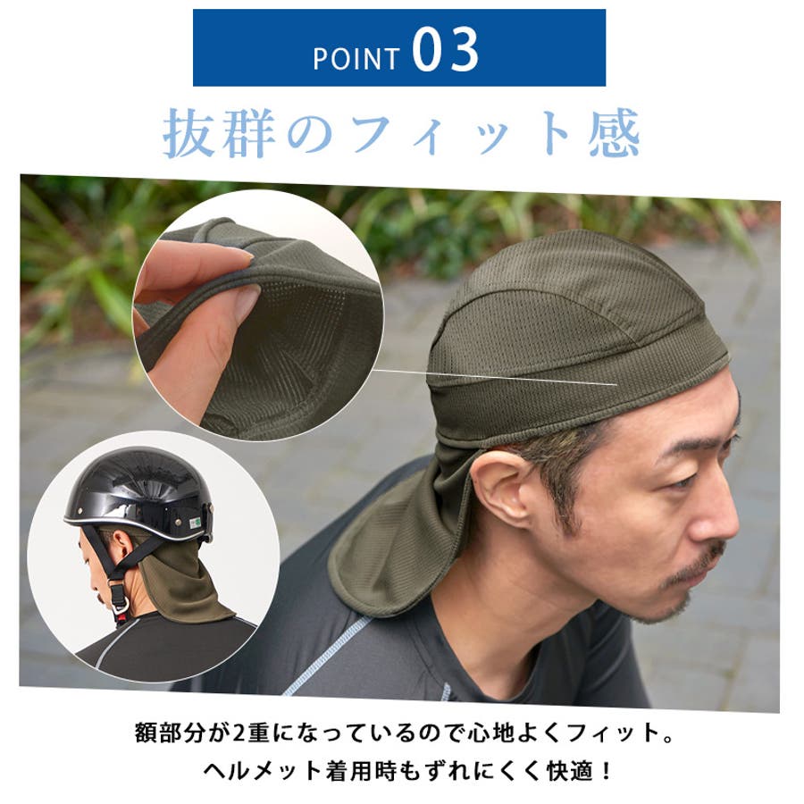 汗止めや熱中症対策としてヘルメットや帽子などのインナーキャップとして使えます。