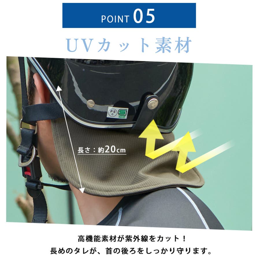 しっかり首元を覆えるデザインにし、UVカット効果のある生地で首の後ろの日焼け対策になります。