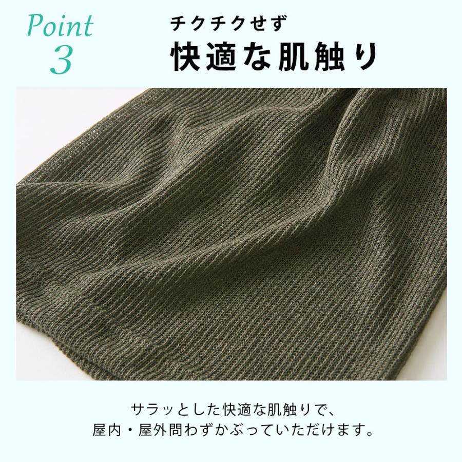 薄く通気性があり、チクチクしないサラっとした生地で肌さわりも快適。