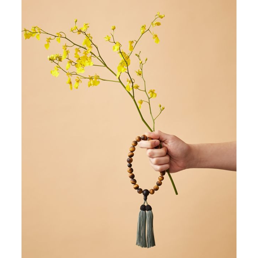 平安遷都より一千年をこえる長きに渡り脈々と受け継がれてきた伝統の技を重んじ、格式のある念珠製作に努める傍ら、自由な発想による斬新なデザイン商品も手掛けている 土屋念珠 で作られたお念珠。男性の手にしっくり馴染みます。専用袋つきなので、気軽にお念珠を持ち運ぶことが出来ます。