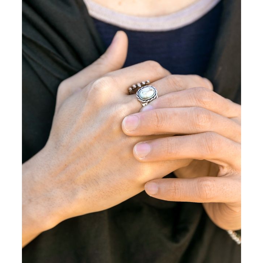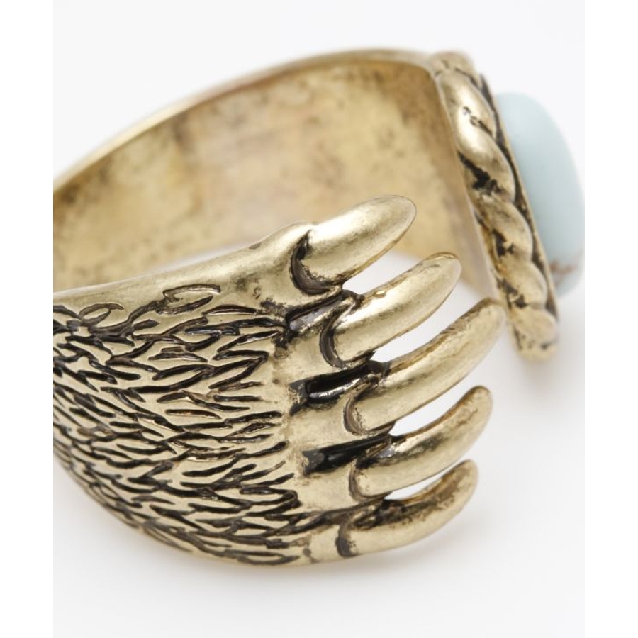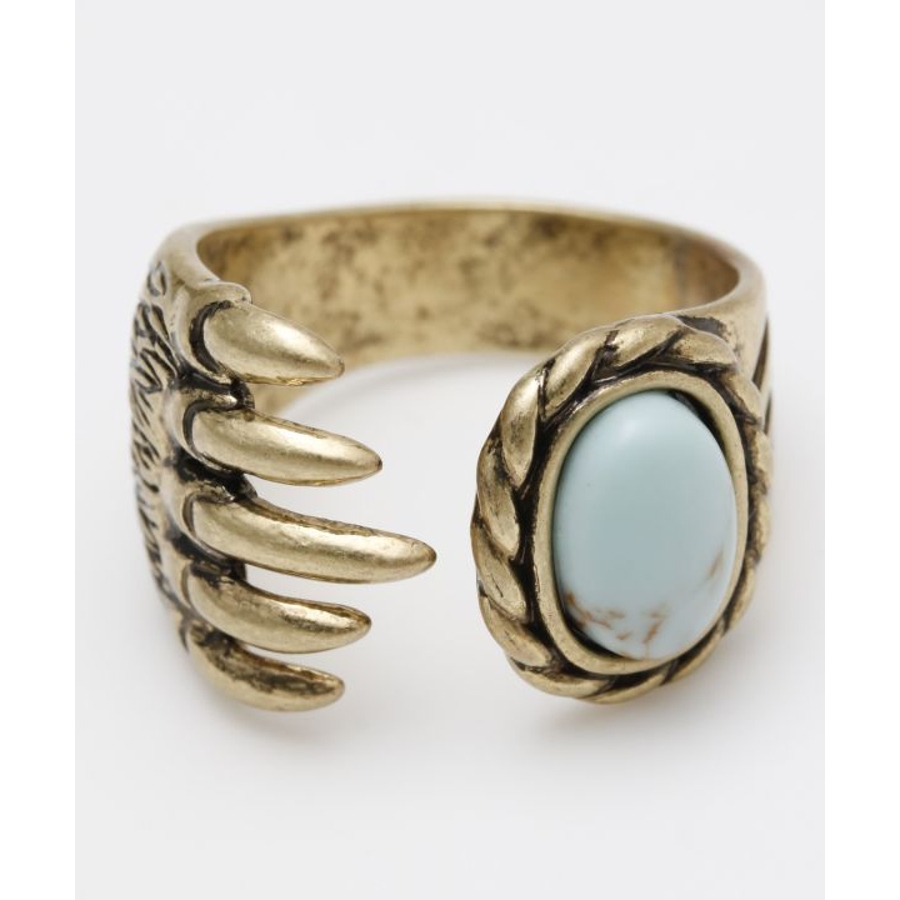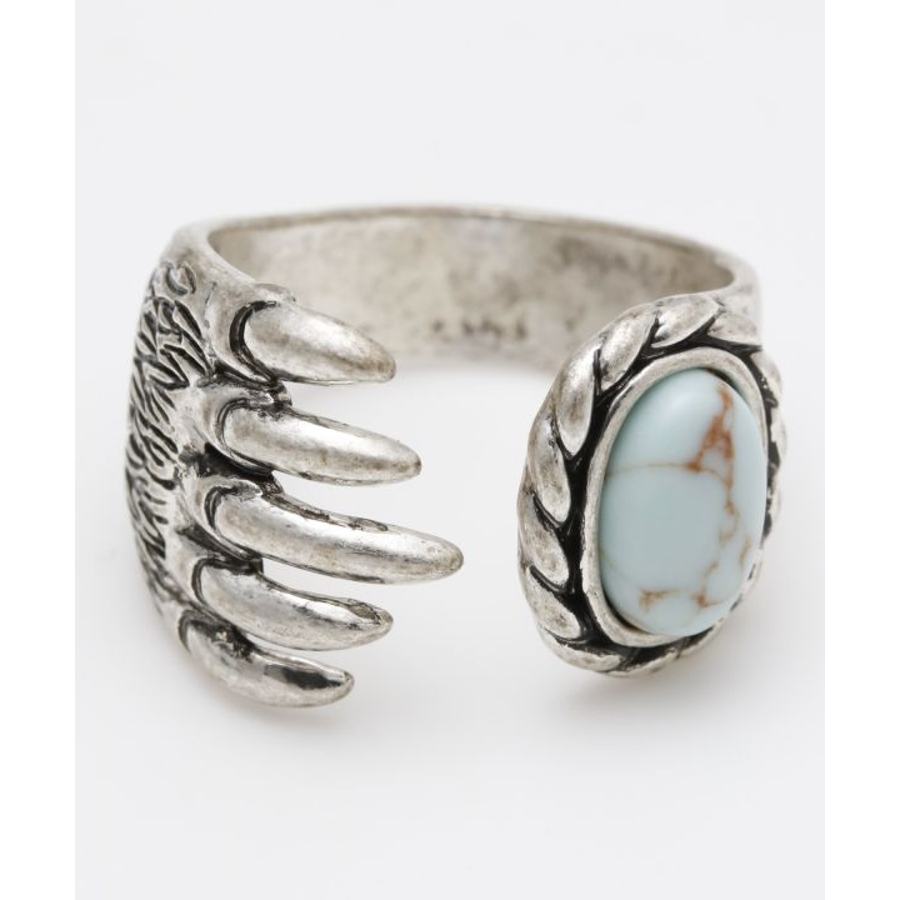 ベアクロウ(熊の爪)のモチーフにターコイズを組み合わせたリング。熊はネイティブアメリカンの神話に多く登場し、パワーや強さの象徴とされ、ベアクロウを身に着けると病気や災いのお守りになるとされています。