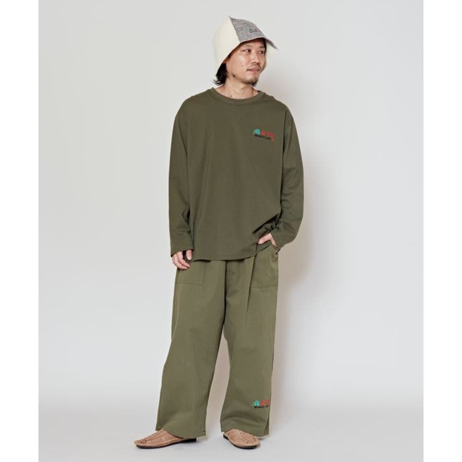 【Amina×森の中のすっかま】すっかまとは韓国流のサウナ。意味は森の中の炭釜。男女兼用の館内着を再現したリラックスウエア。やわらかい綿素材のロングTシャツは普段着やアウトドアにも活躍。刺しゅうがワンポイント。M/Lサイズ展開。