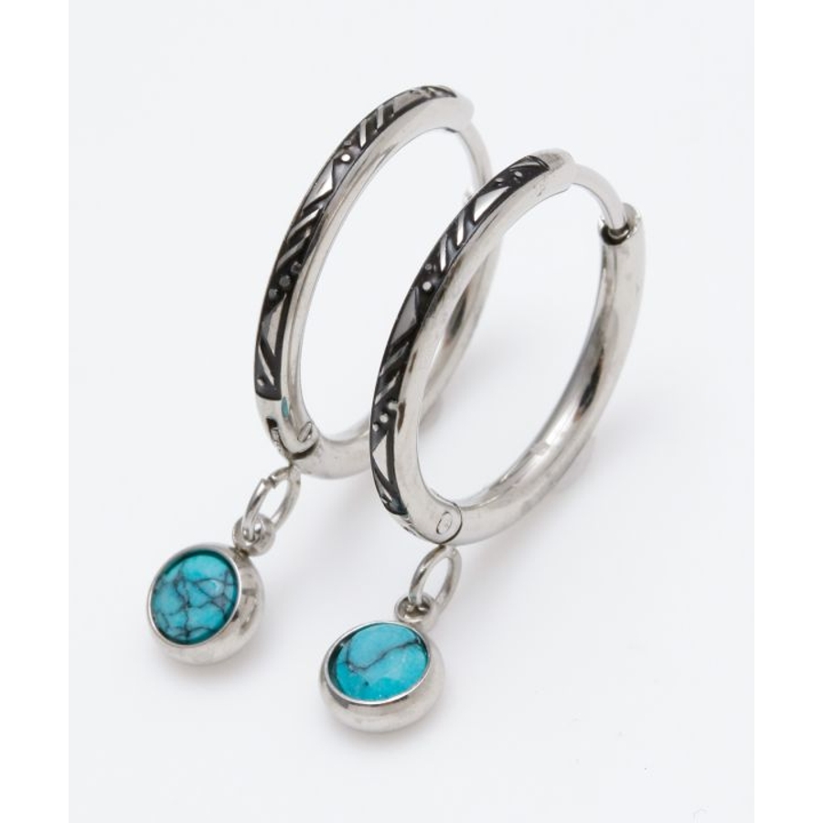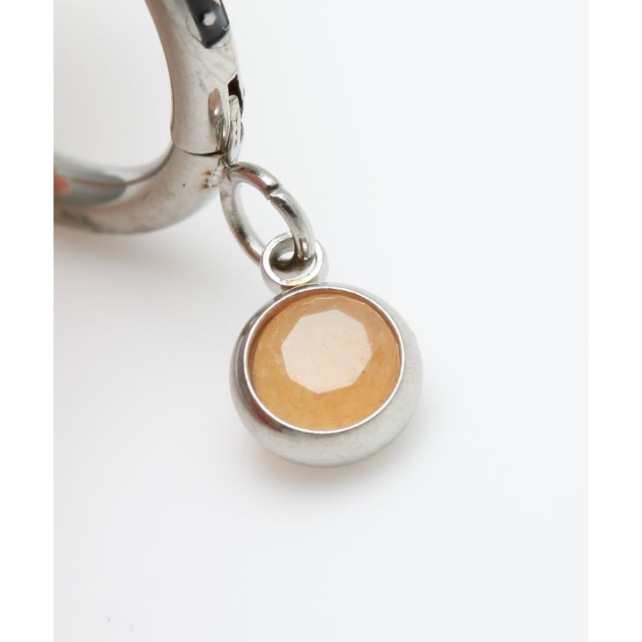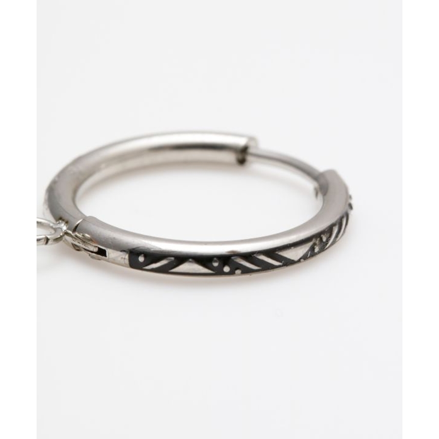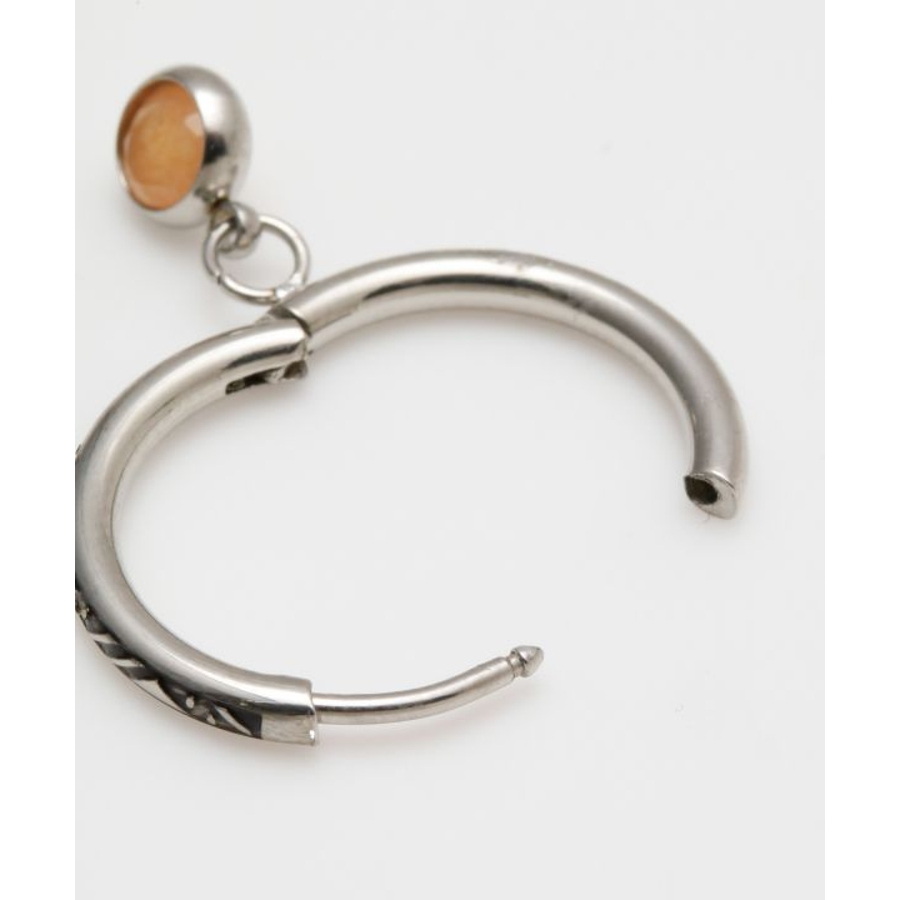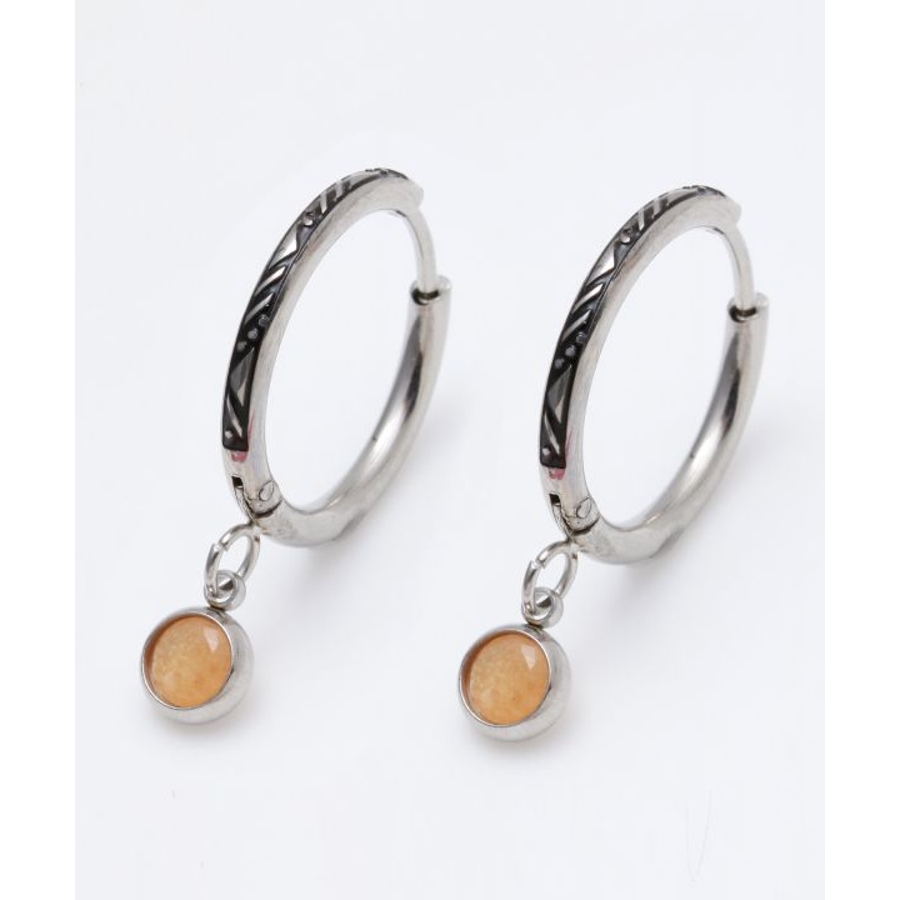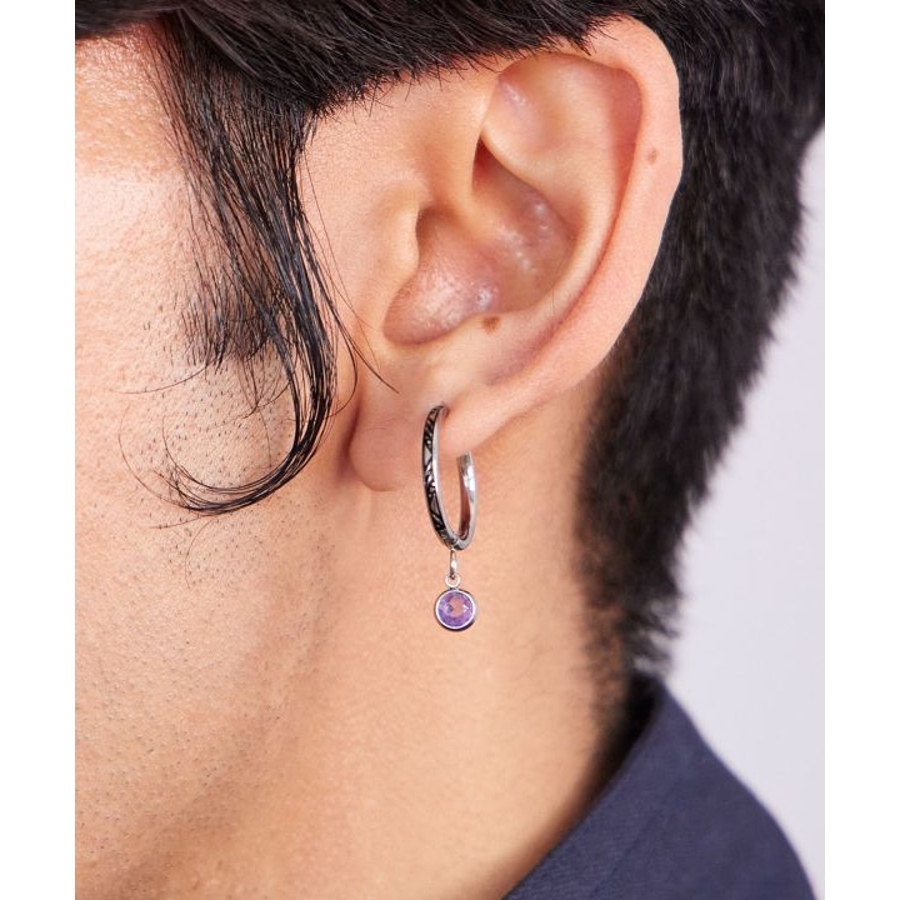 天然石を垂らしたメンズフープピアス。天然石がゆらゆらと動き耳元を煌びやかに演出してくれます。フープ部分にはジオメトリックな彫りが施され、細部までこだわりの詰まったアイテム。祈りを込めてお守りとして身に付けるのもオススメ。
