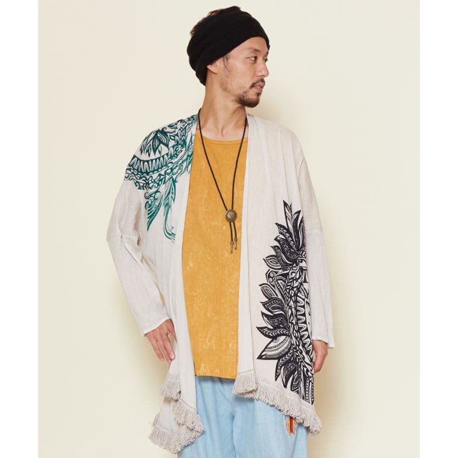 【チャイハネ】yul トライバルフラワーMEN'Sフリンジカーディガン