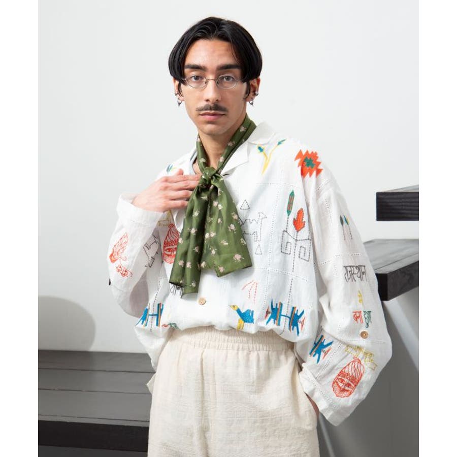 【チャイハネ】ラジャラン刺繍メンズシャツ