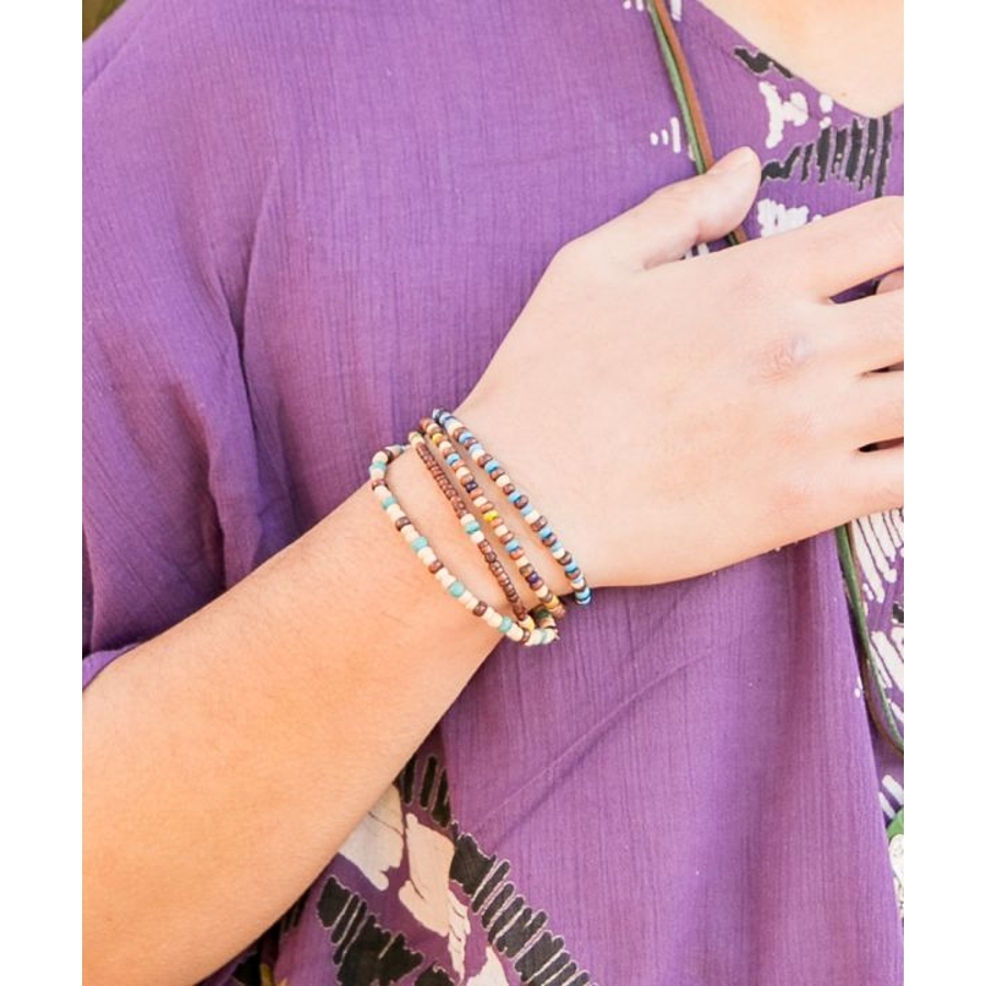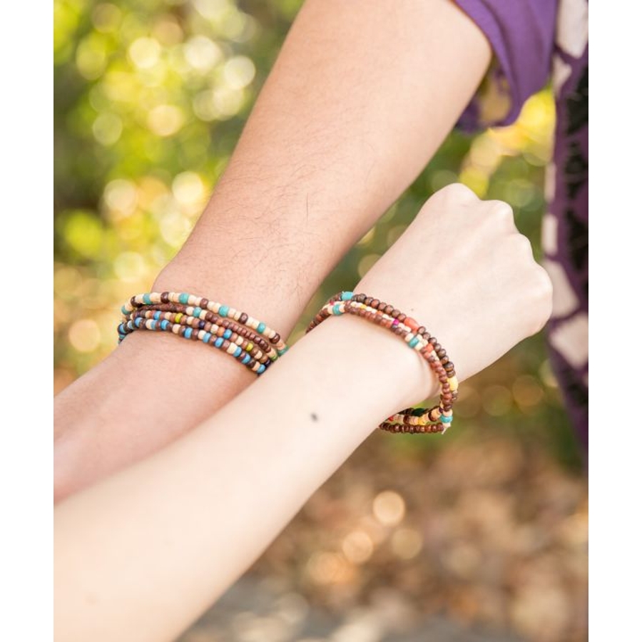 自然を感じて心を解放する。木の染まり具合や木目などで変わる風合い。樹木が生み出すパワーを感じるウッドビーズのブレスレット。たくさんの種類の中から好きなデザインを自由に重ねて個性を楽しもう。