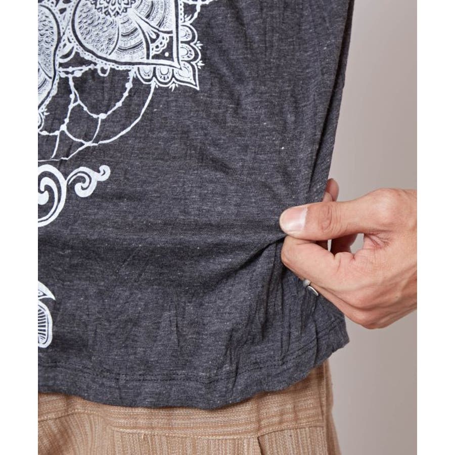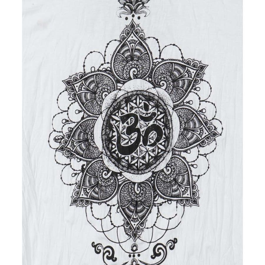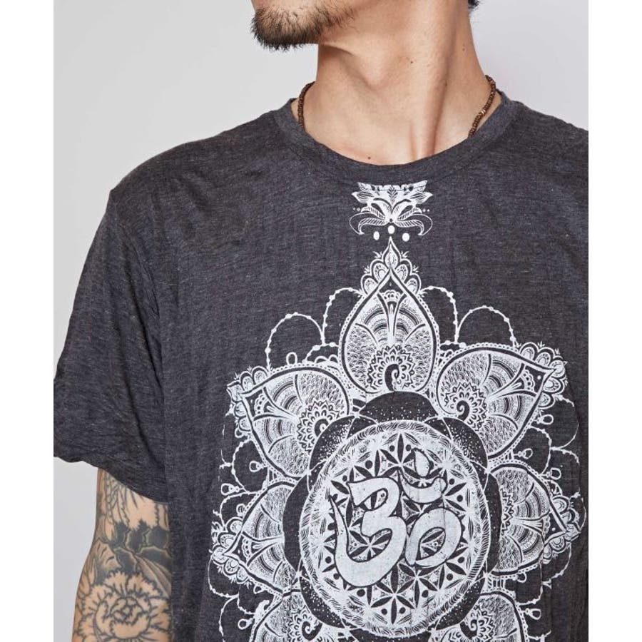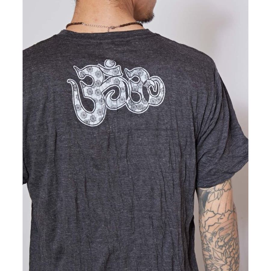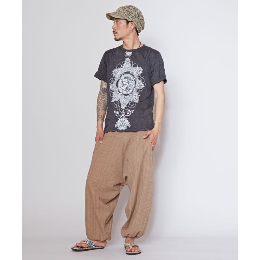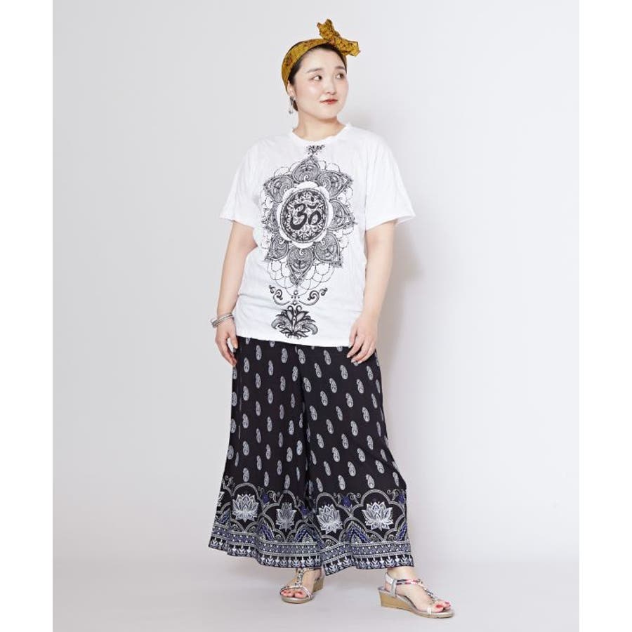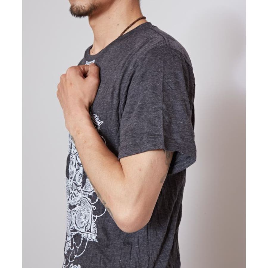 【タイ直輸入】シワ加工がラフさを演出してくれるコットンTシャツ。大胆なオーム柄とマンダラ柄があしらわれたデザインが印象的。程よい丈感とさらっとした肌触りで、大活躍すること間違いなしです。