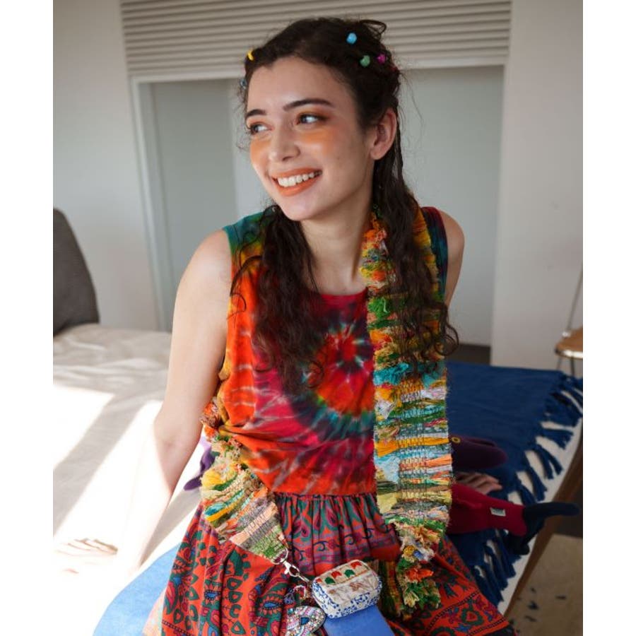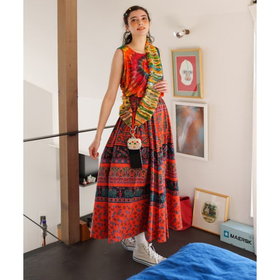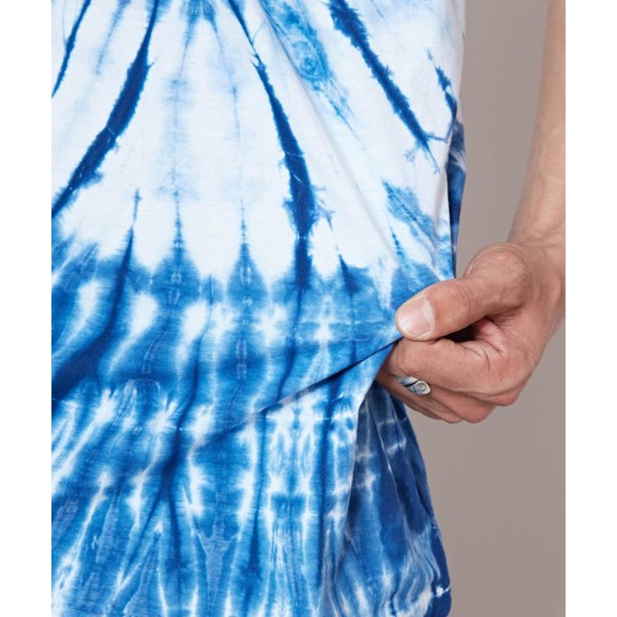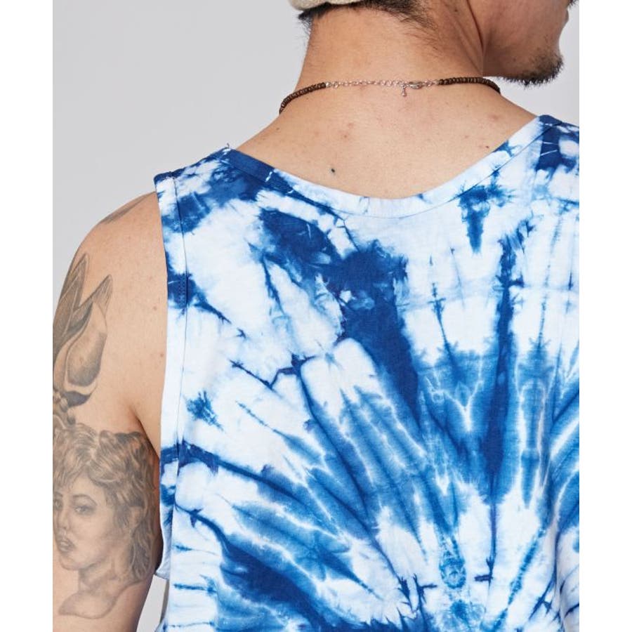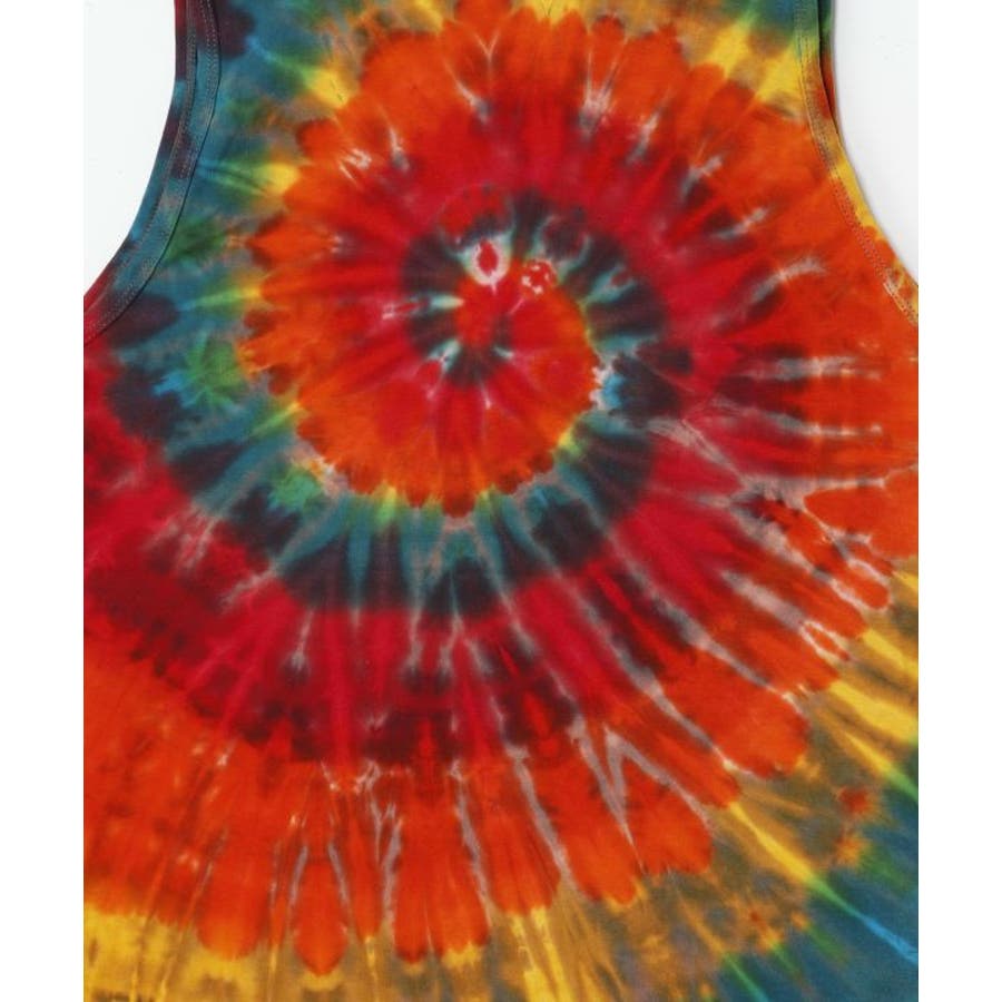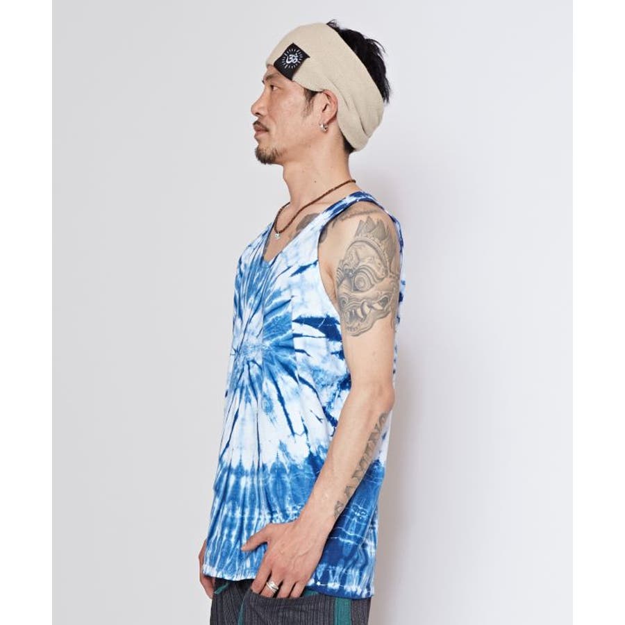 【タイ直輸入】大胆なタイダイ柄が目を惹くコットンタンクトップ。広めの首元としっかりとした綿素材で着心地も抜群。ラフなスタイルにプラスしたい遊び心満点の一枚です。