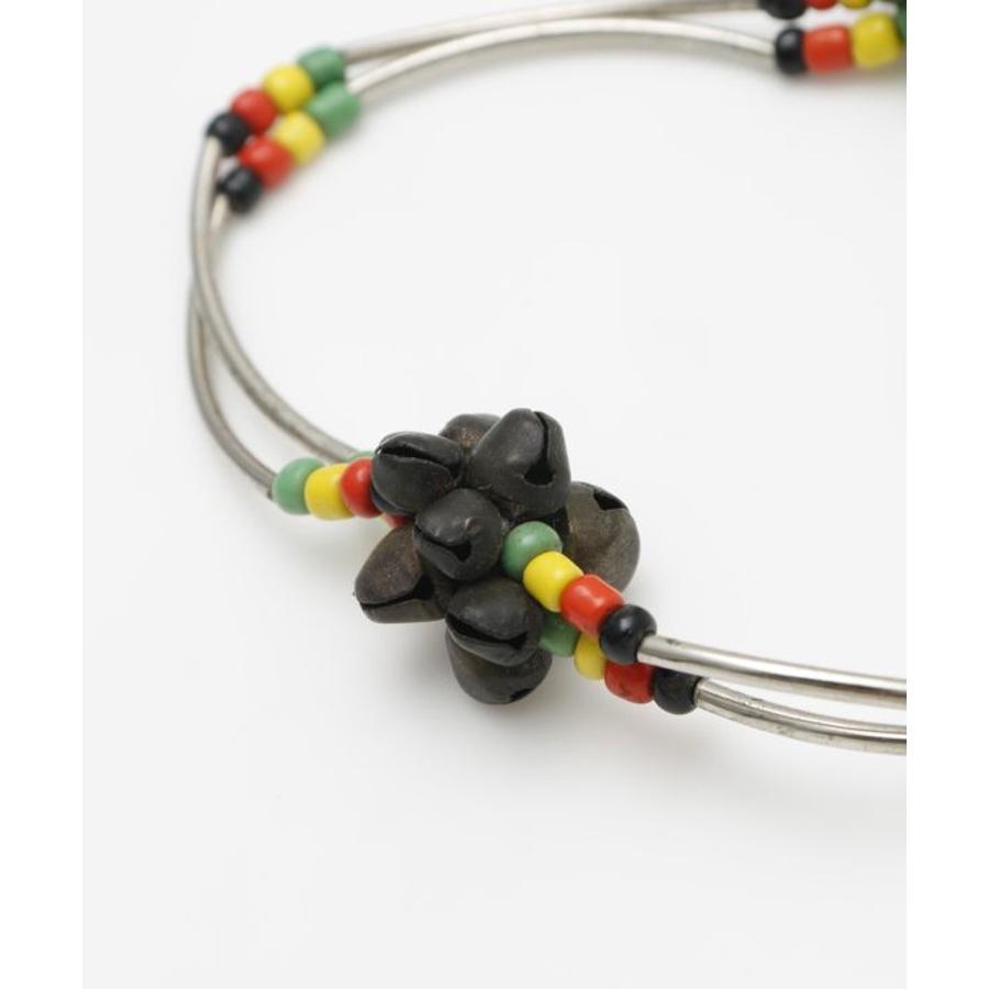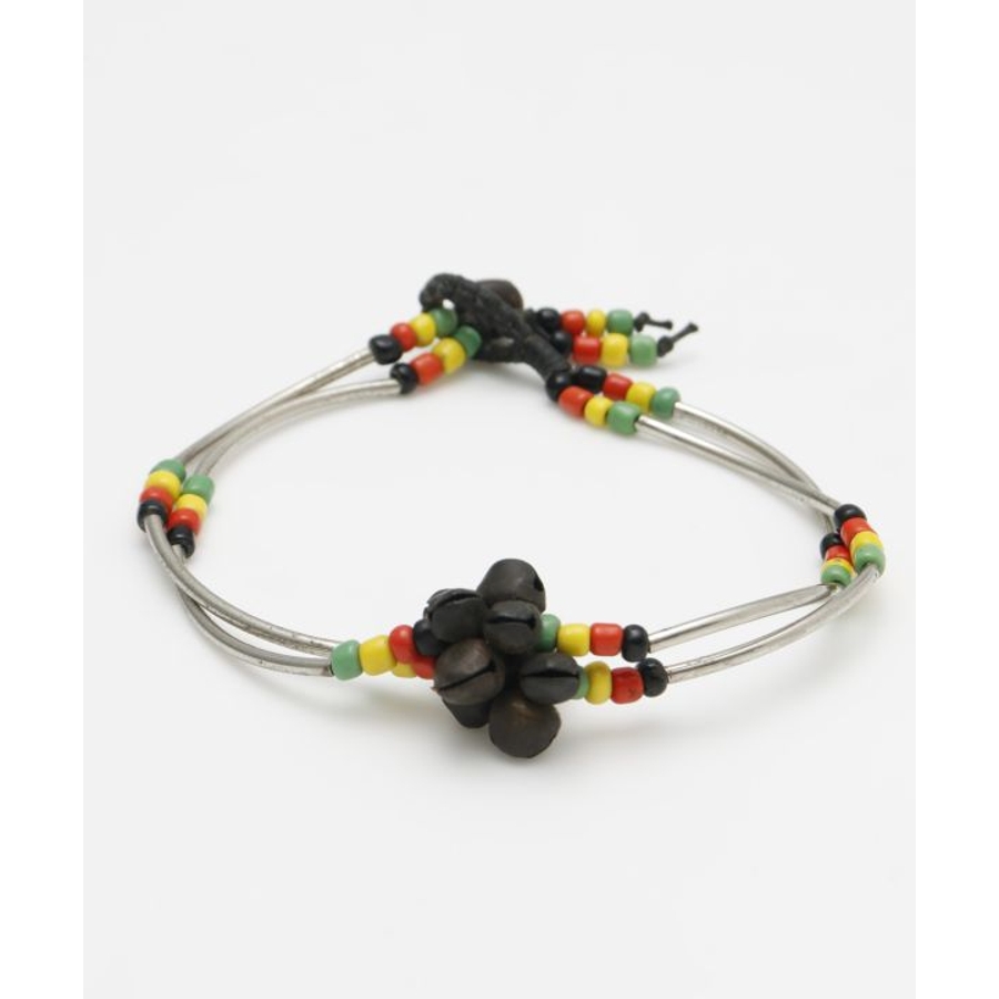 ラスタカラーのビーズが目を惹くアンクレット。前面と留め具部分に鈴が付いており歩くたびに音色が響く気分も上がるアイテム。