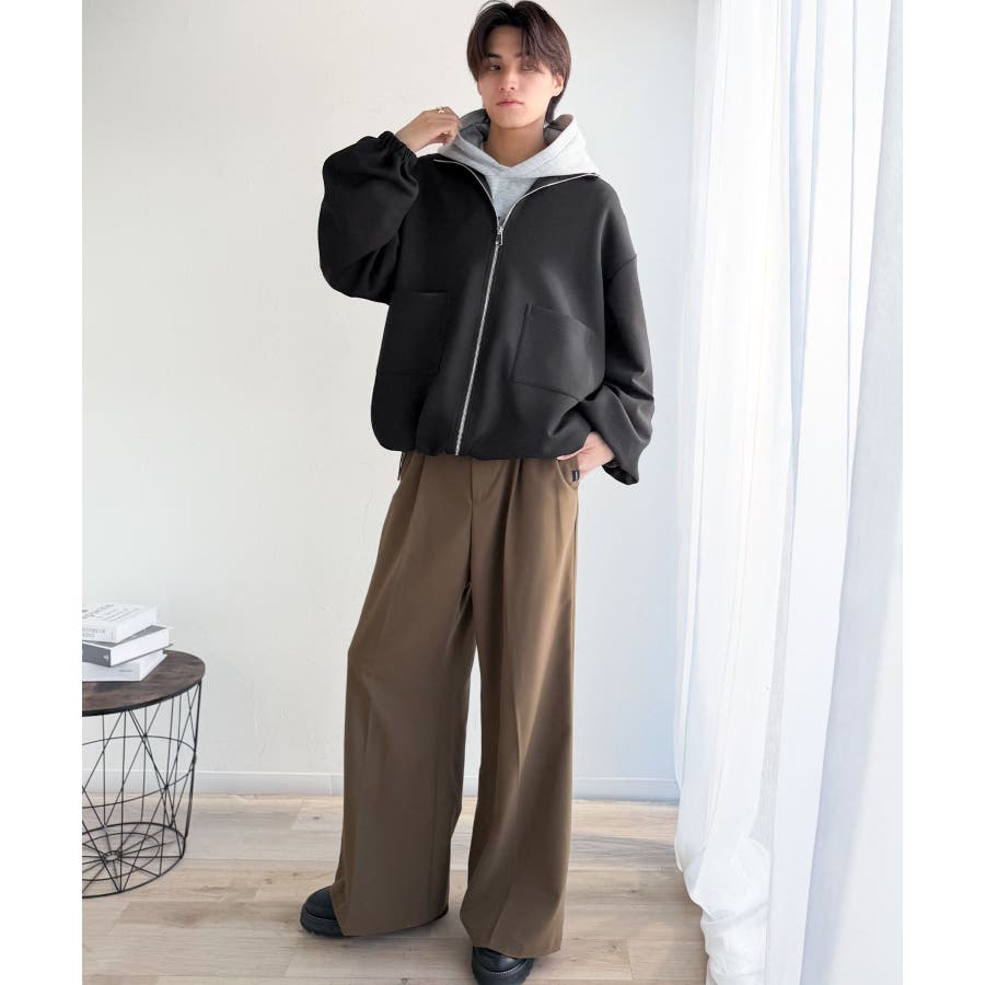 ポケットデザインWジップダンボールジャケット」やわらかく軽い着心地で、デイリーにさっと羽織りやすい一枚。