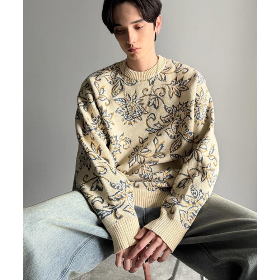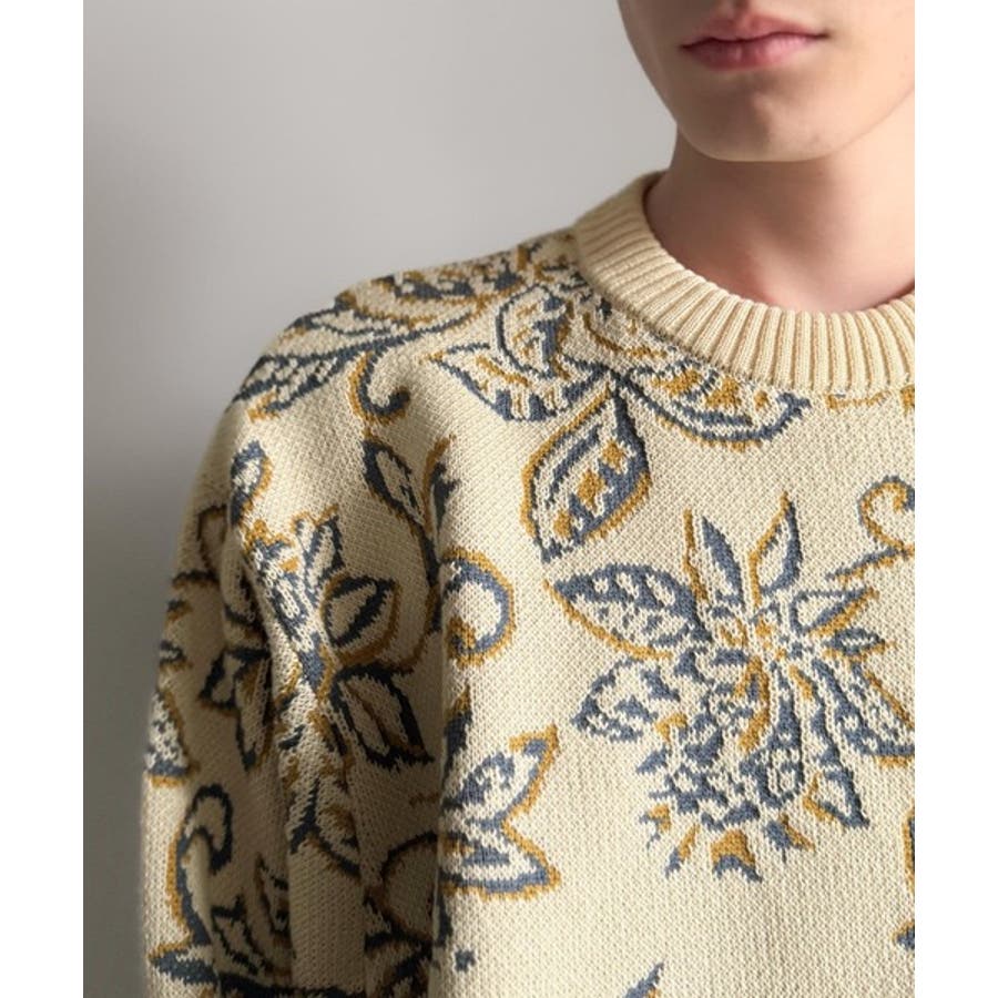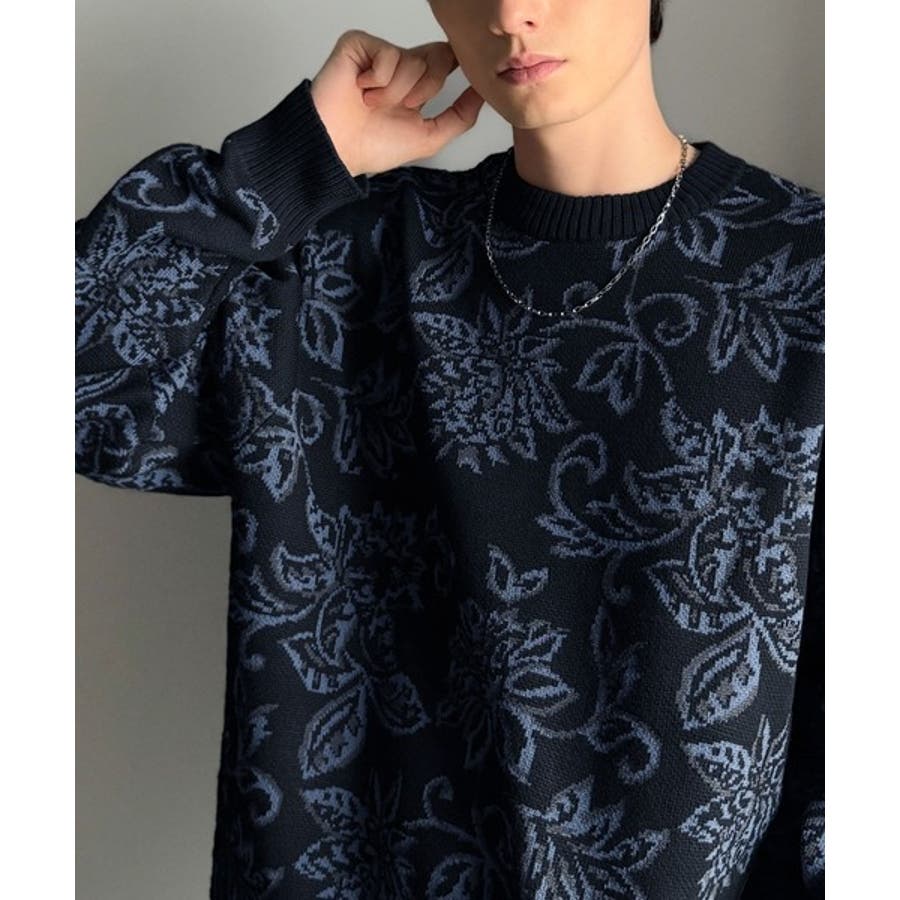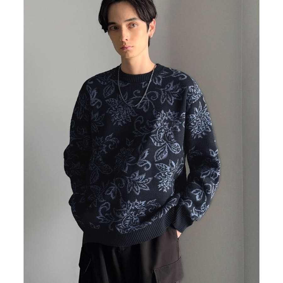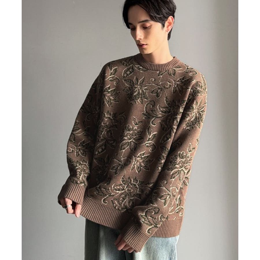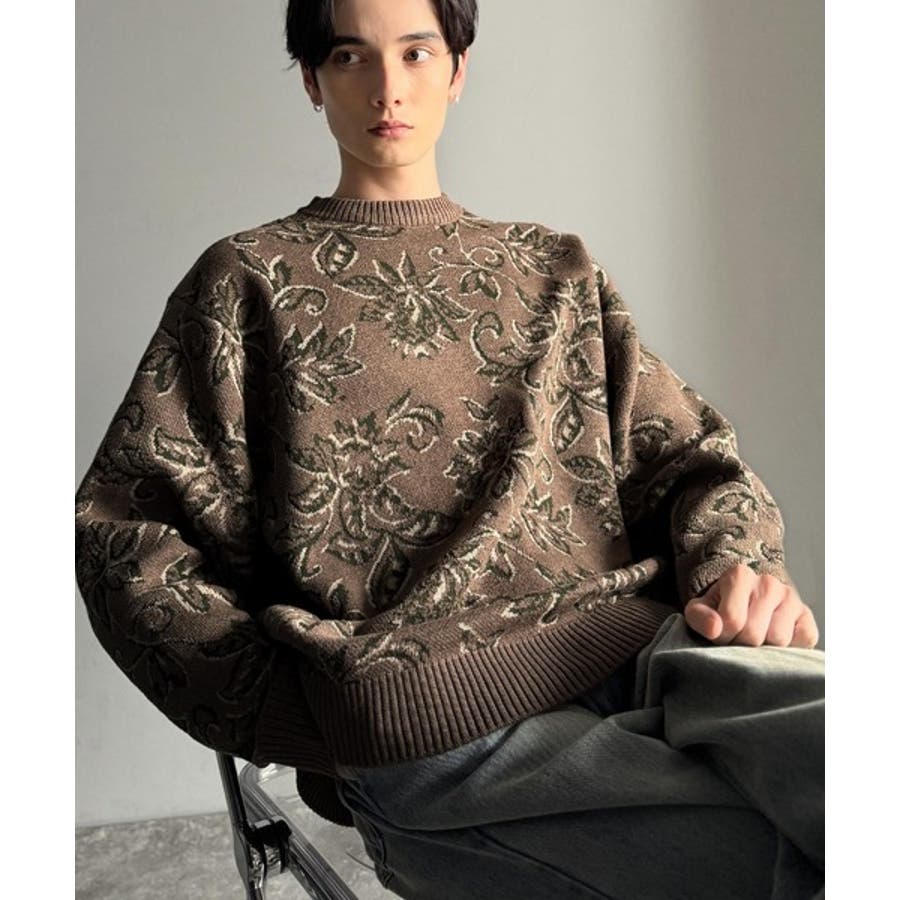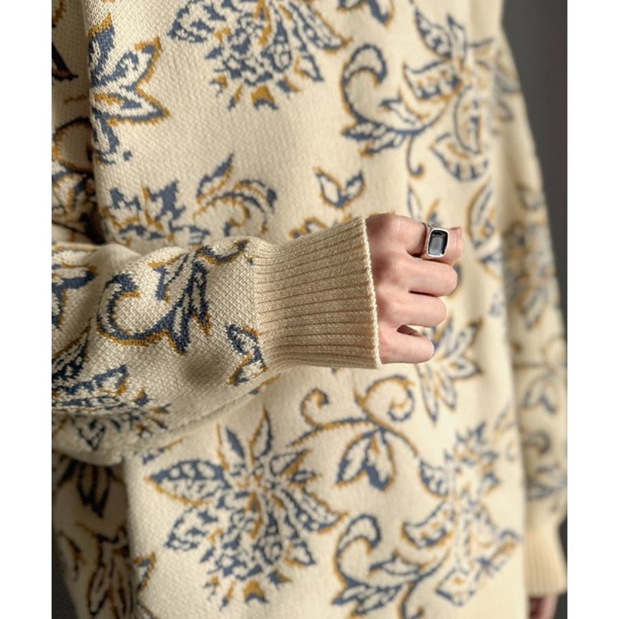 【classical origin】視線を奪う、ジャガード花柄ニット Jacqu…