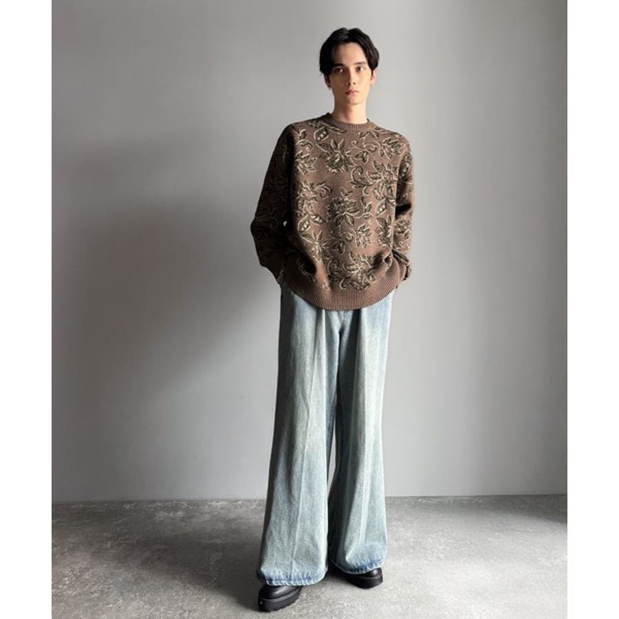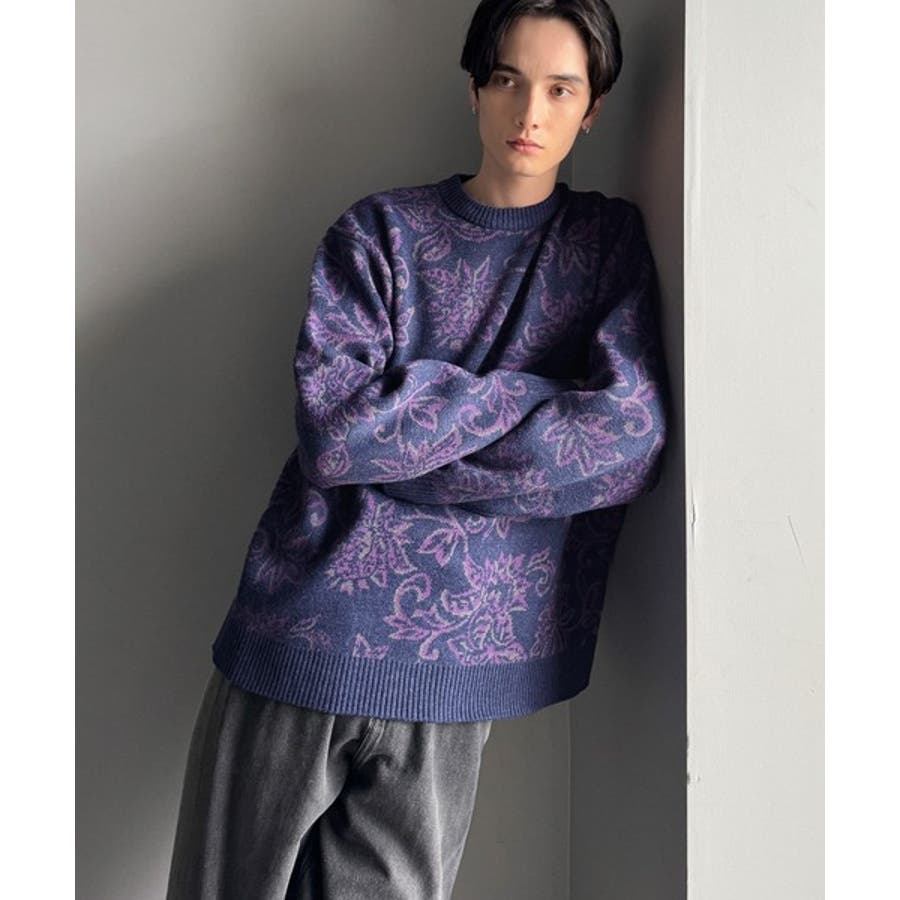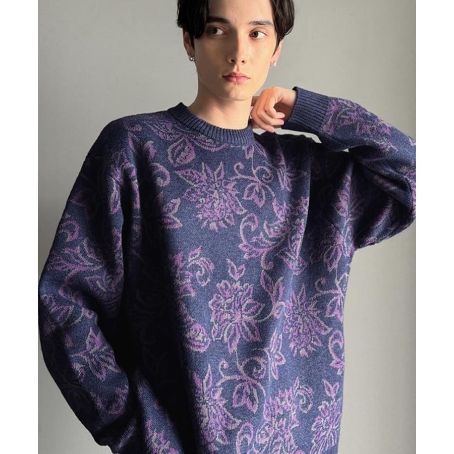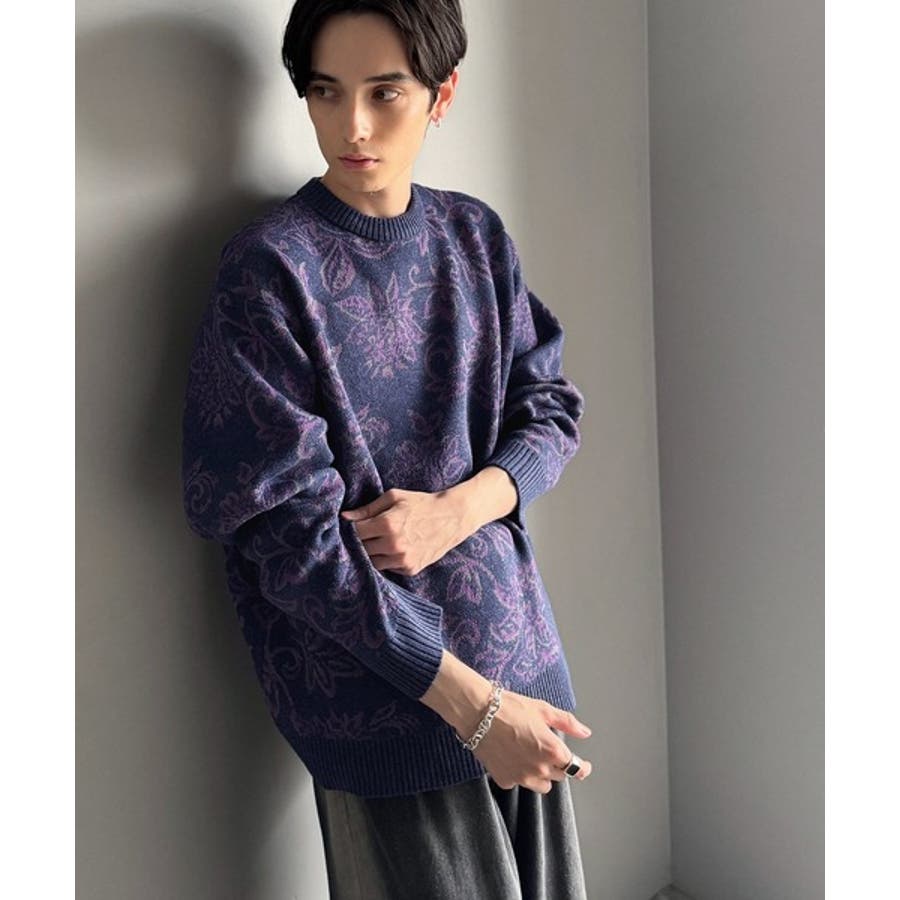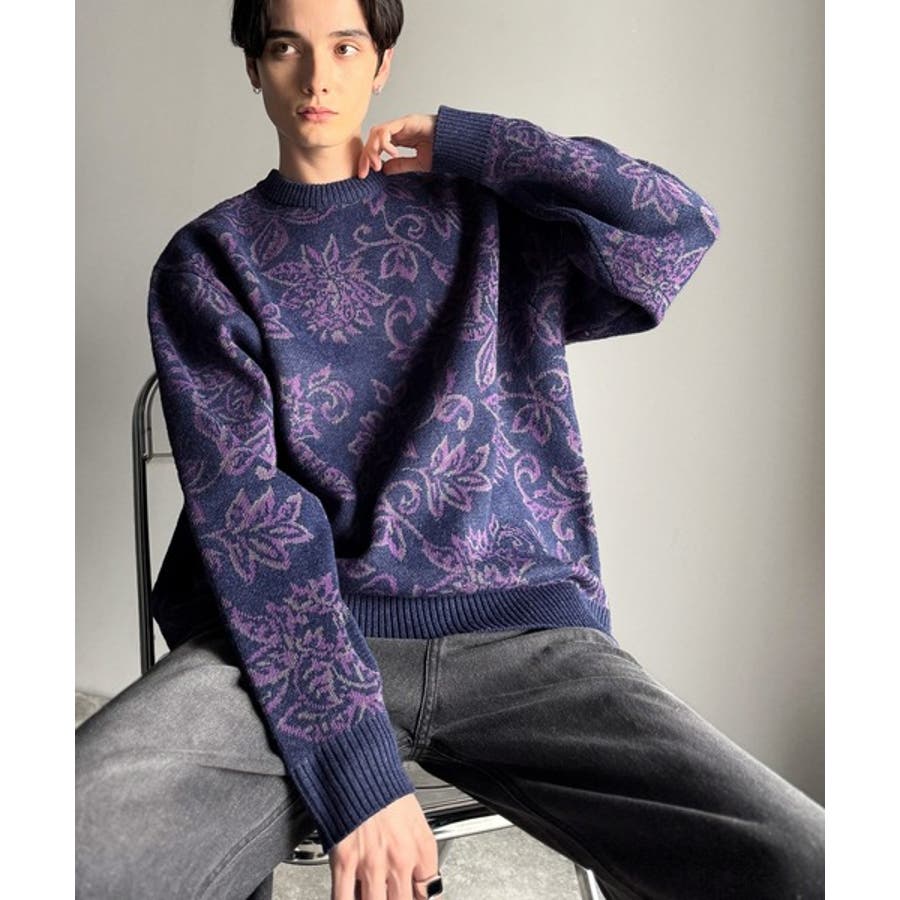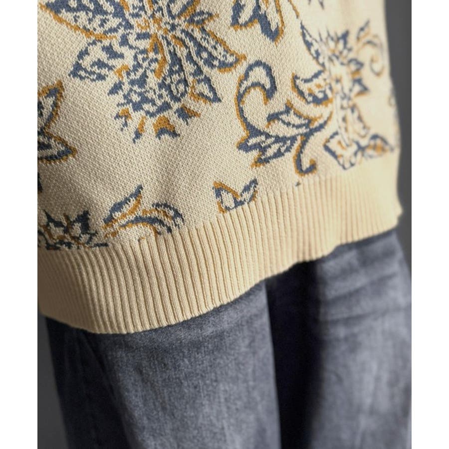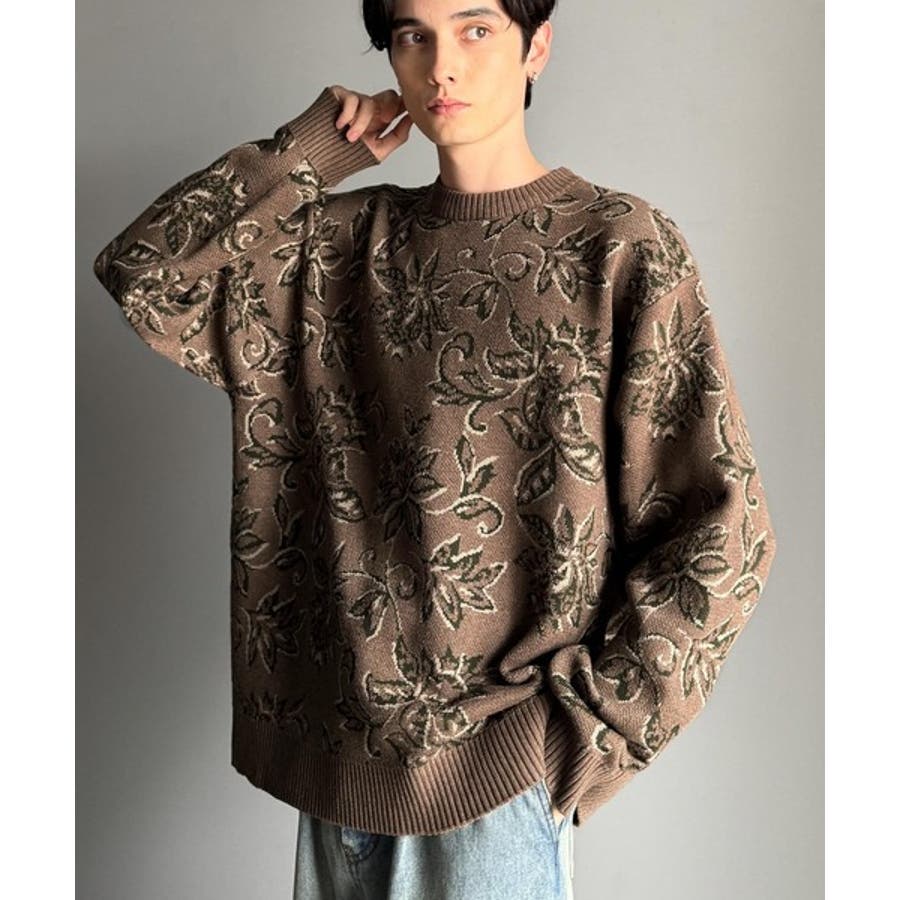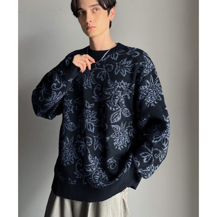 【classical origin】視線を奪う、ジャガード花柄ニット Jacqu…
