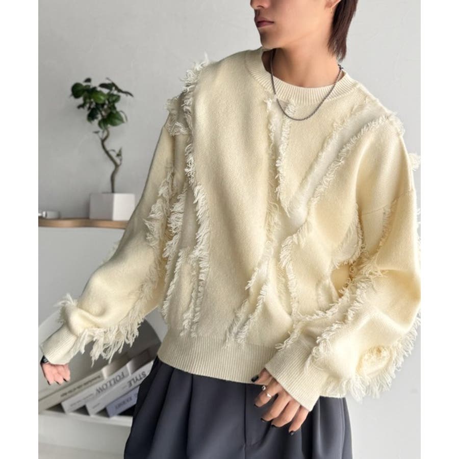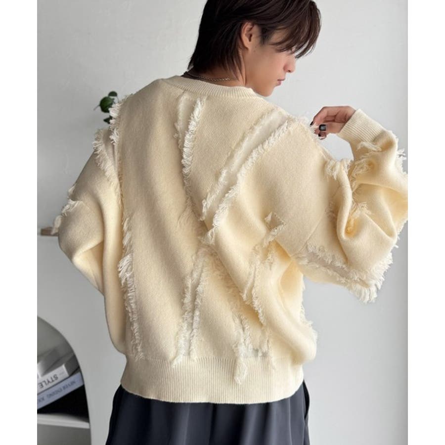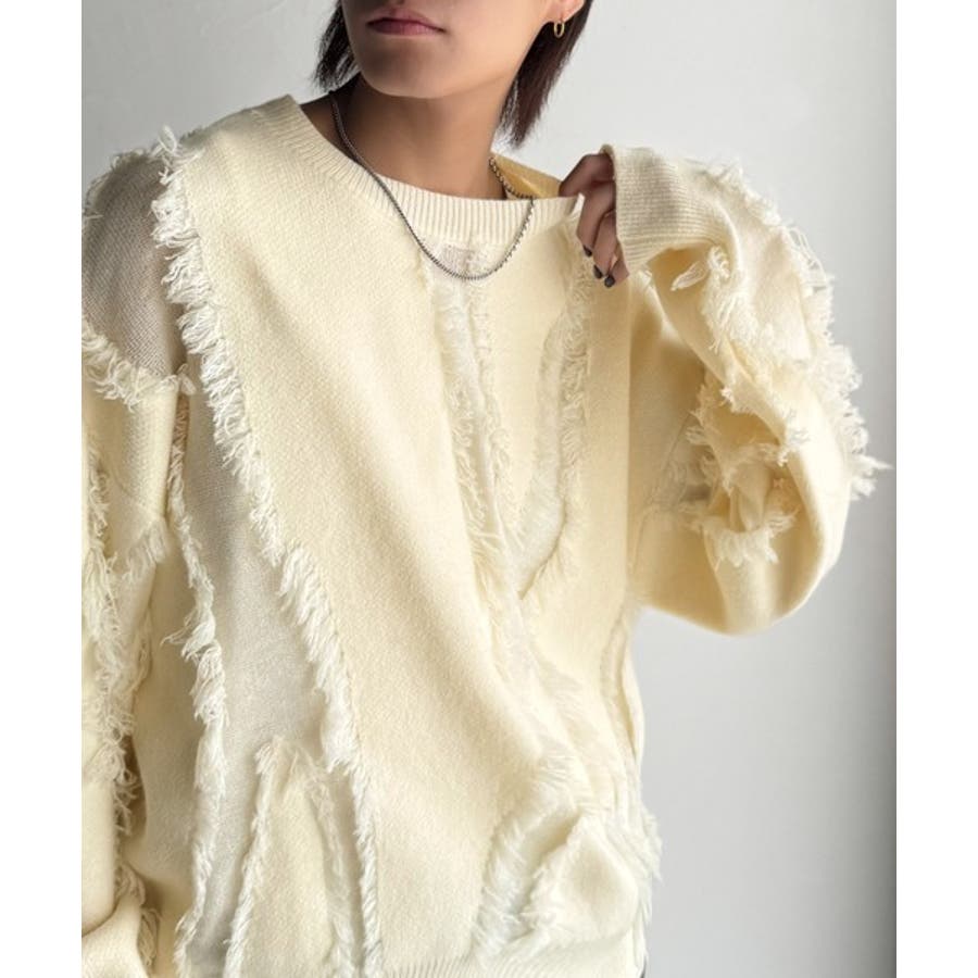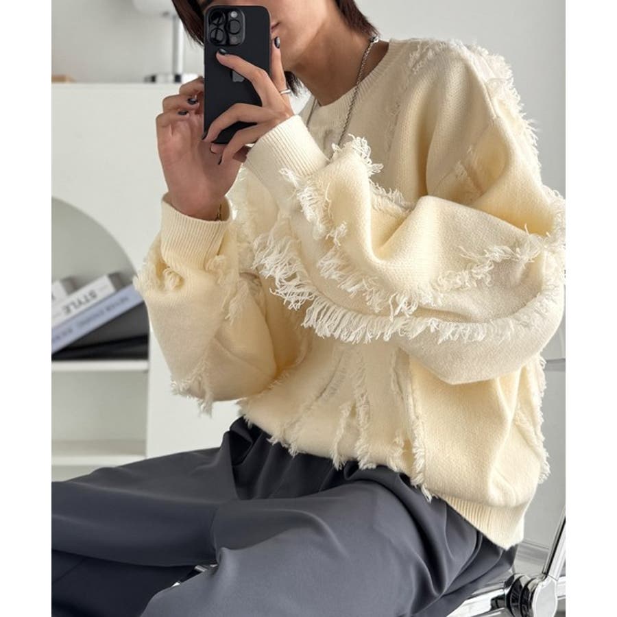 全体に施されたフリンジで、定番のニットが動きのある1枚に。