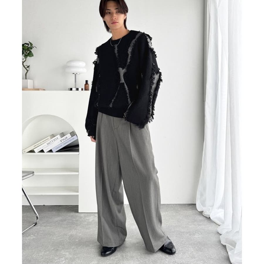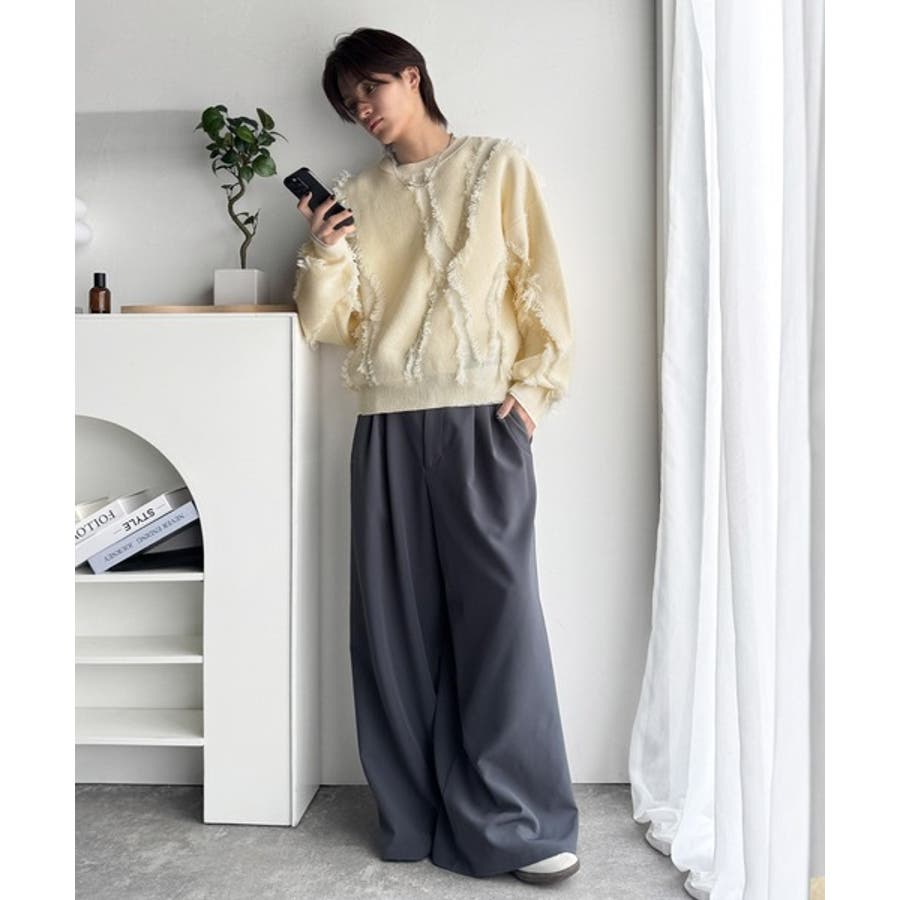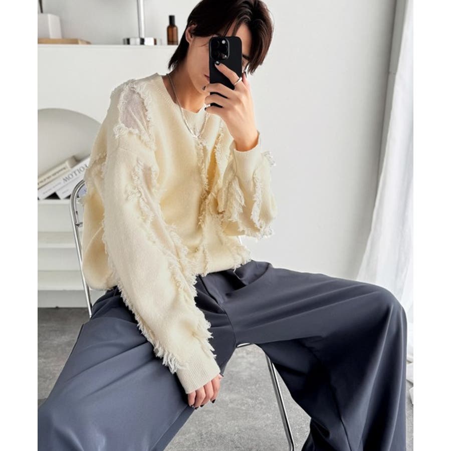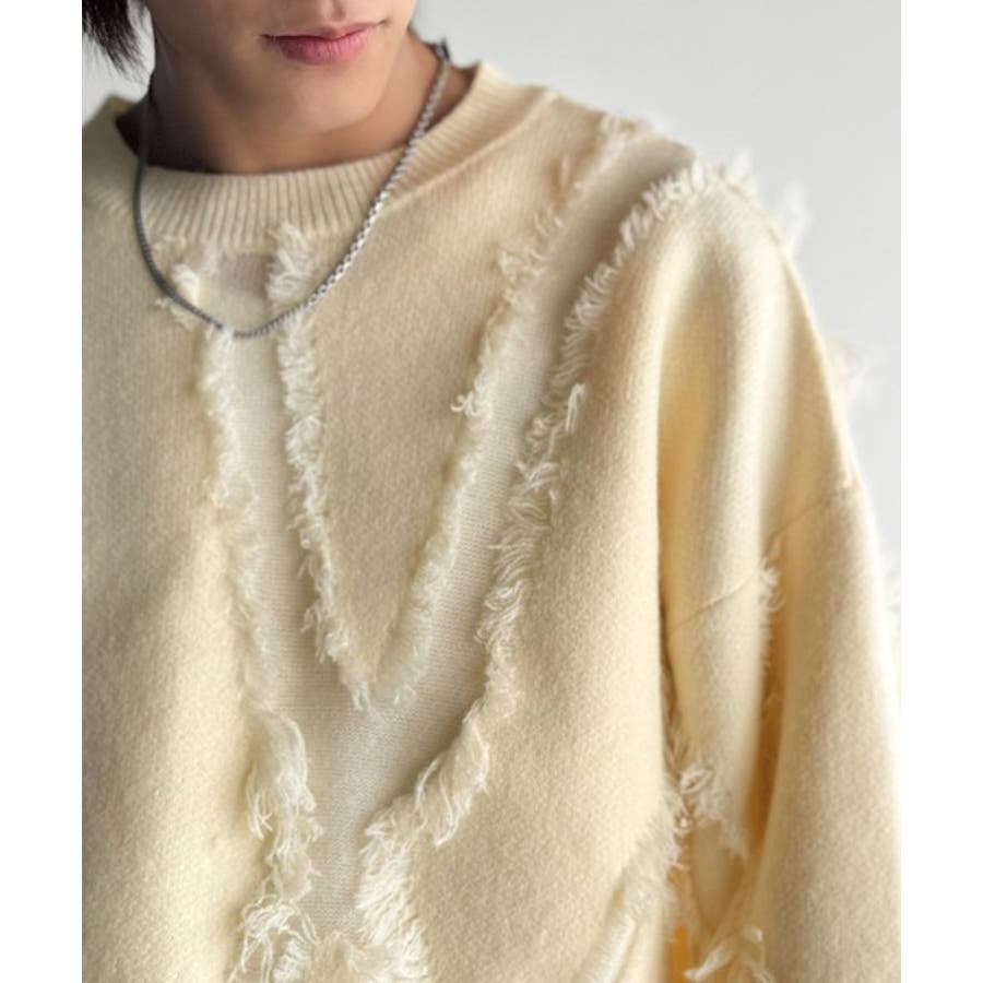 全体に施されたフリンジで、定番のニットが動きのある1枚に。