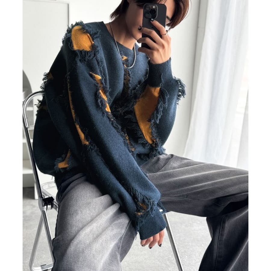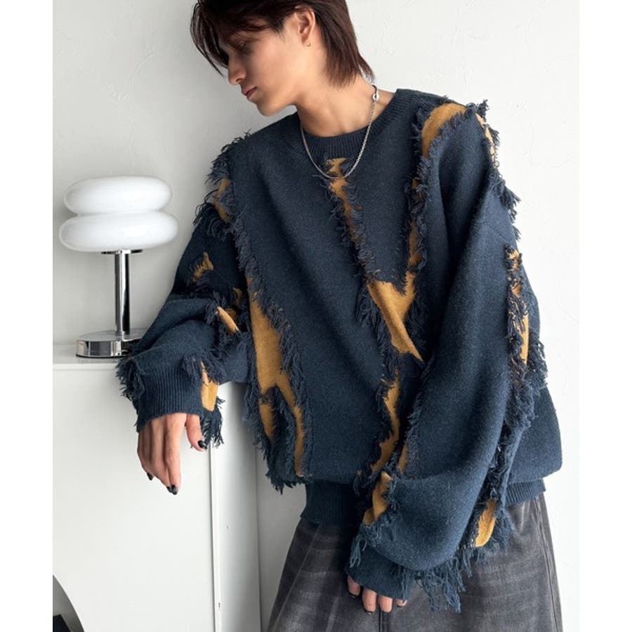 「着るだけで、印象派」。フリンジデザイン配色オーバーサイズニット Fringe