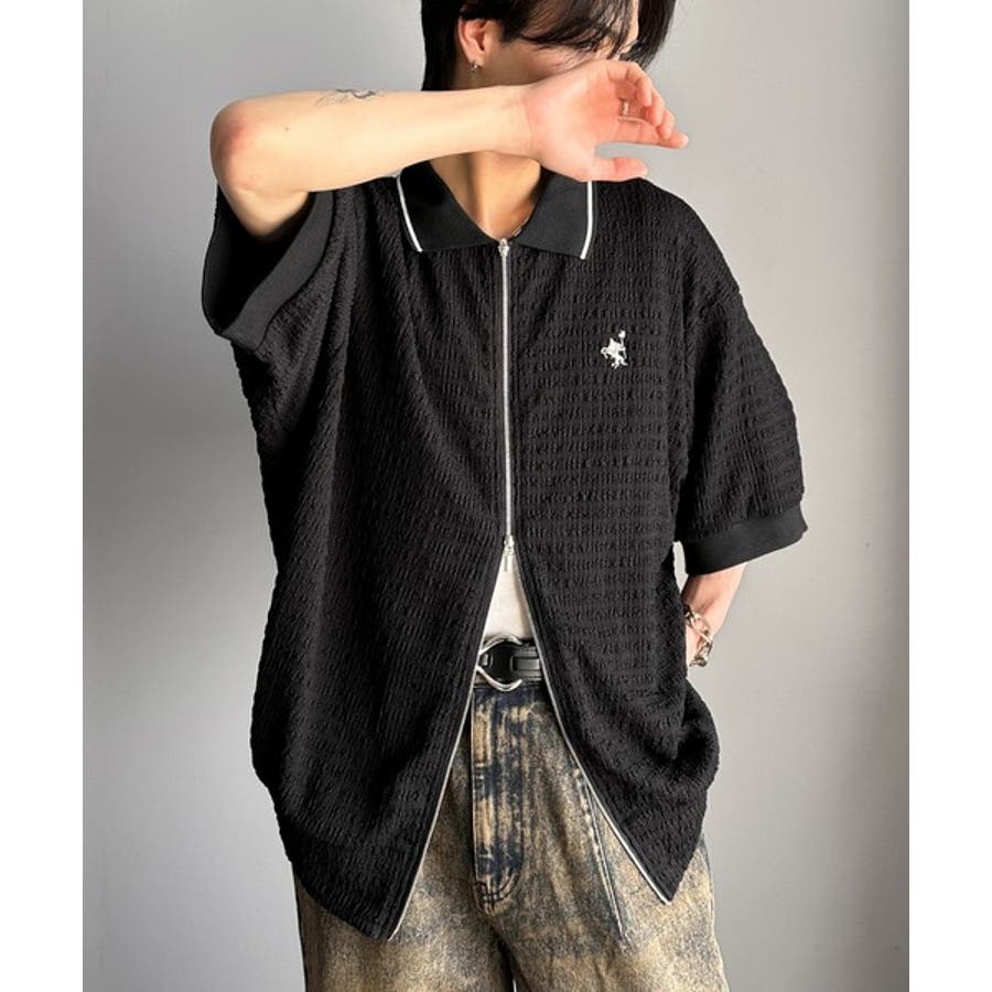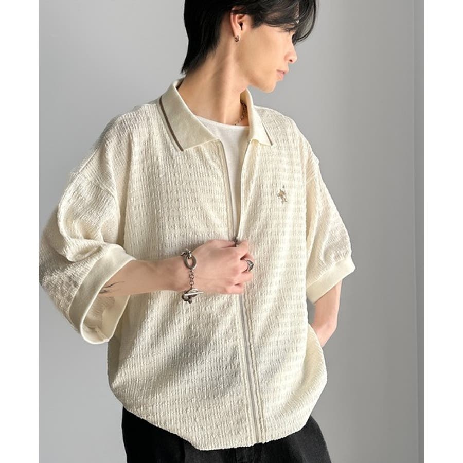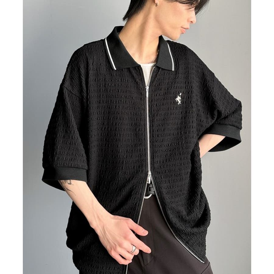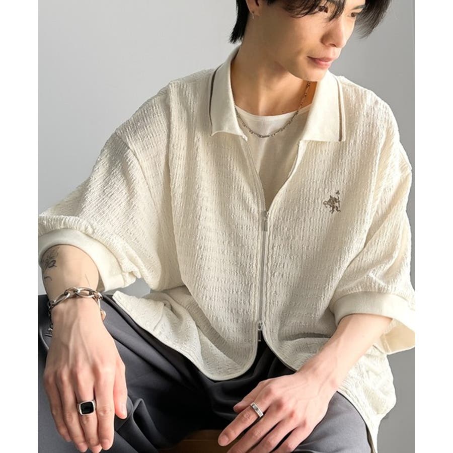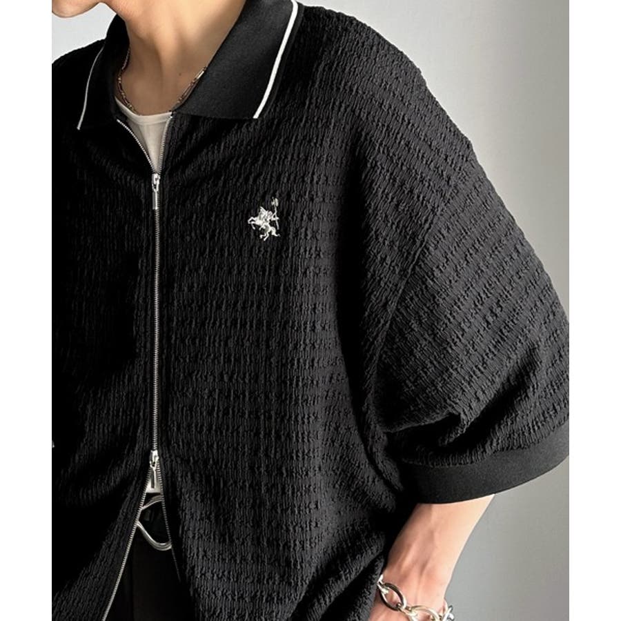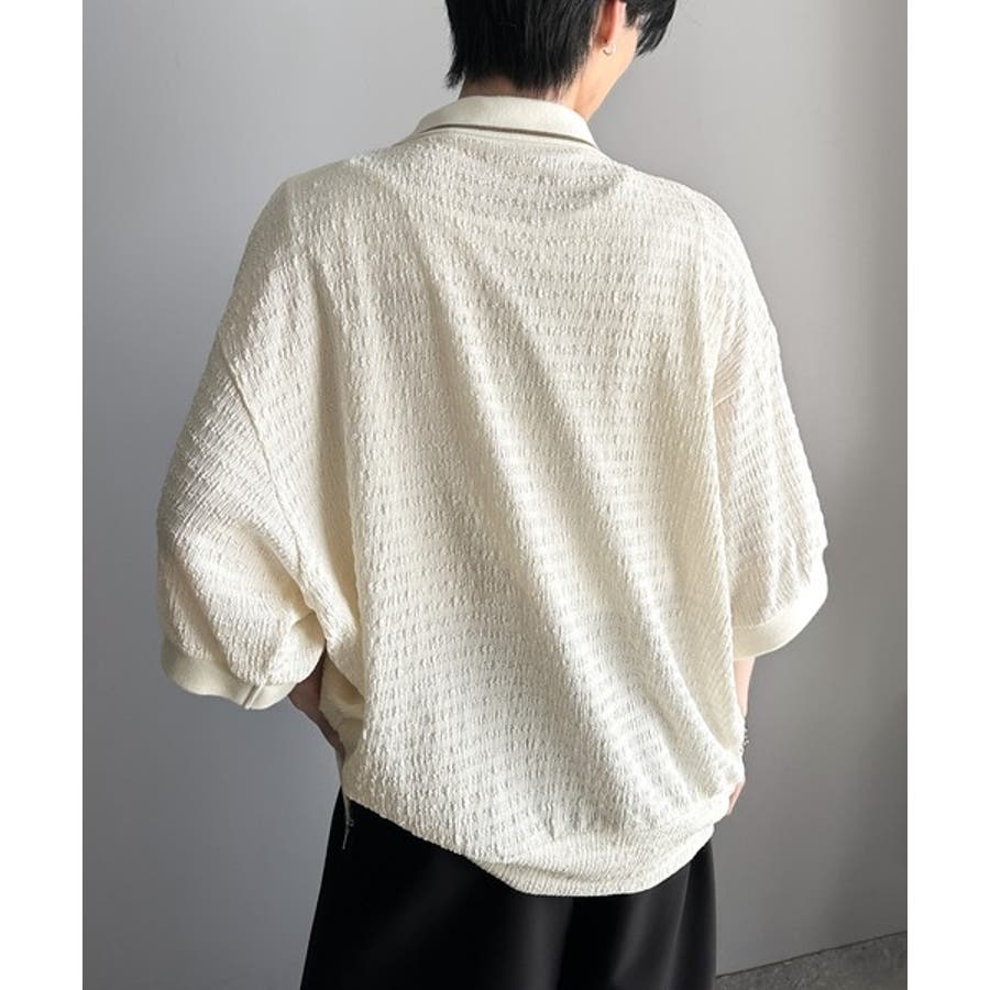 抜け感叶える大人の上品スポーティ。ポロ襟ダブルファスナージャガードトップス(半袖…