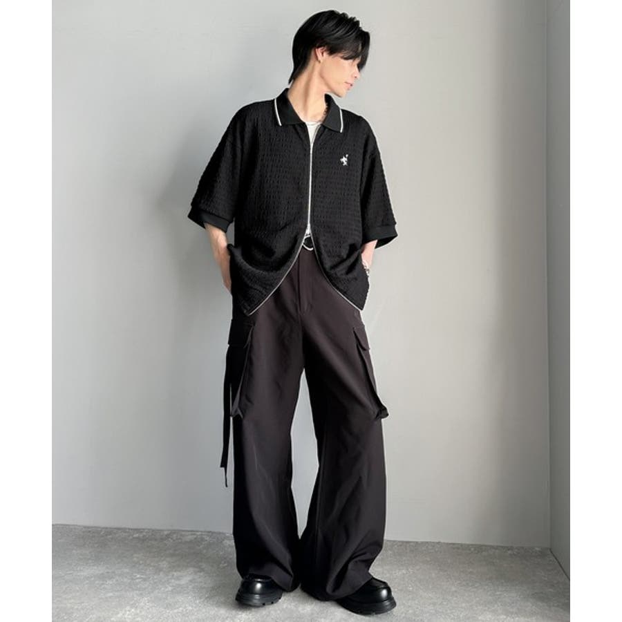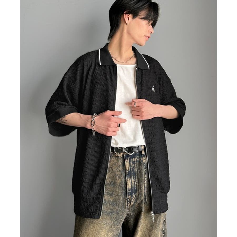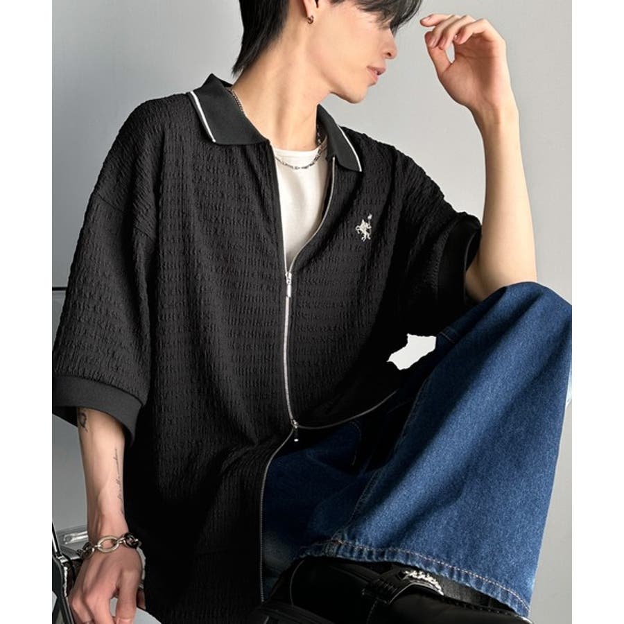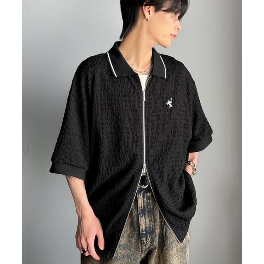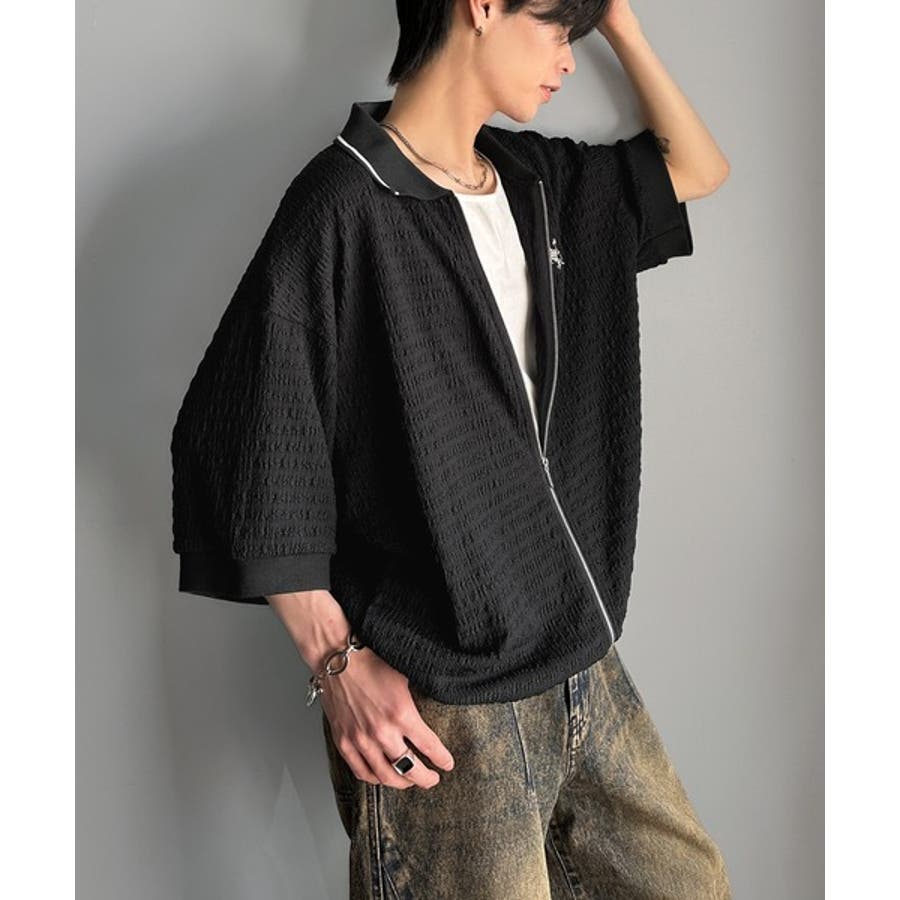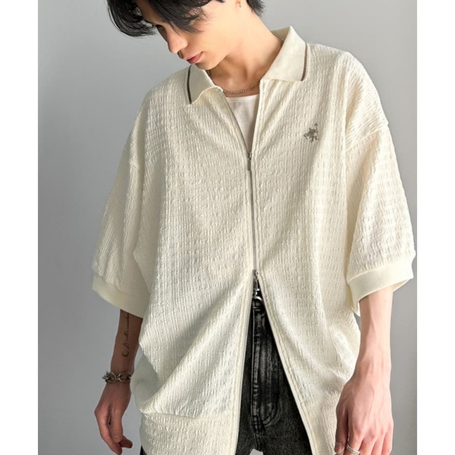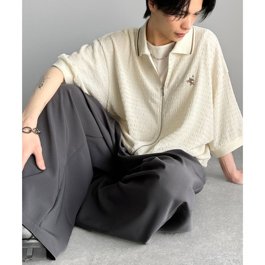 抜け感叶える大人の上品スポーティ。ポロ襟ダブルファスナージャガードトップス(半袖…