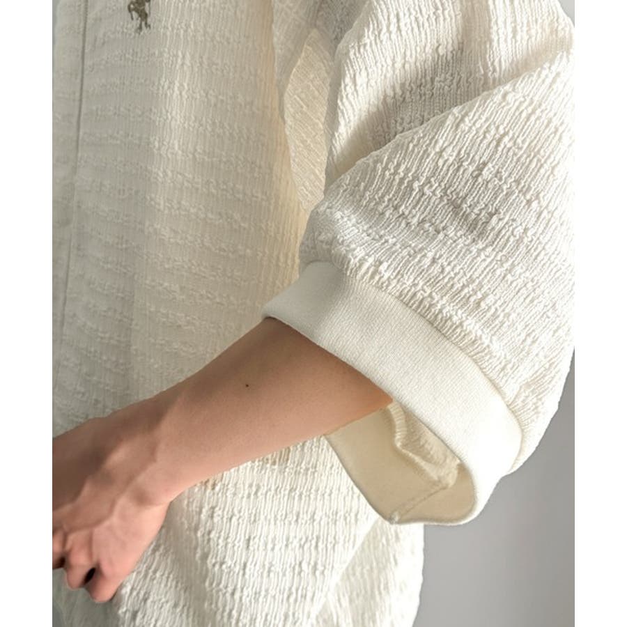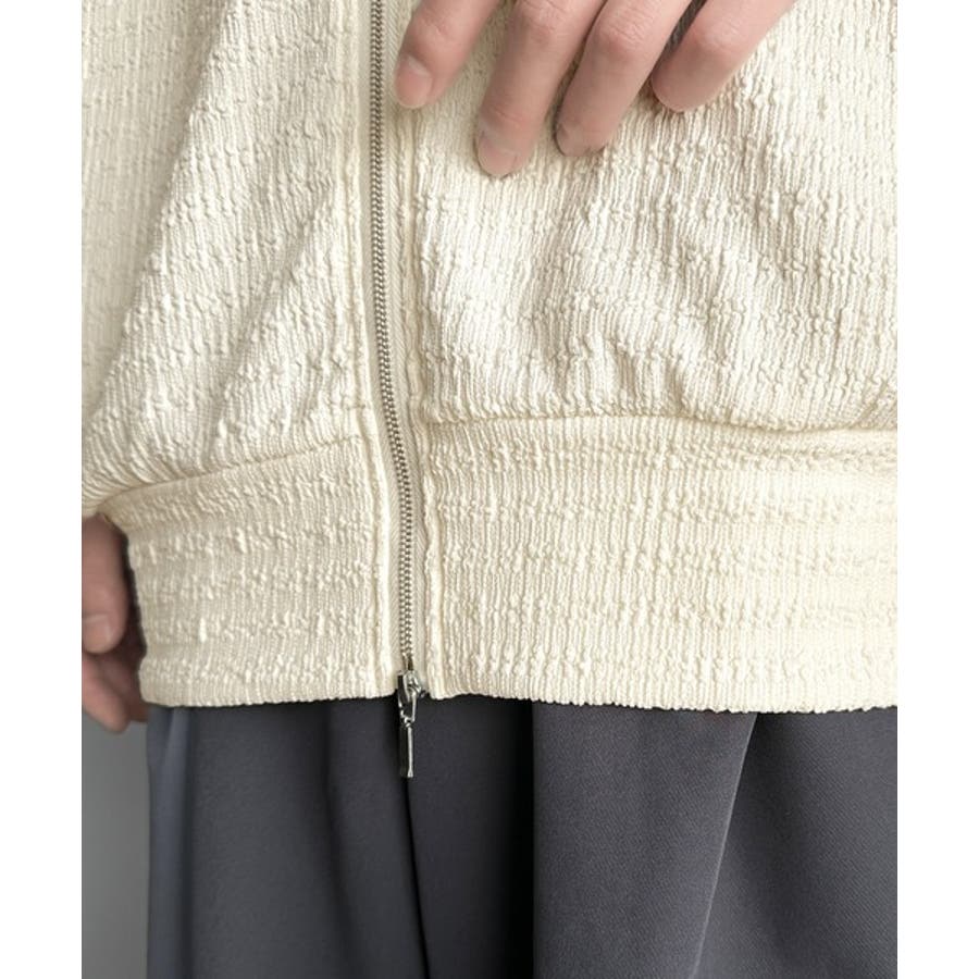 シンプルながら表面感のあるジャガード素材。適度な厚みでさらっと羽織れるくらい重すぎない生地がポイント。