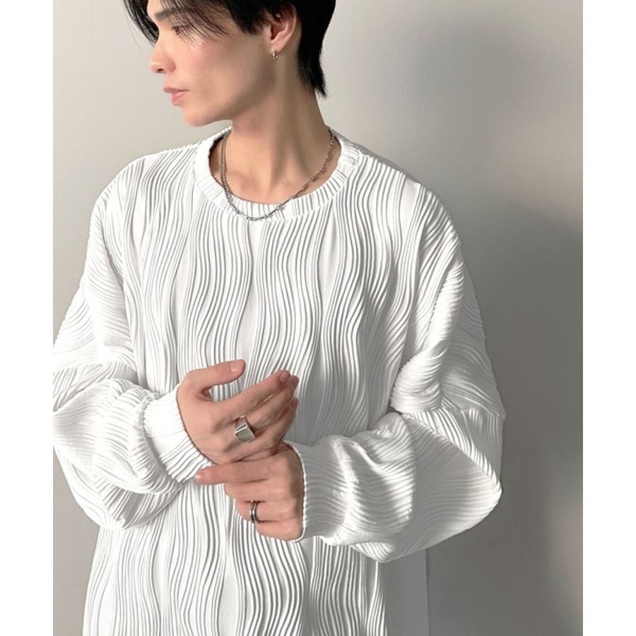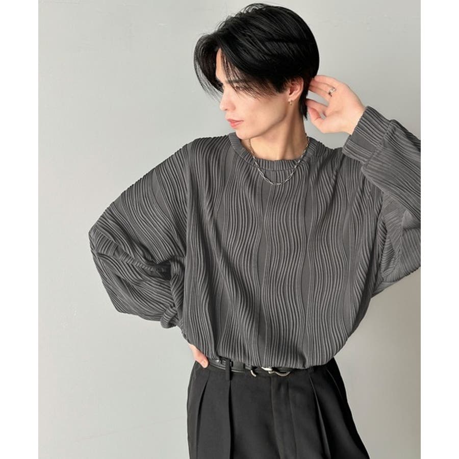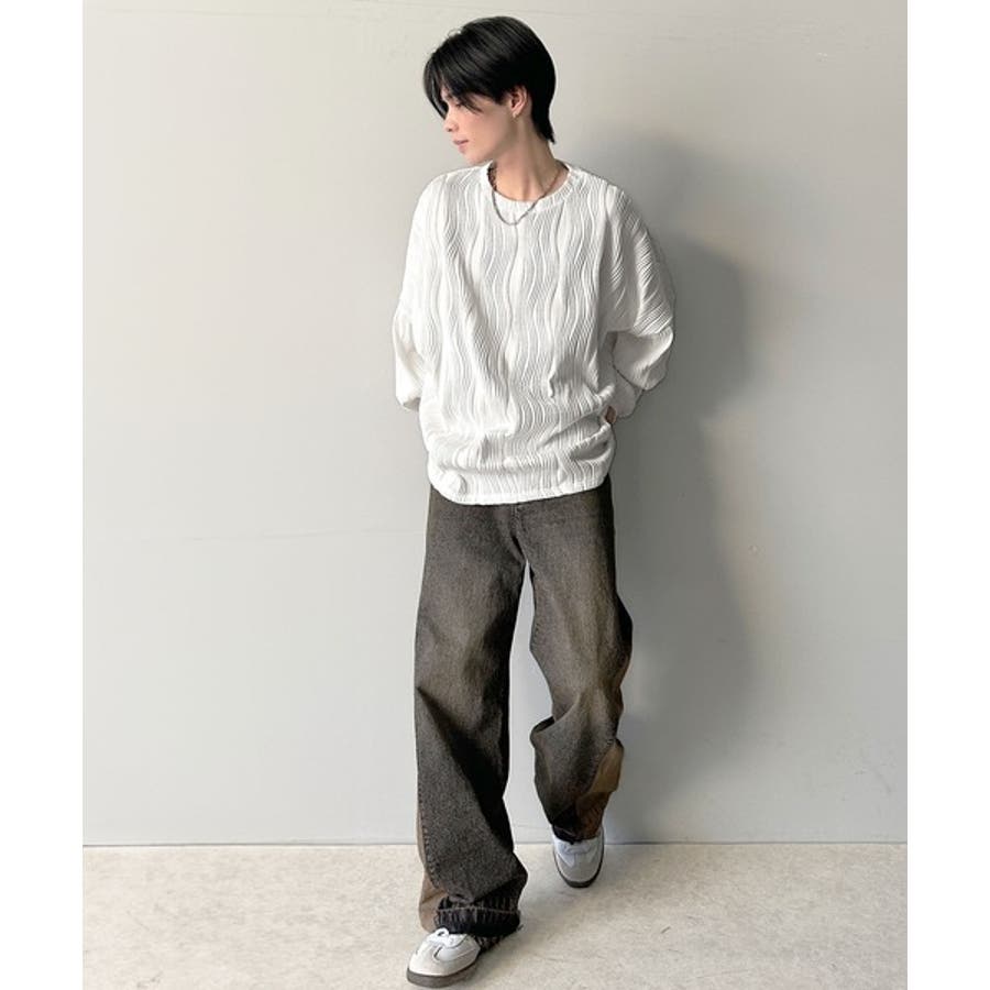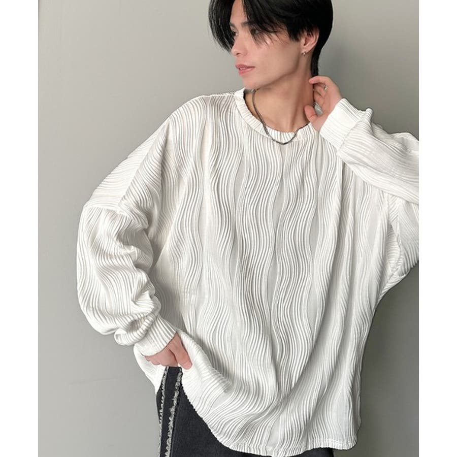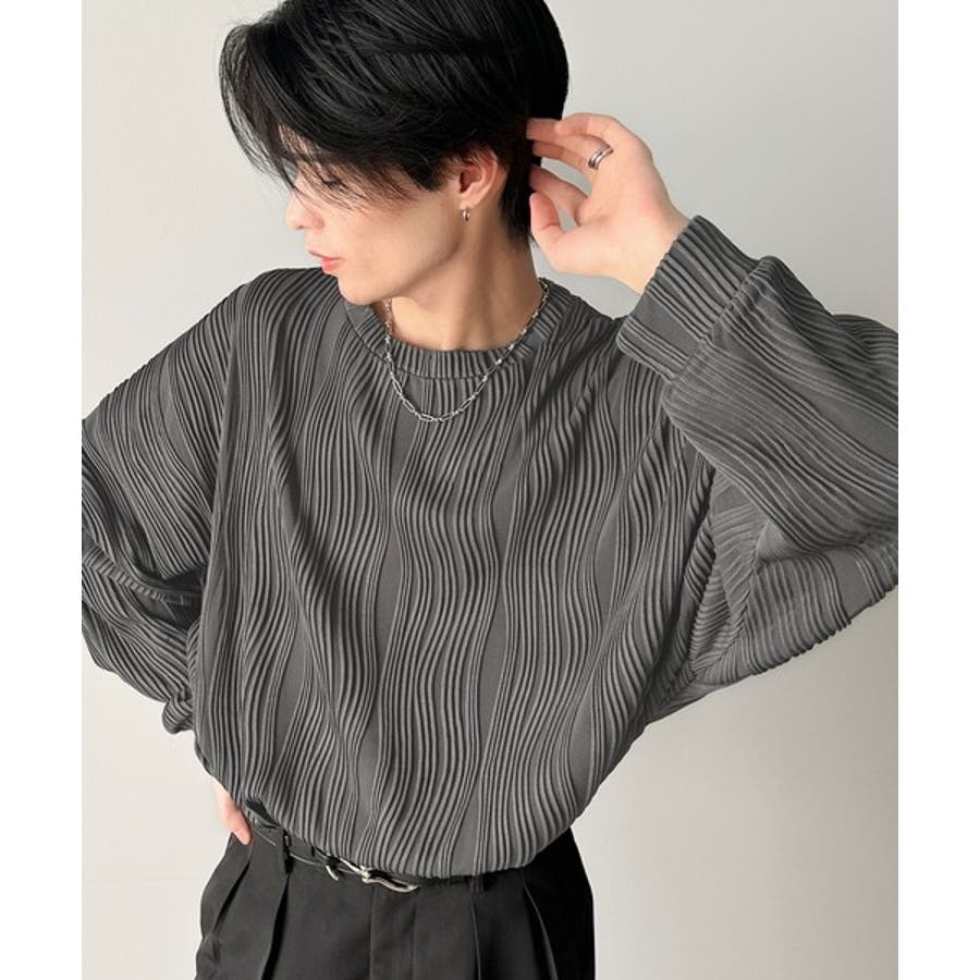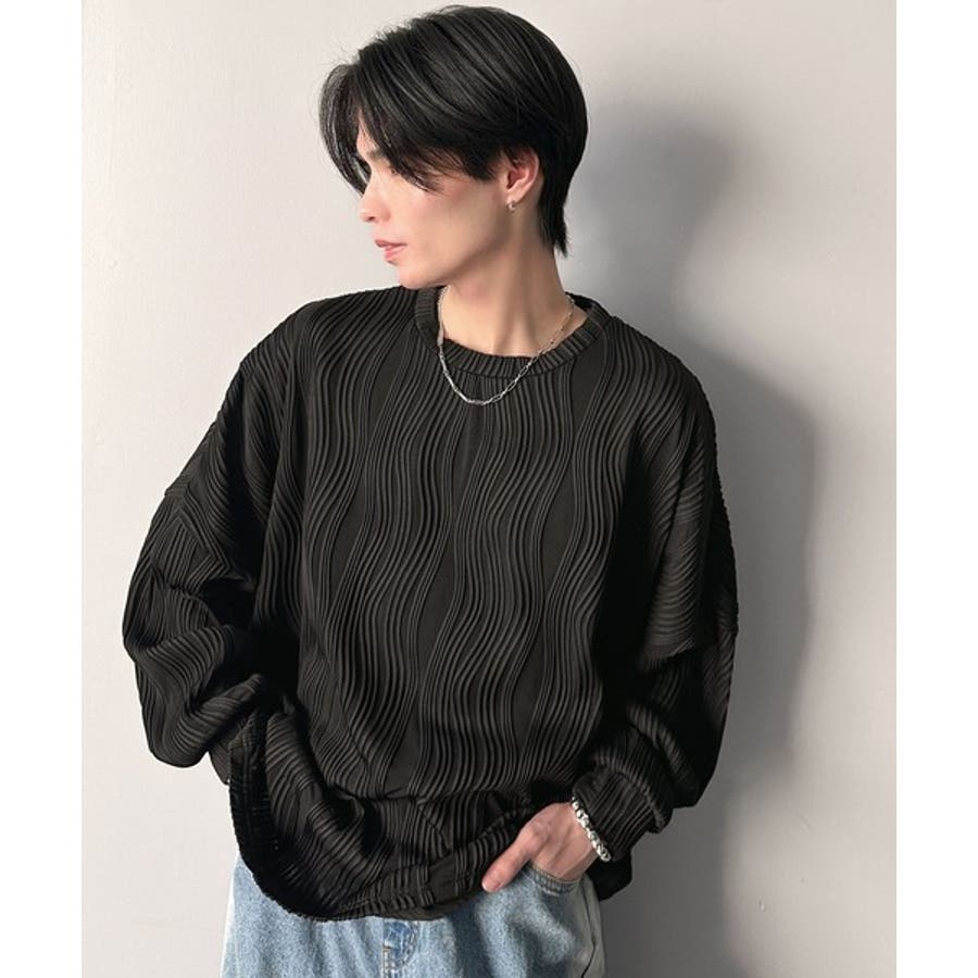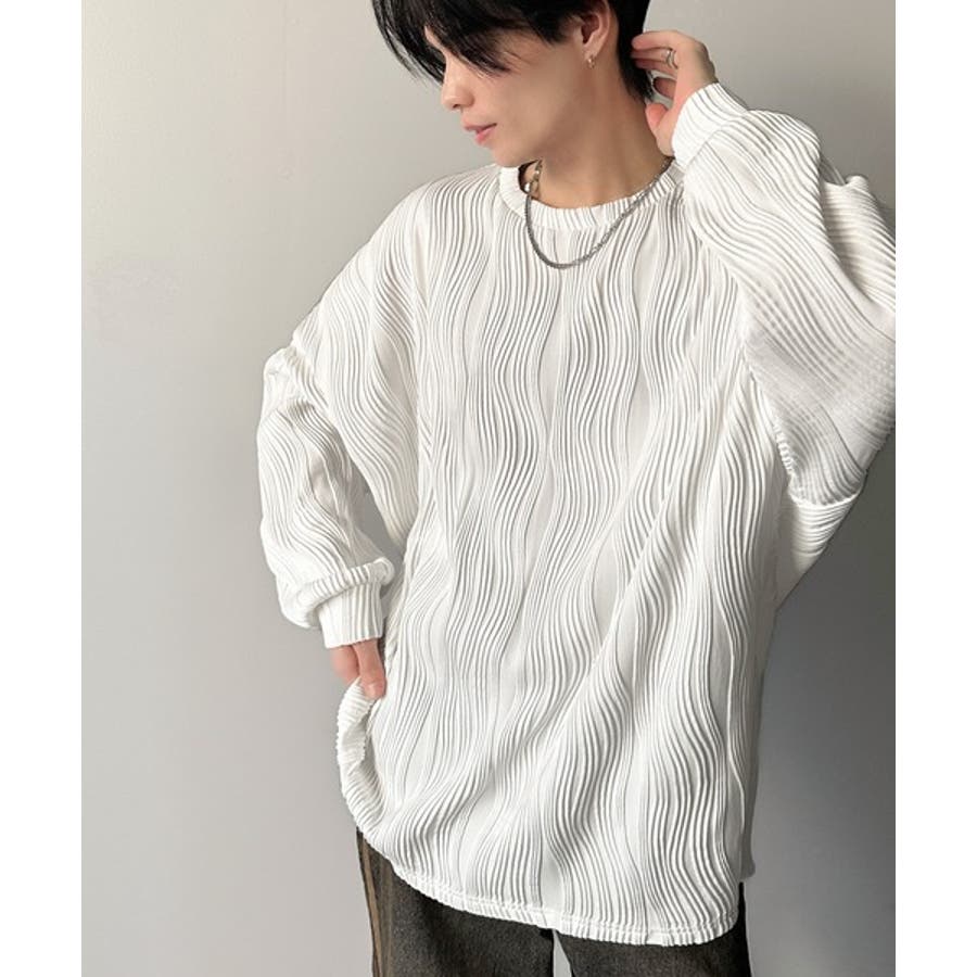ゆるさとスタイリッシュを両立。オーバーサイズウェーブ柄ジャガード長袖Tシャツ
