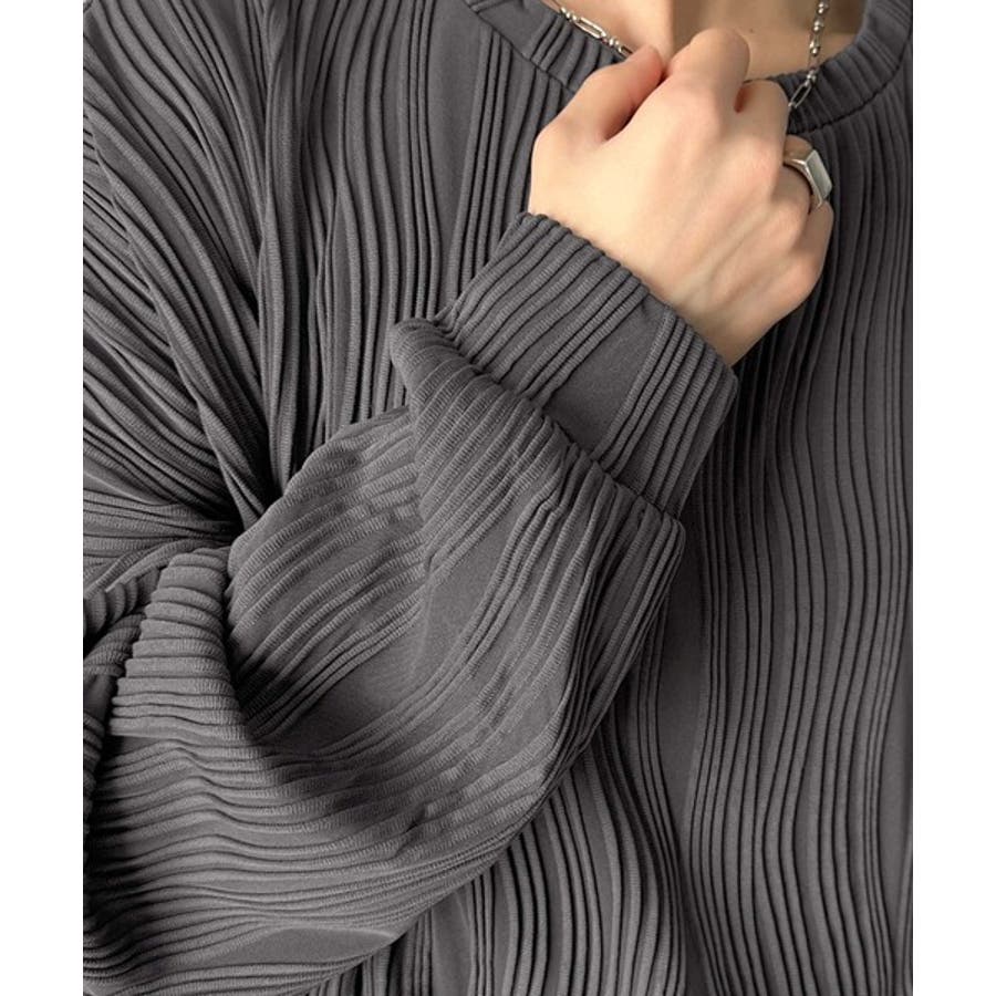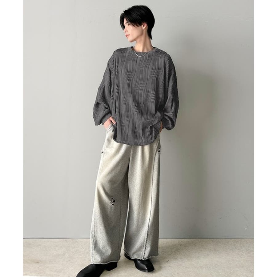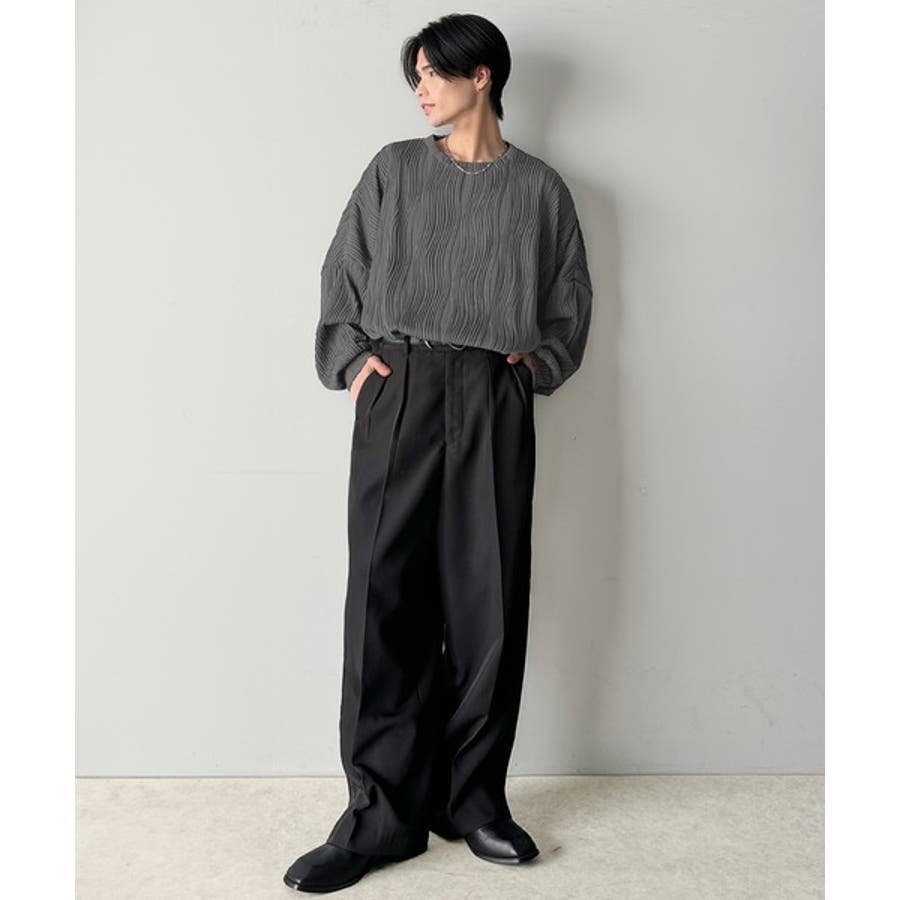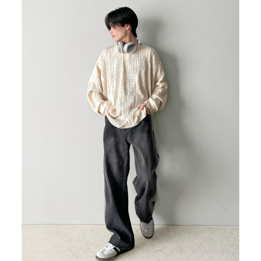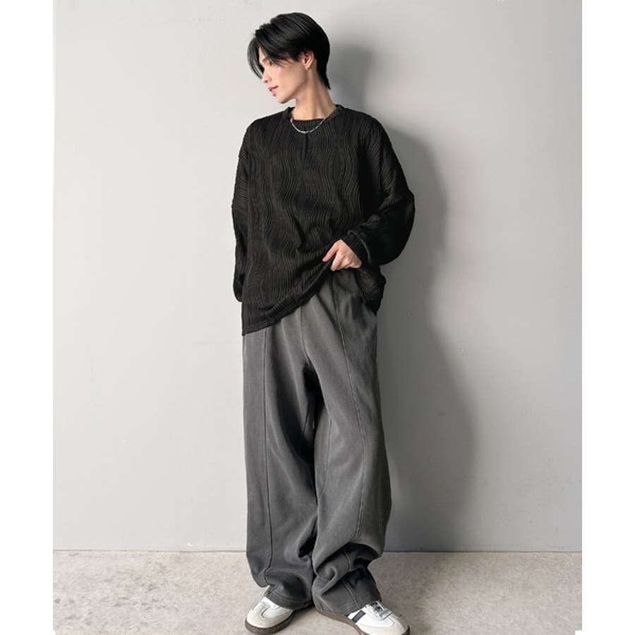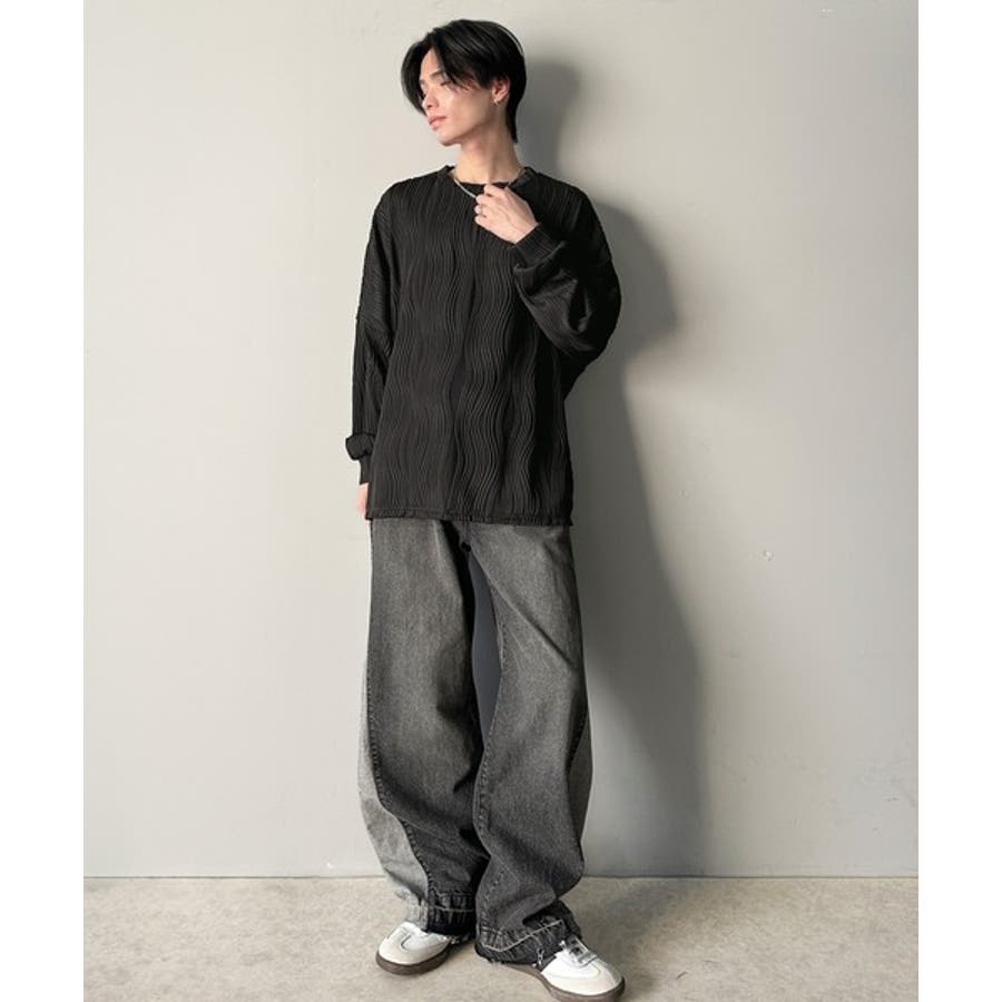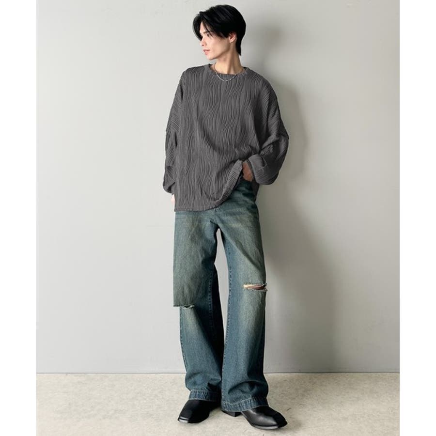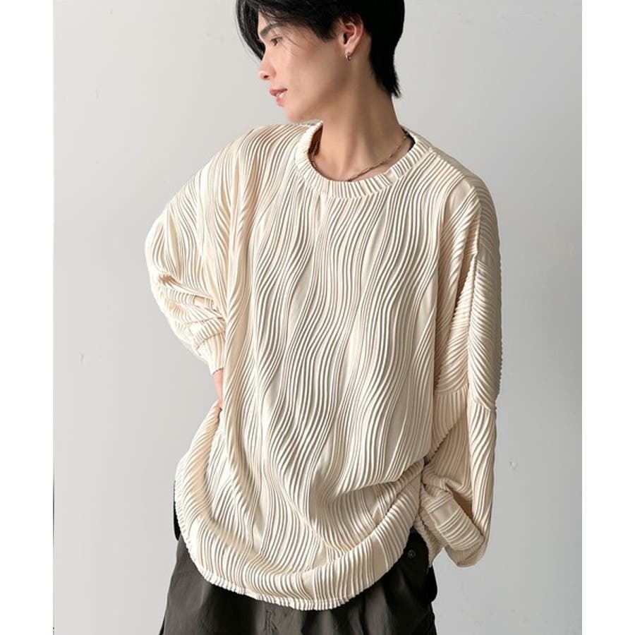 ゆるさとスタイリッシュを両立。オーバーサイズウェーブ柄ジャガード長袖Tシャツ