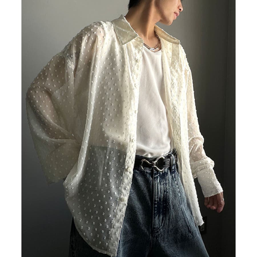 立体ドットが施されたシアー素材は、程よく肌を透かせるため、