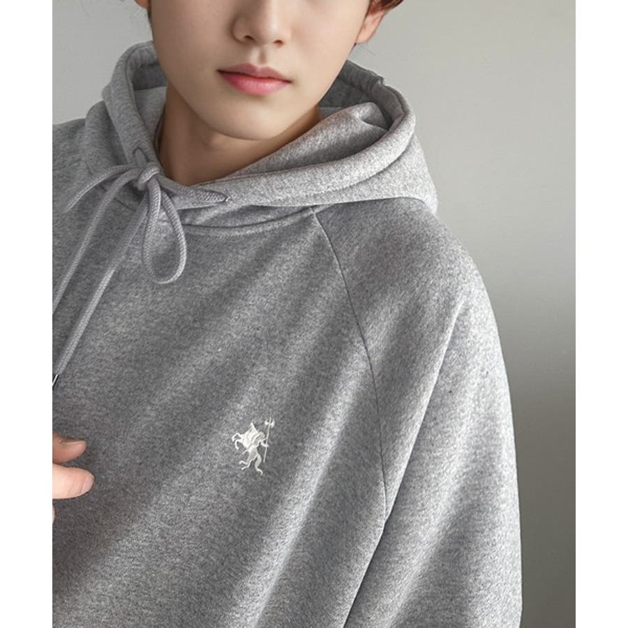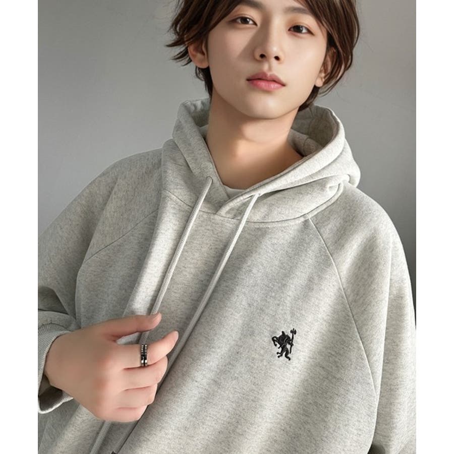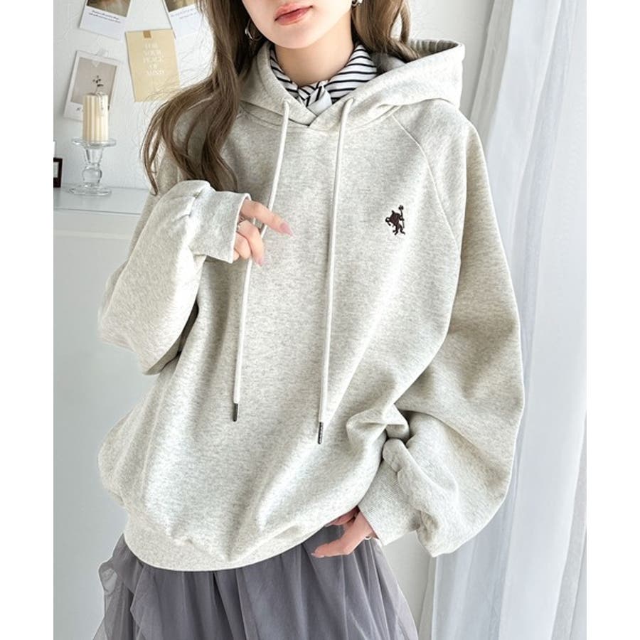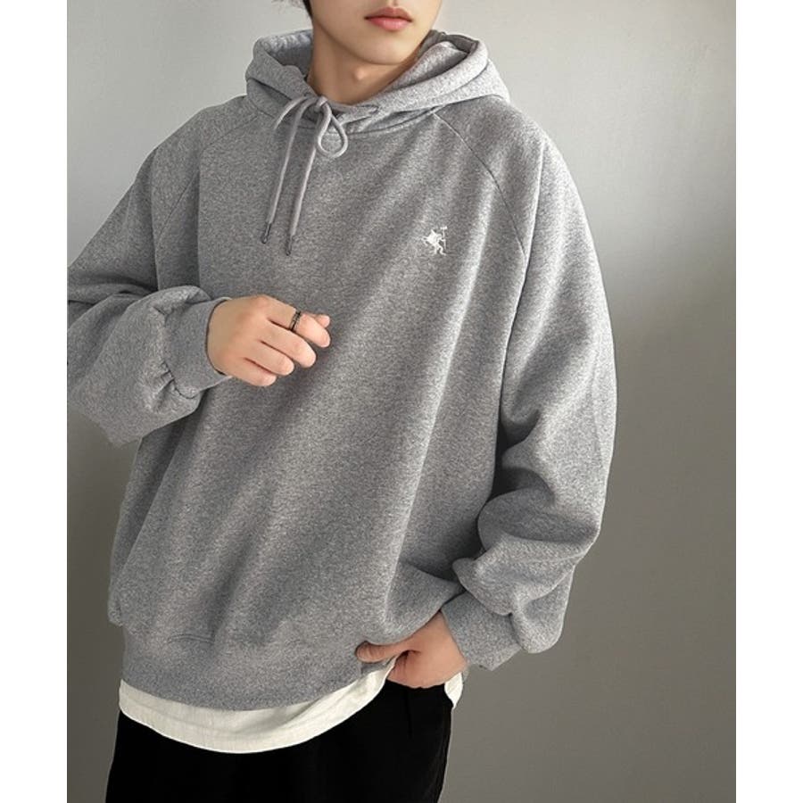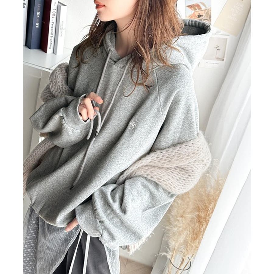 シンプル大人カジュアル。ワンポイント胸刺繍裏起毛スウェットパーカー