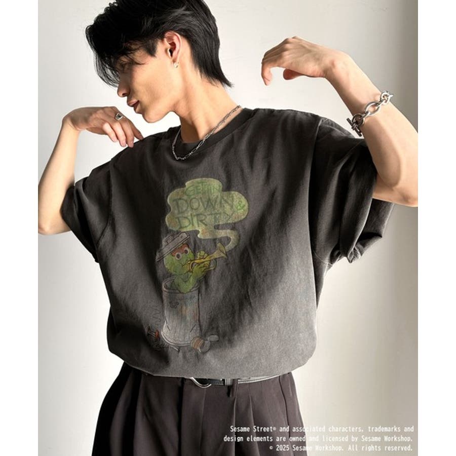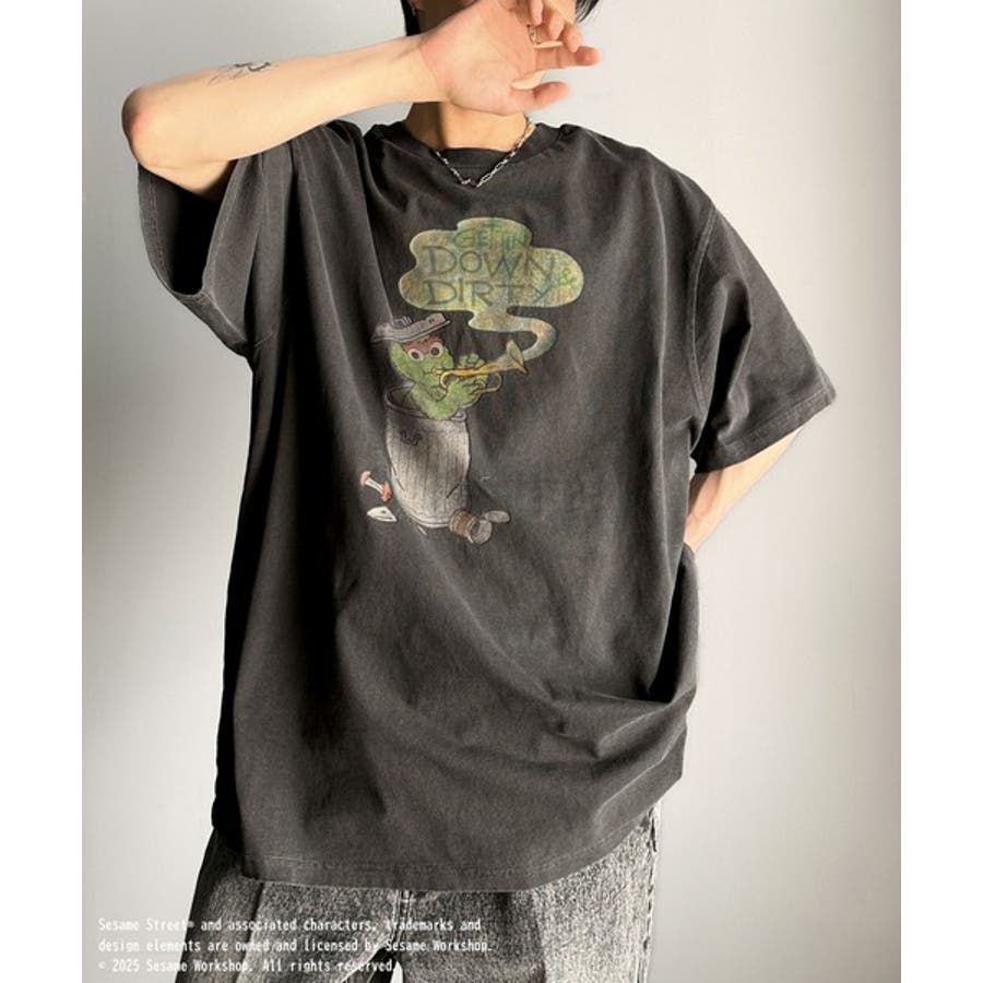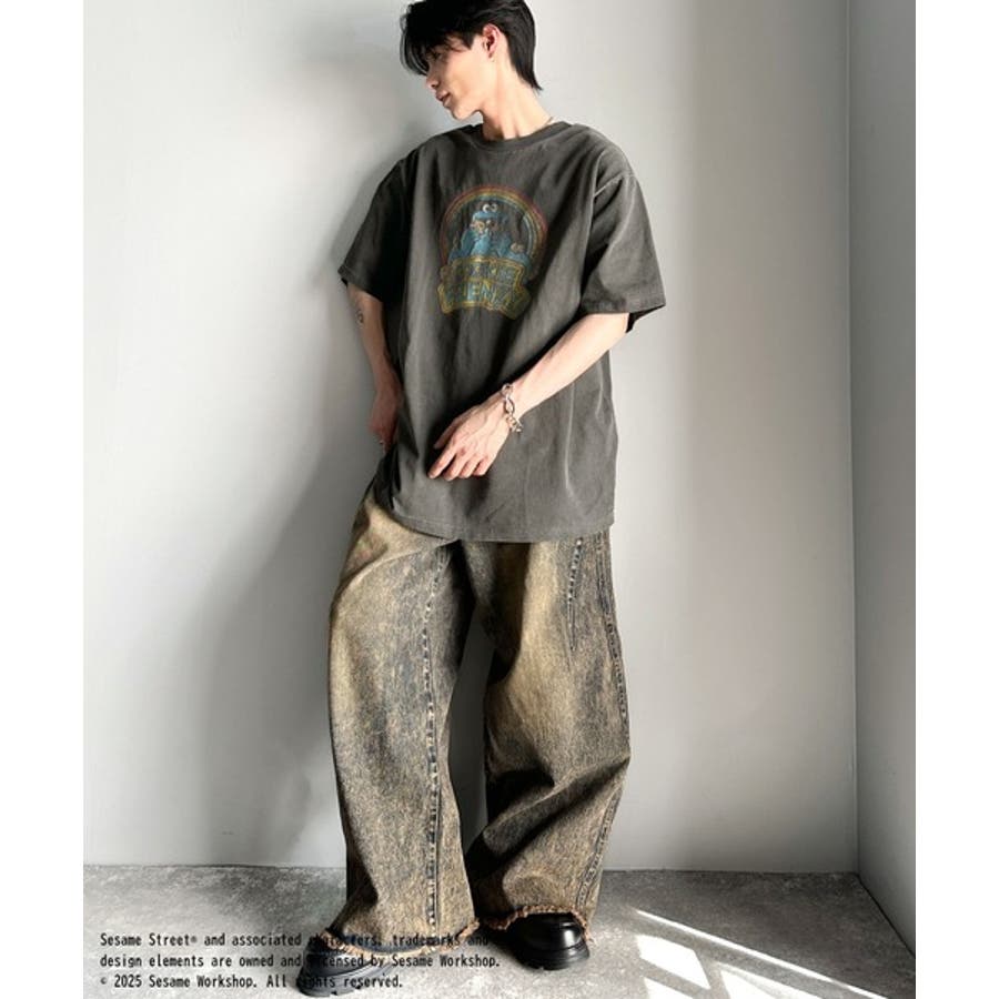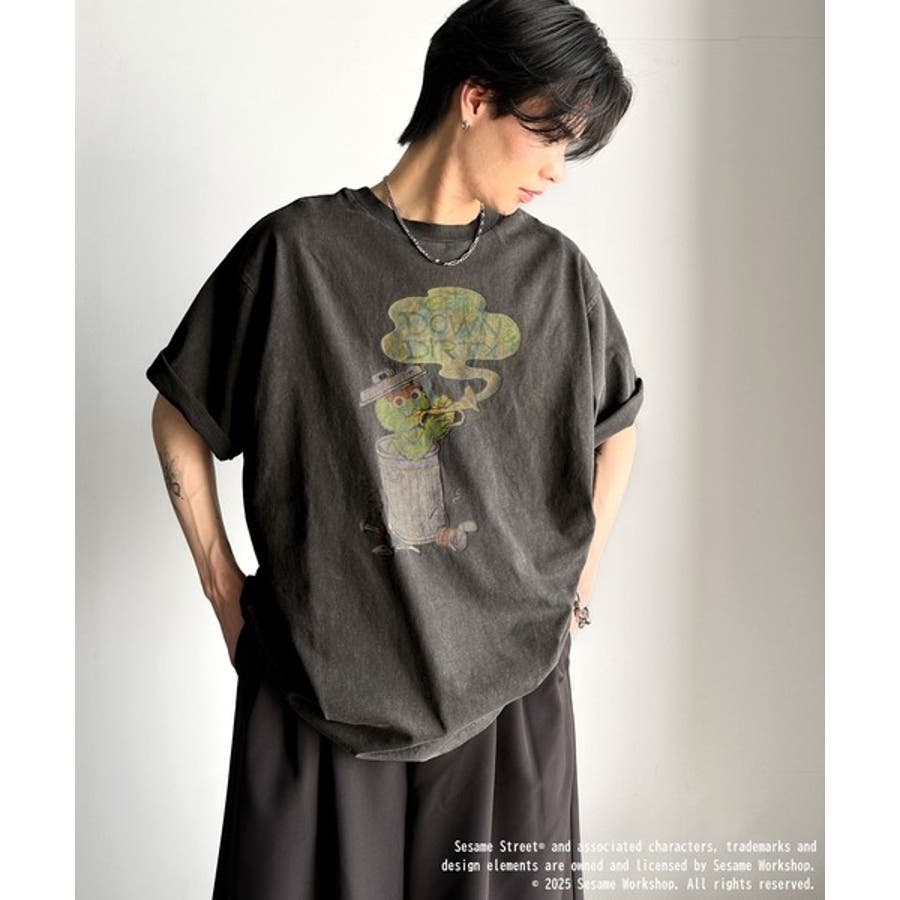 大人カジュアルにハマる。綿100%セサミキャラピグメント加工ビッグTシャツ