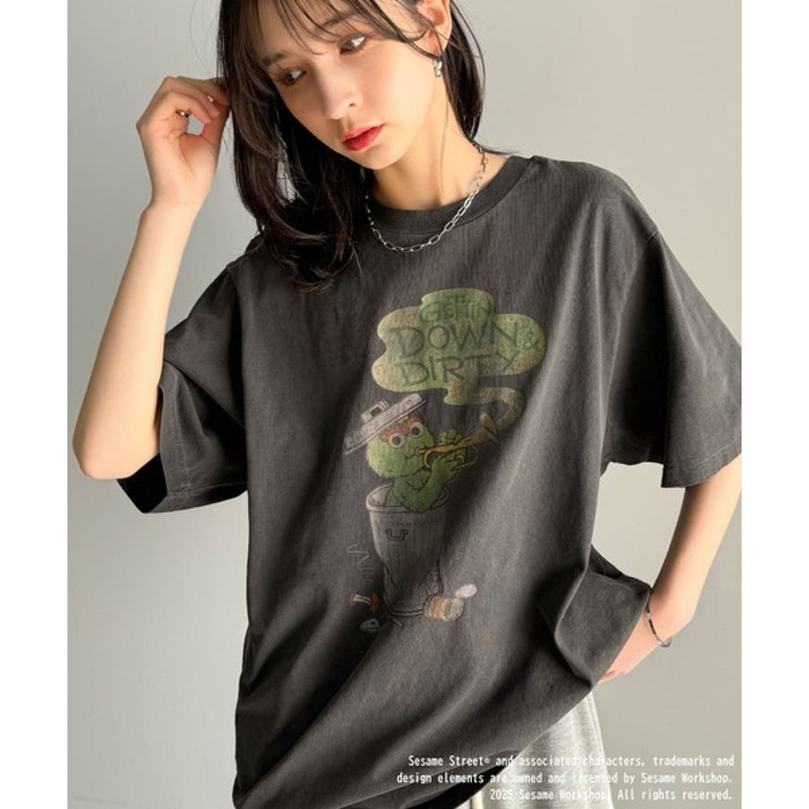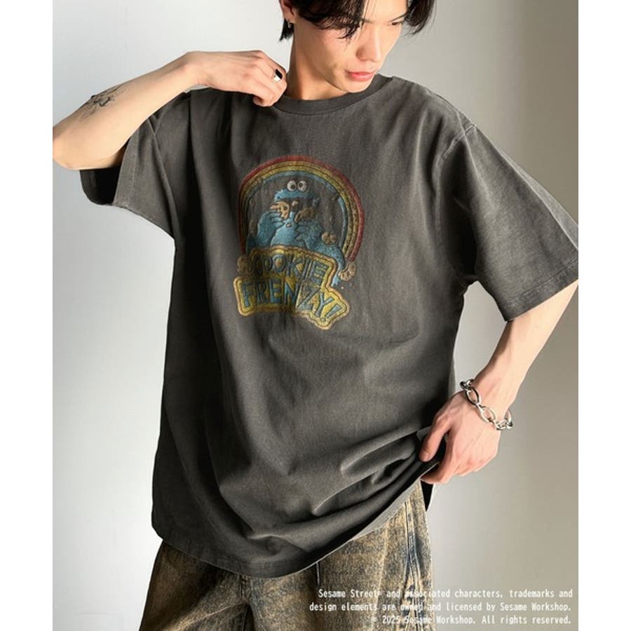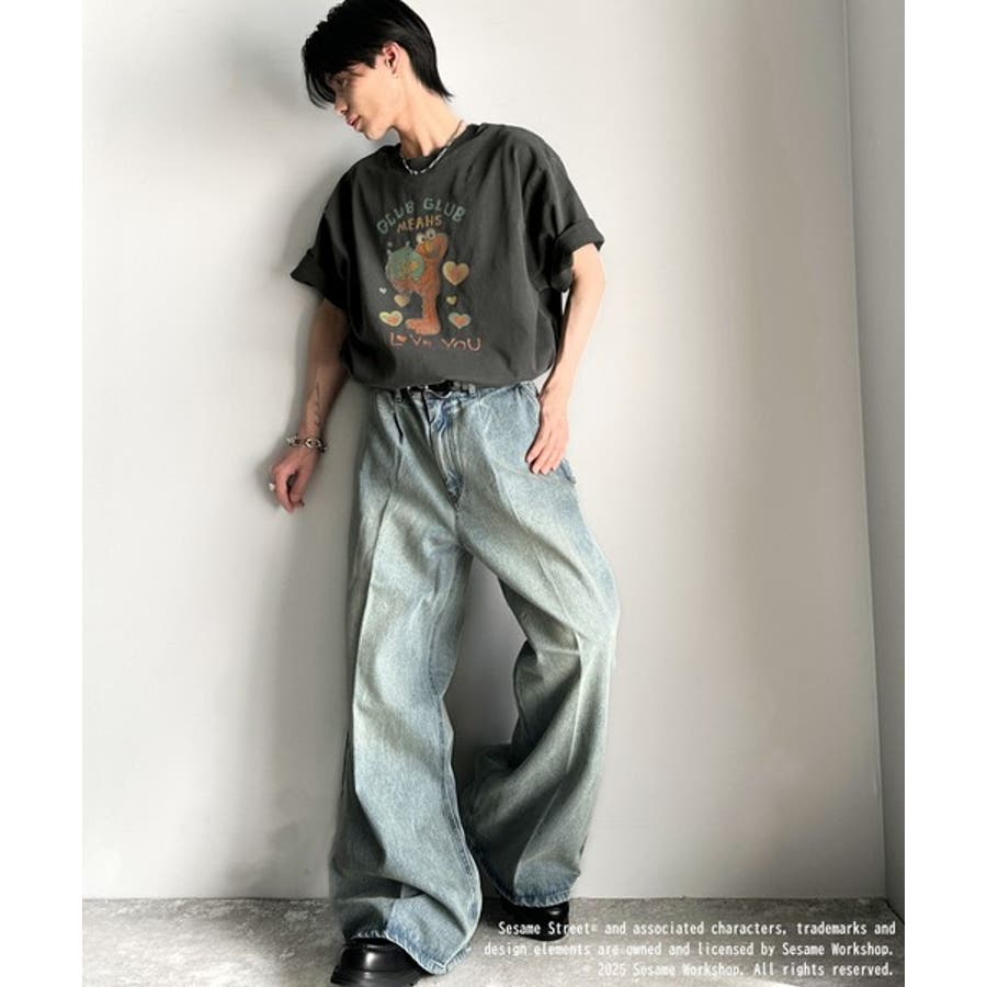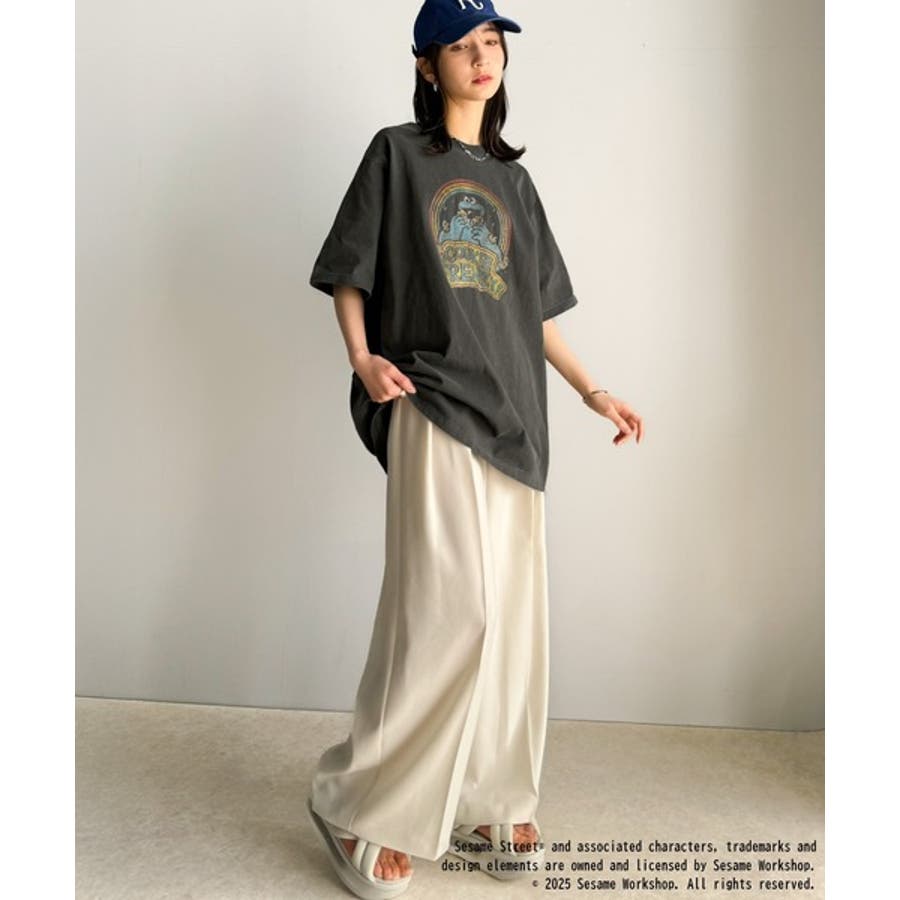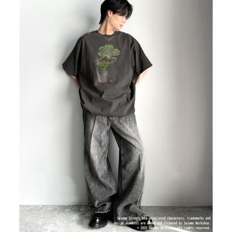 大人カジュアルにハマる。綿100%セサミキャラピグメント加工ビッグTシャツ
