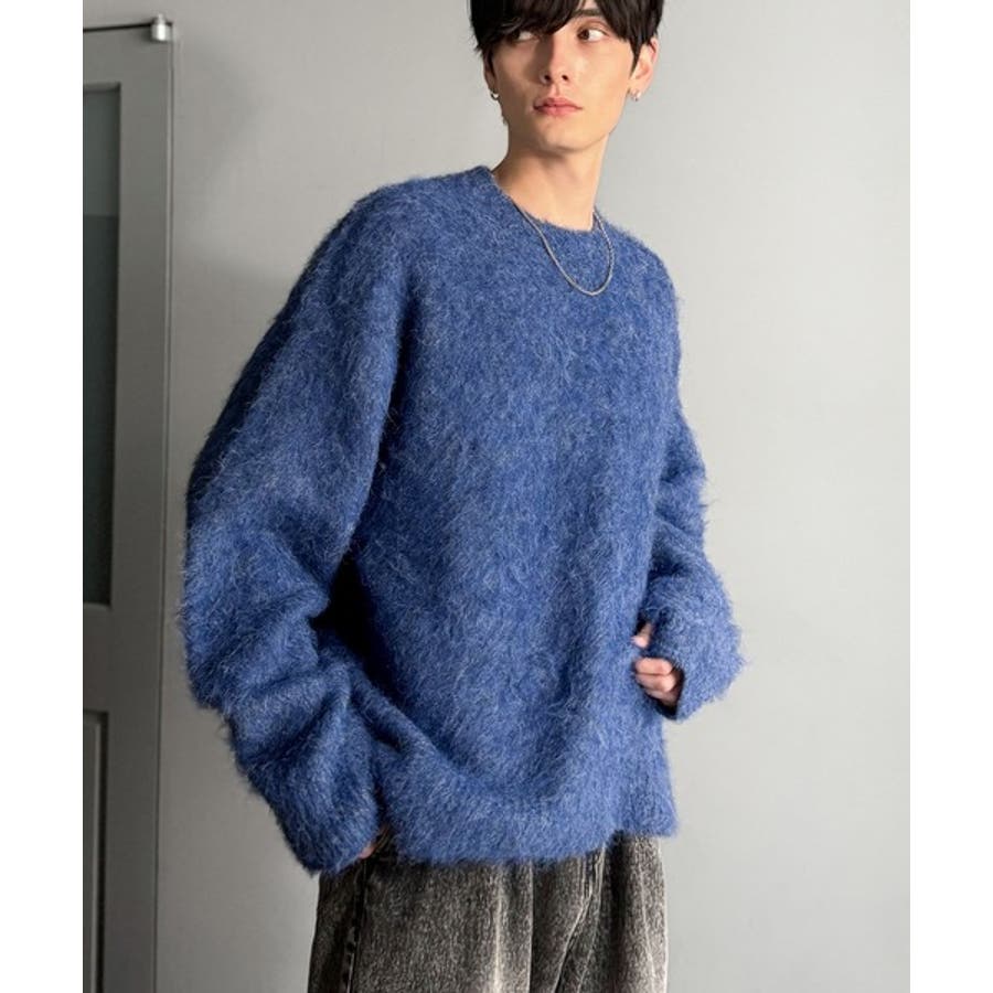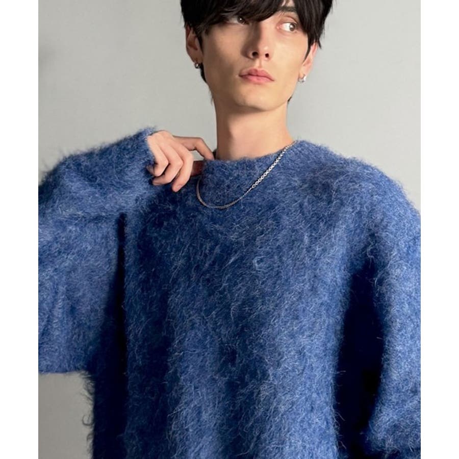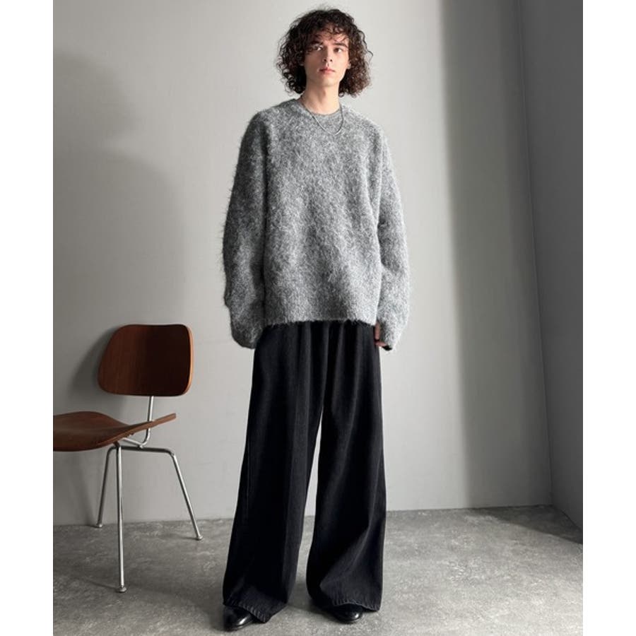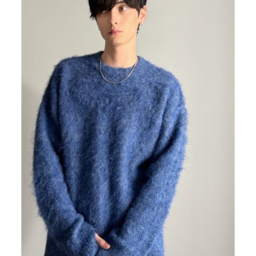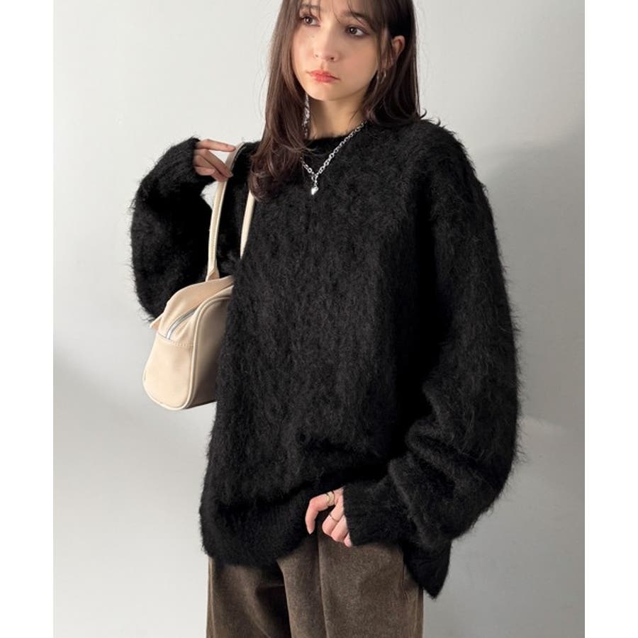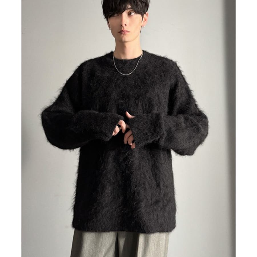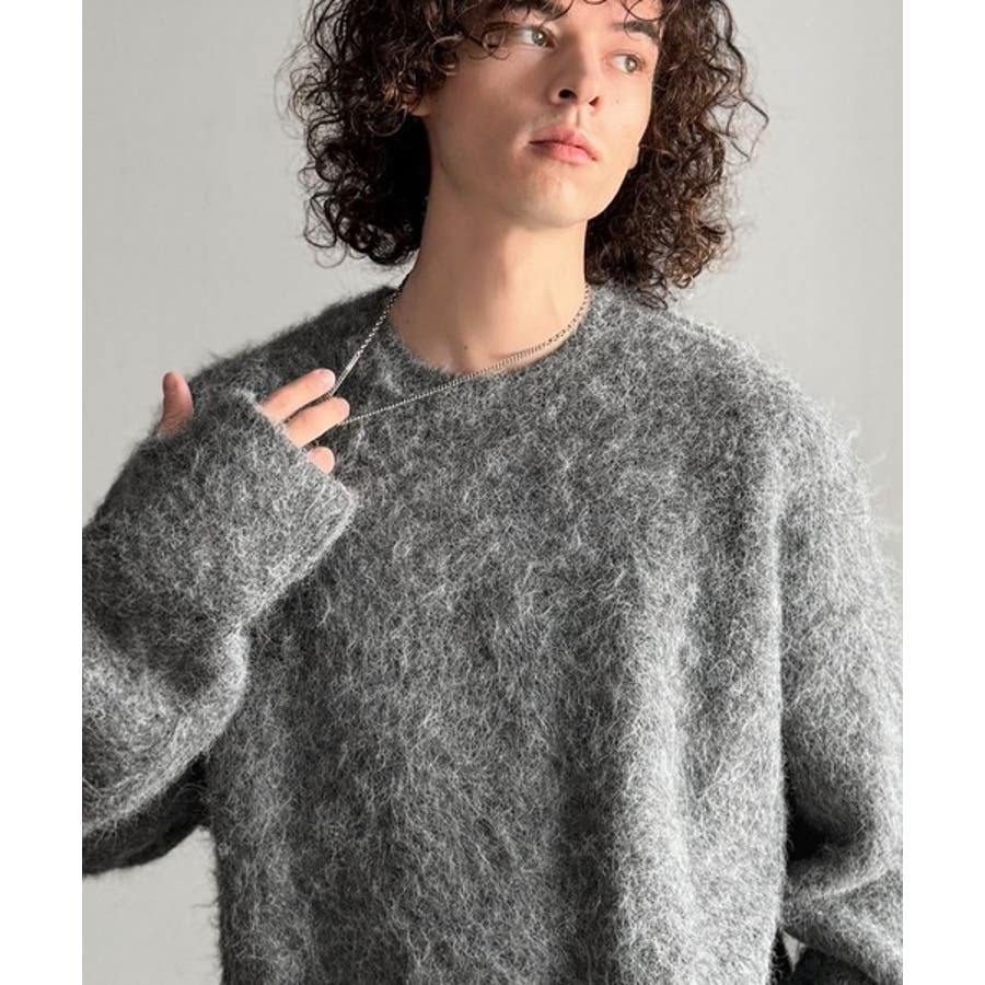 毛足のあるミックスシャギー素材が魅力のクルーネックセーター。