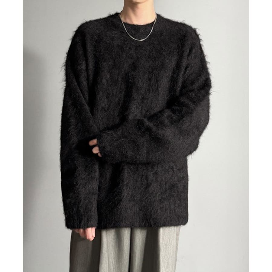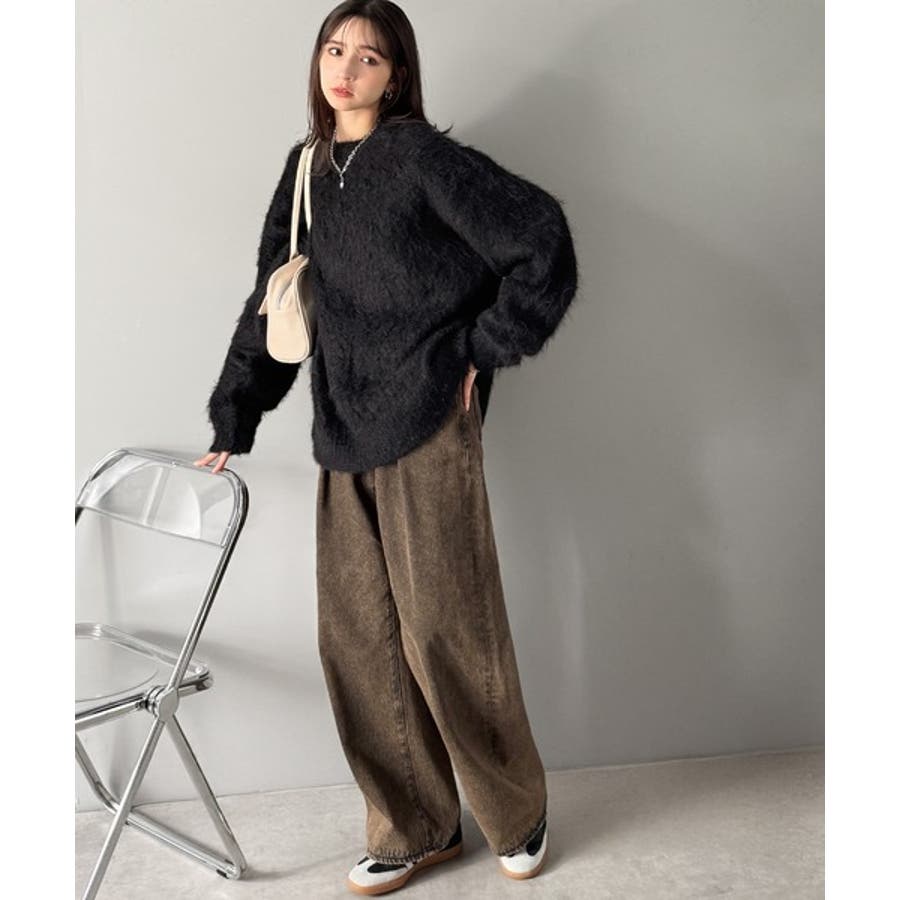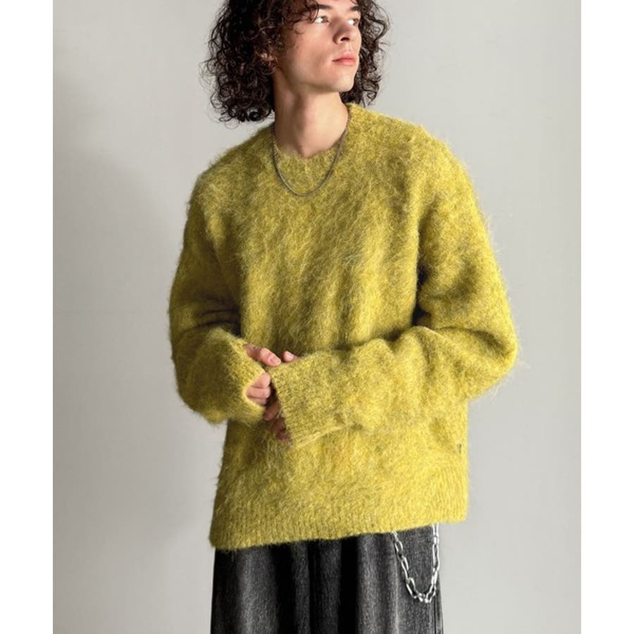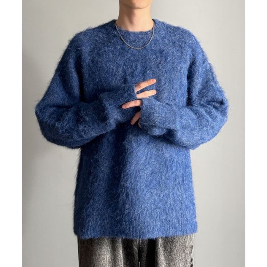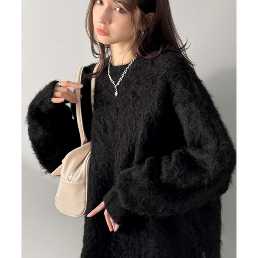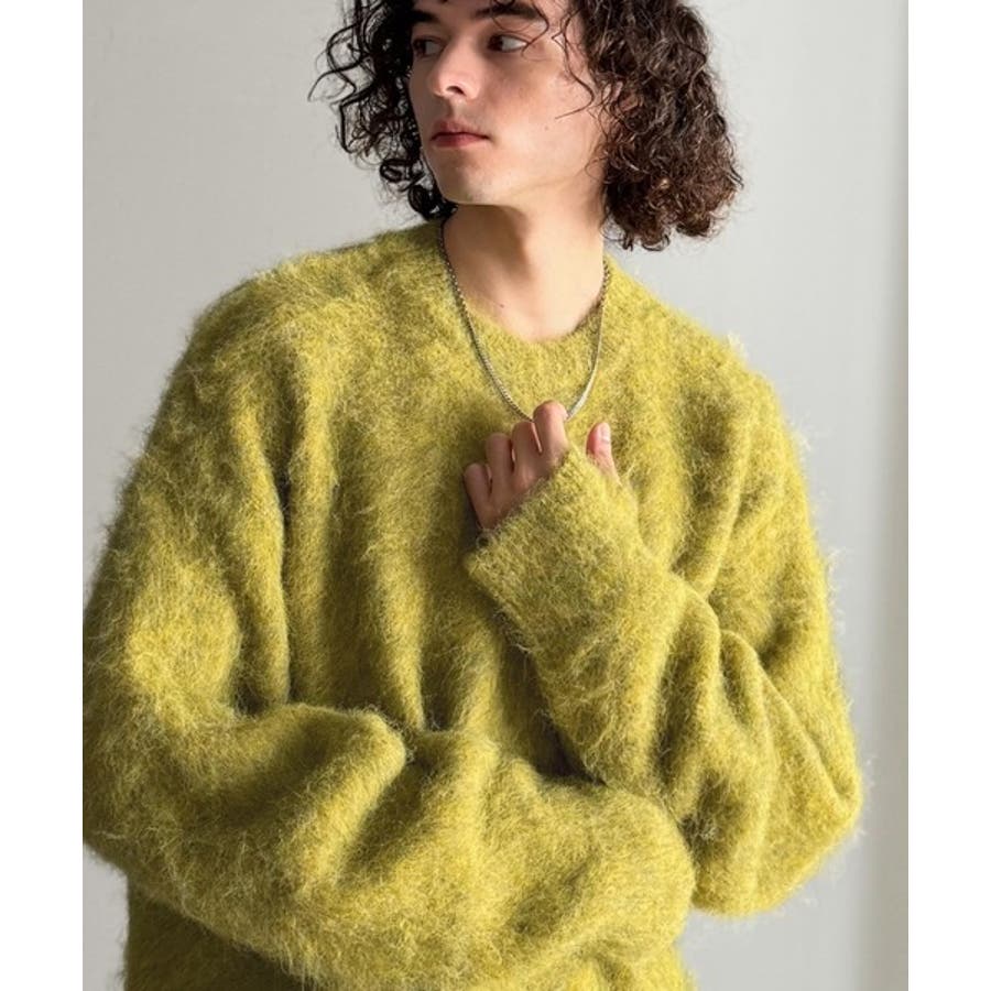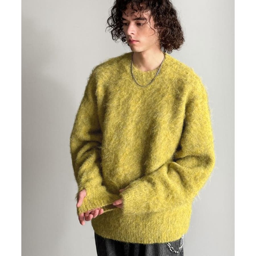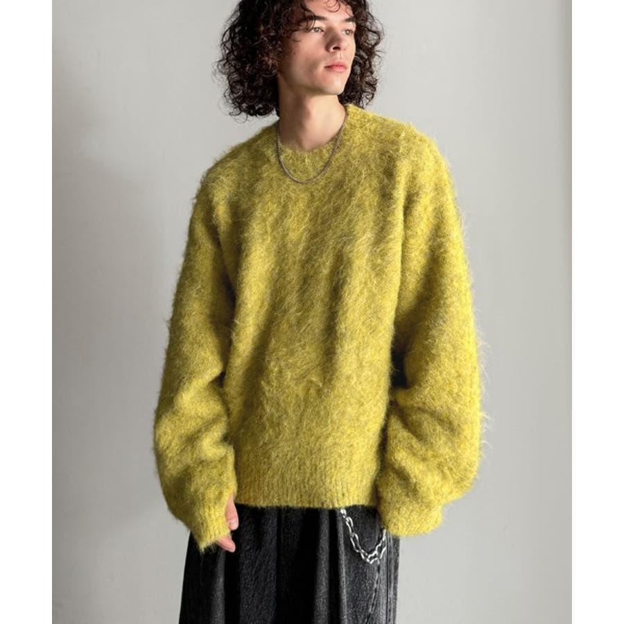 毛足のあるミックスシャギー素材が魅力のクルーネックセーター。
