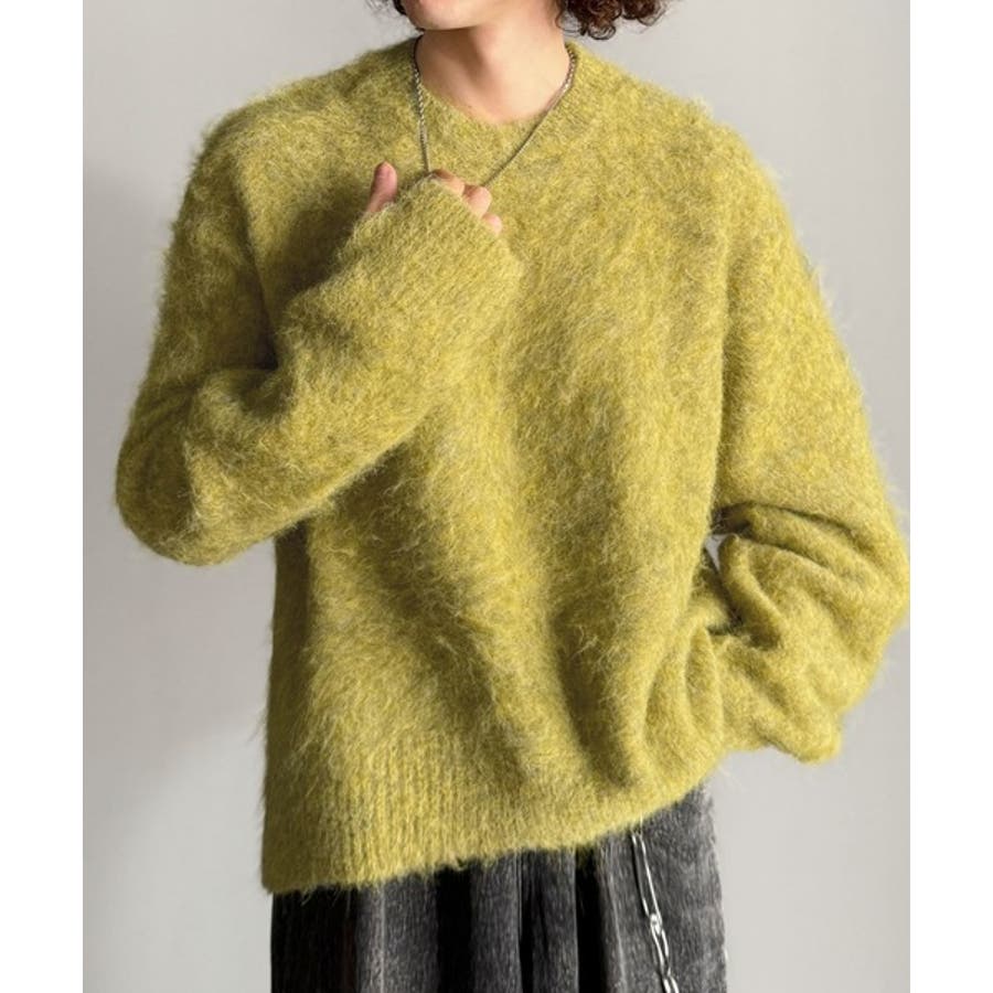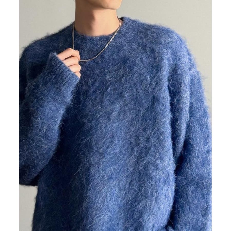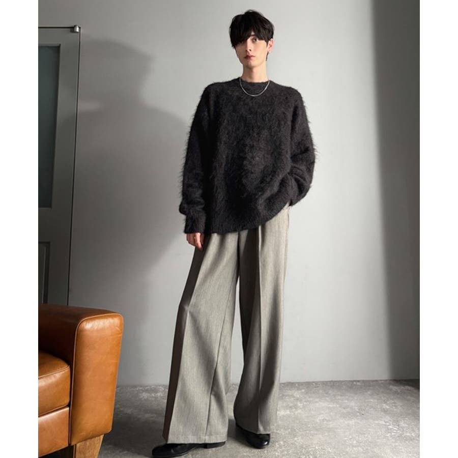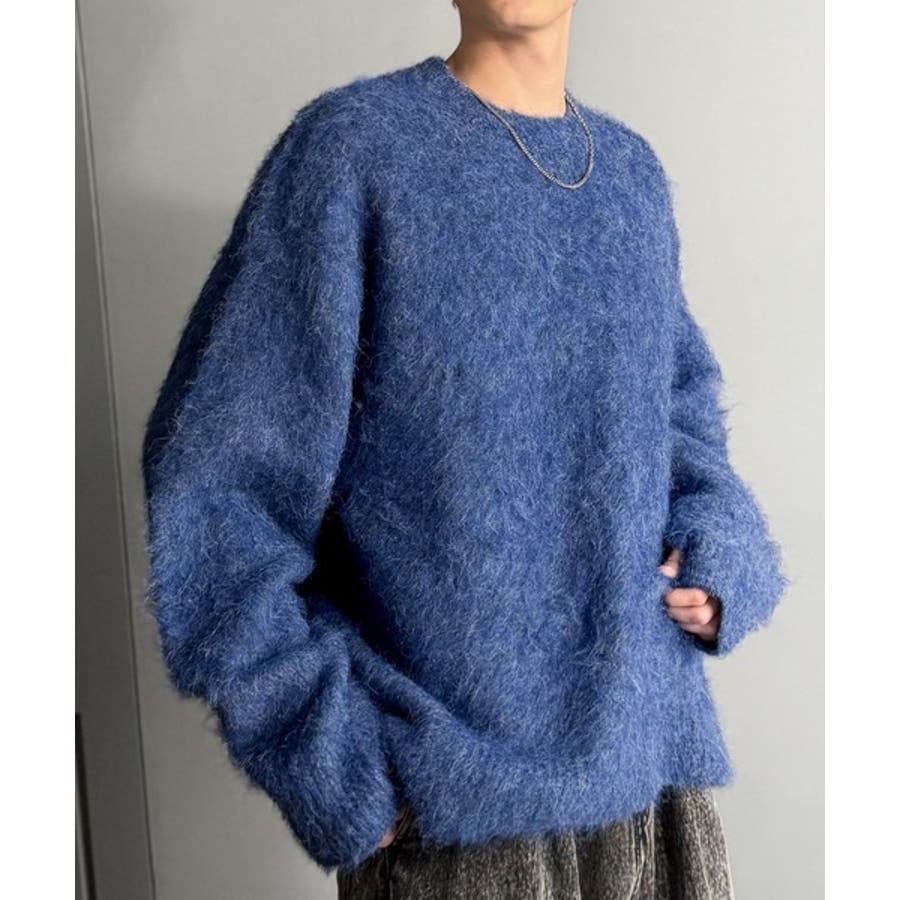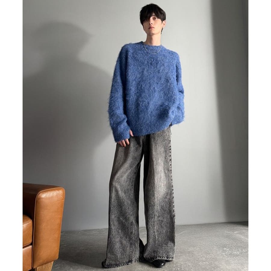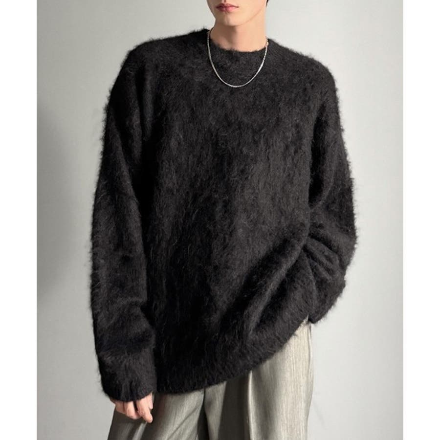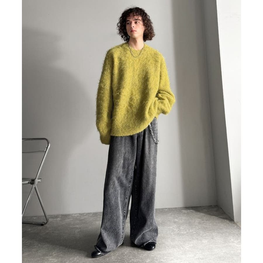 毛足のあるミックスシャギー素材が魅力のクルーネックセーター。