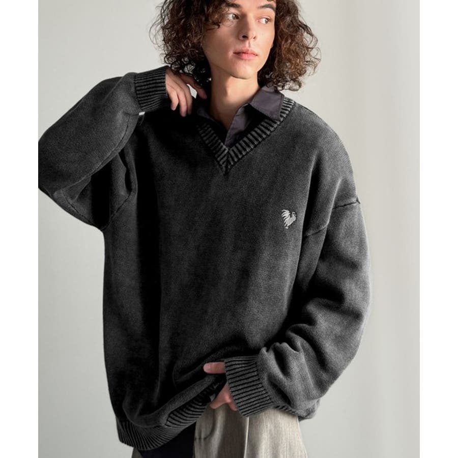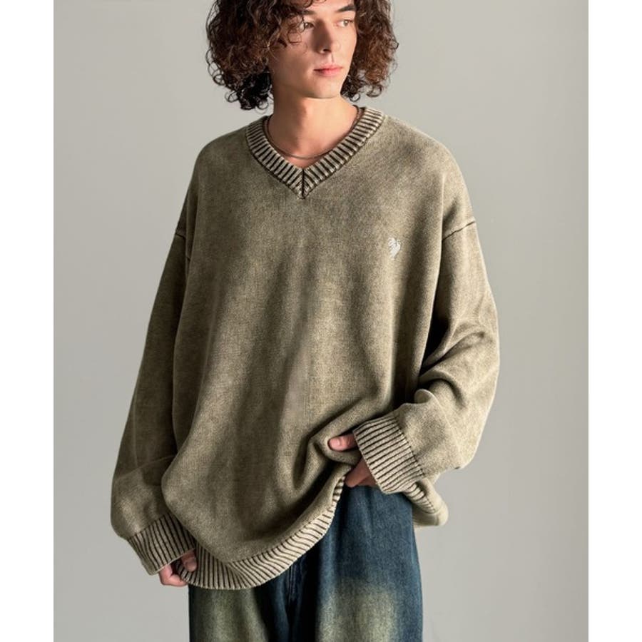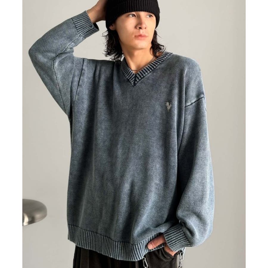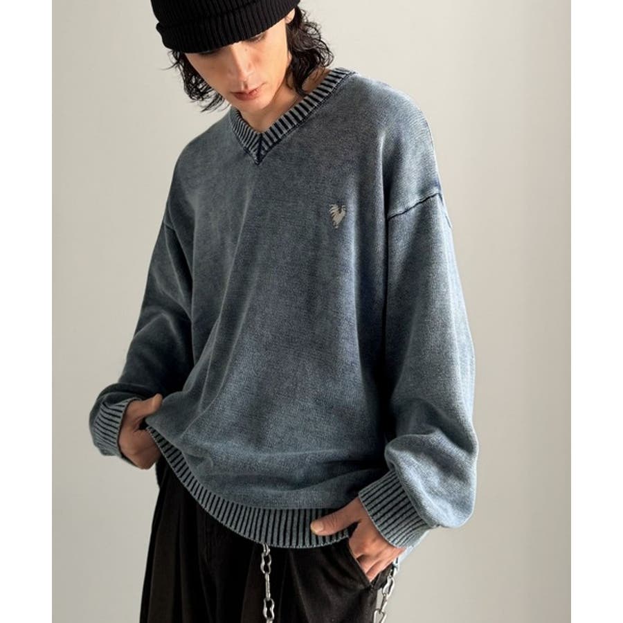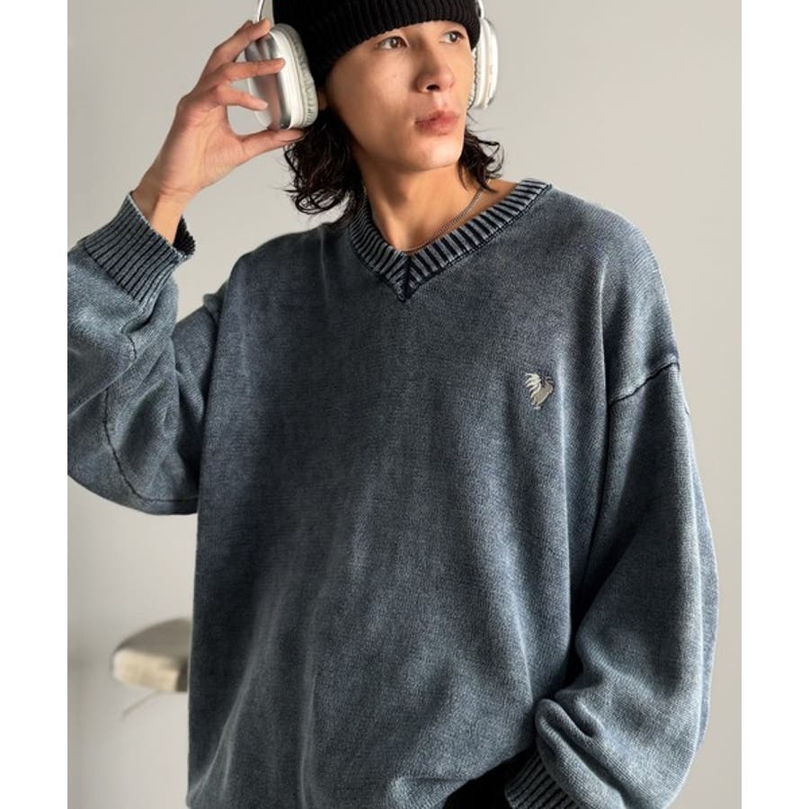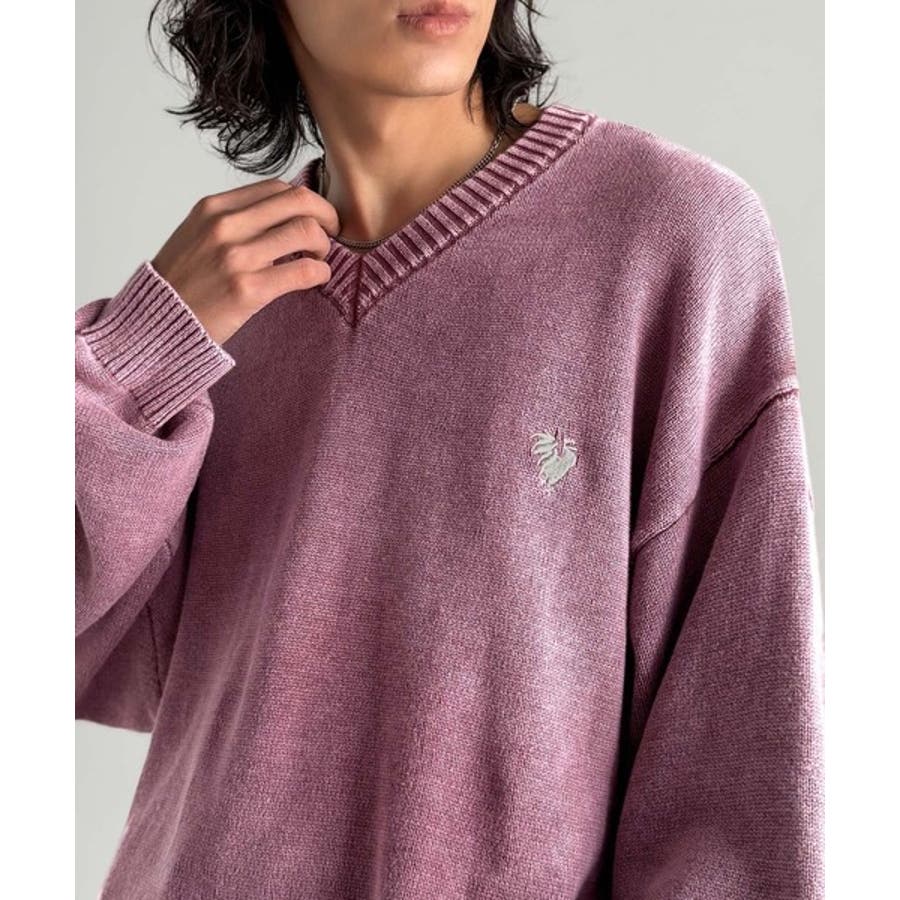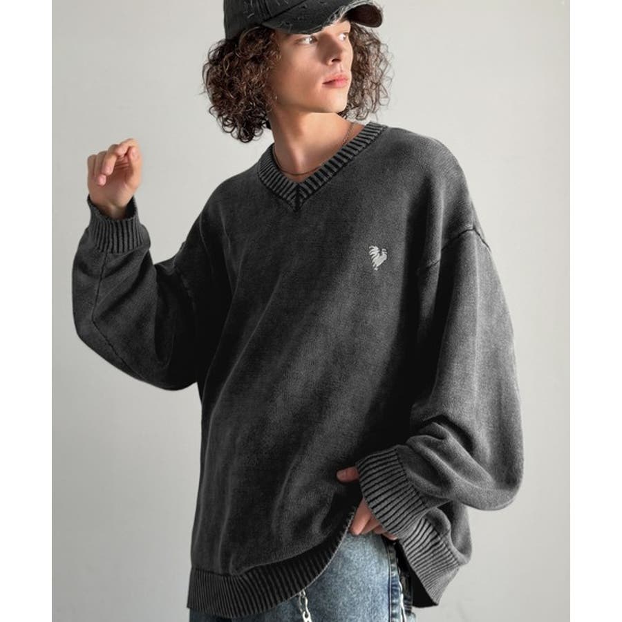 「自分ウケ最強。」綿100%刺繍入りピグメント加工Vネックセーター