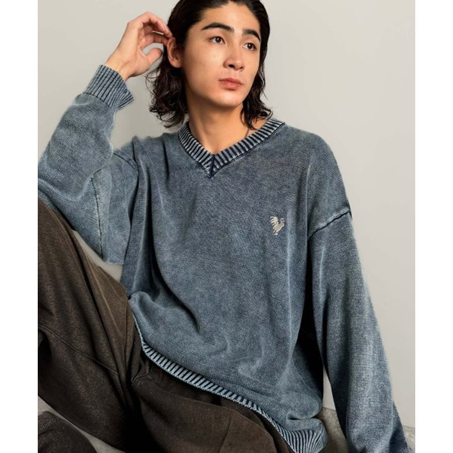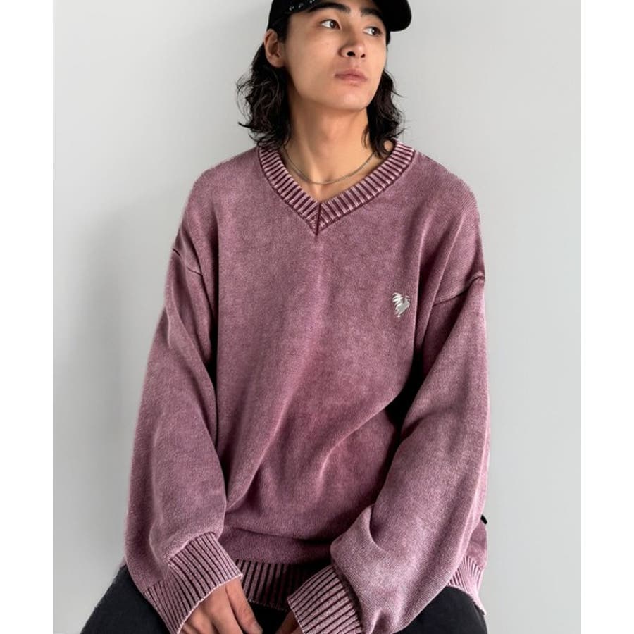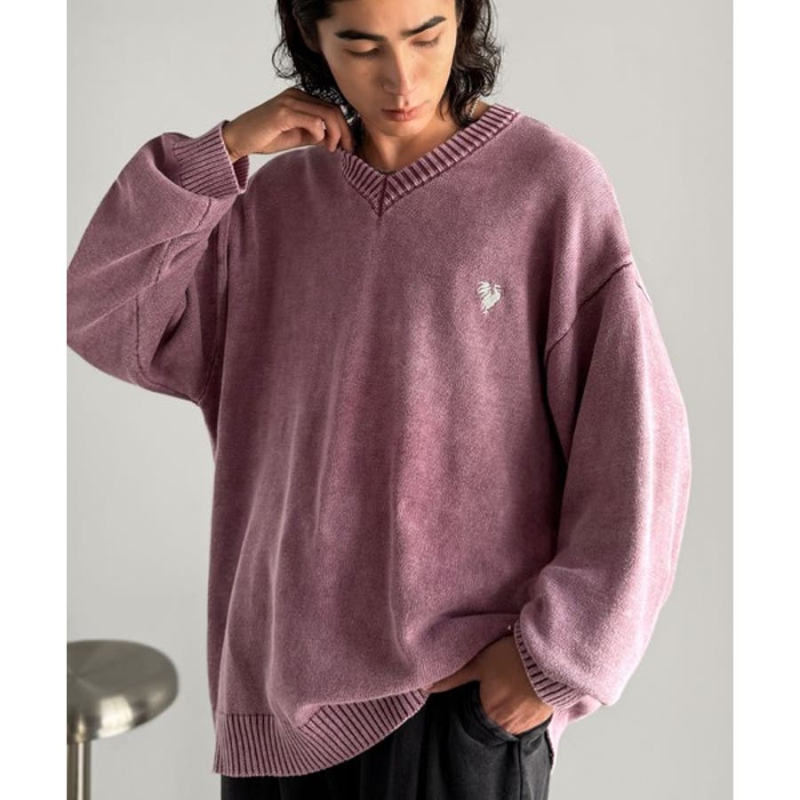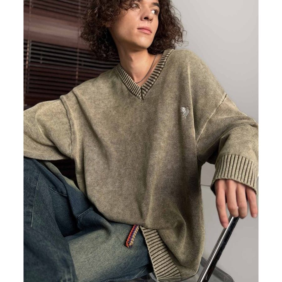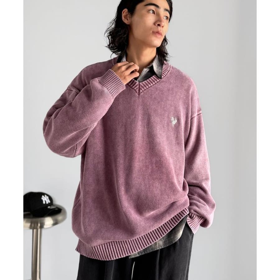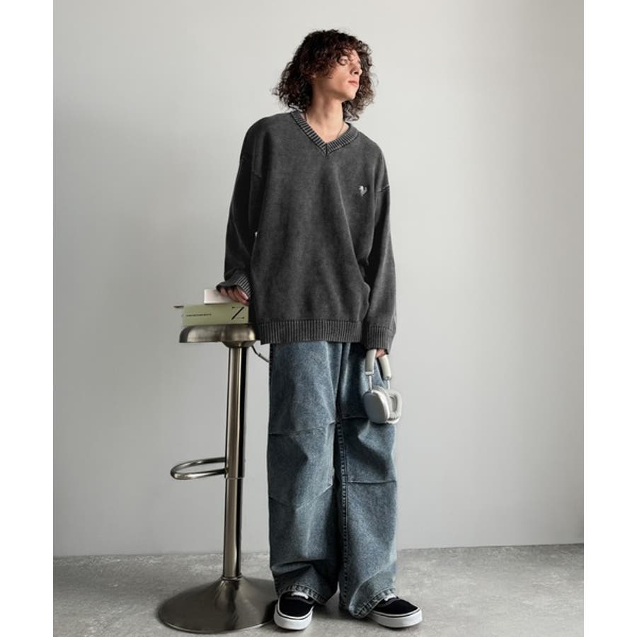 「自分ウケ最強。」綿100%刺繍入りピグメント加工Vネックセーター