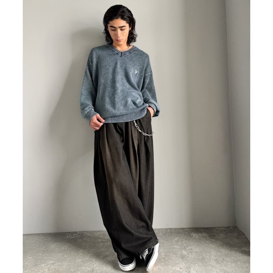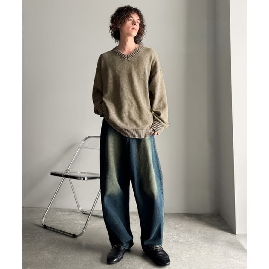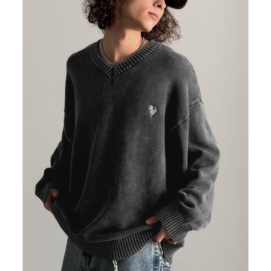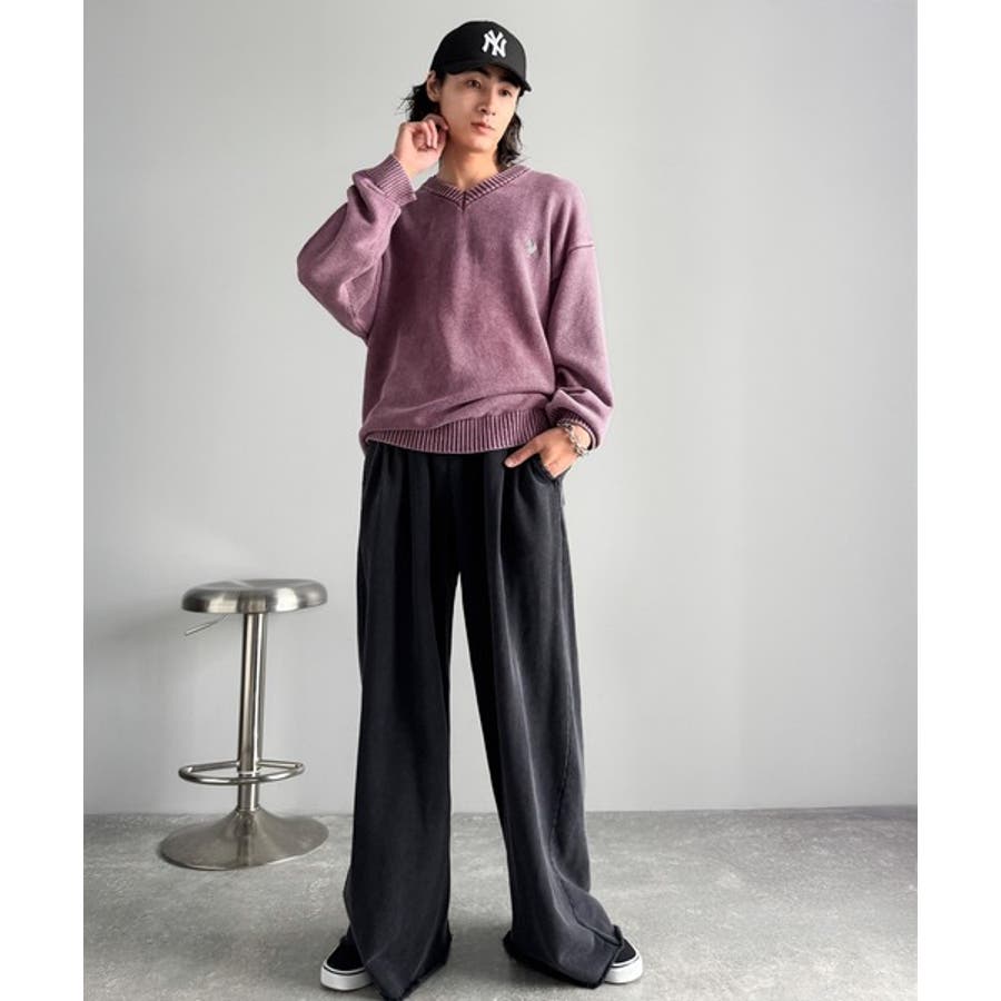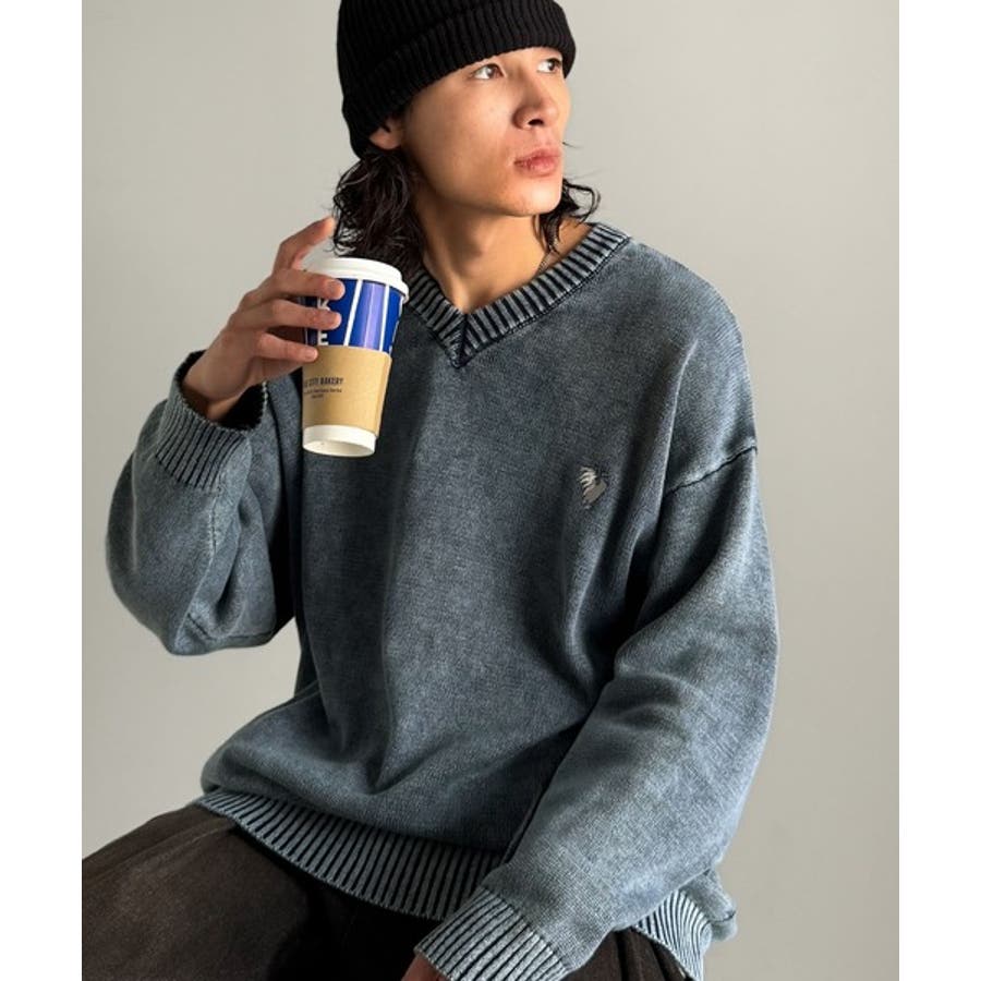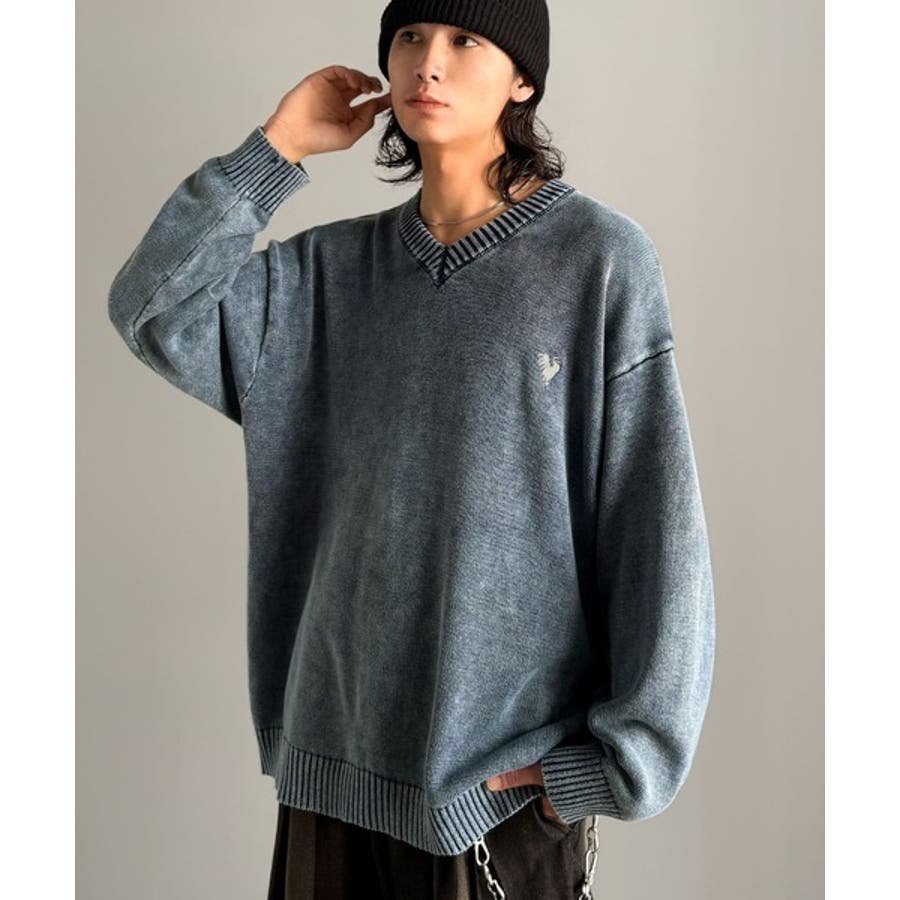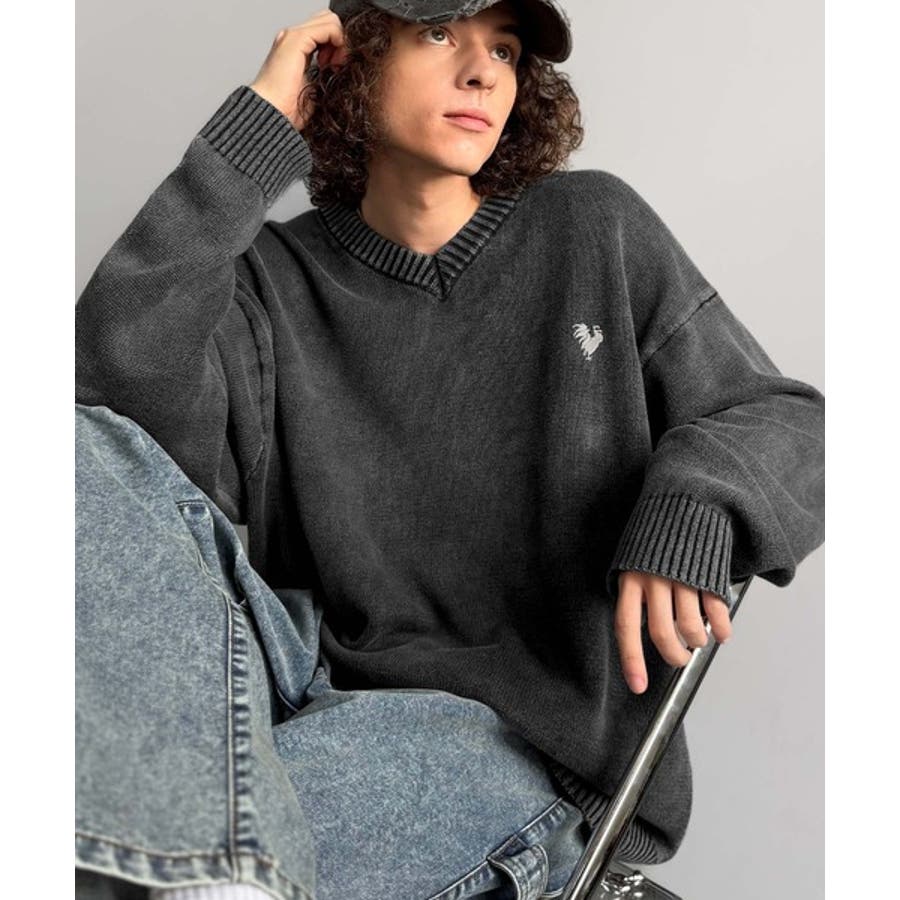 「自分ウケ最強。」綿100%刺繍入りピグメント加工Vネックセーター