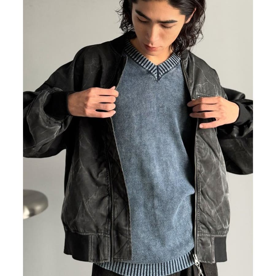 着るほどに風合いが増すピグメント加工Vネックセーター。