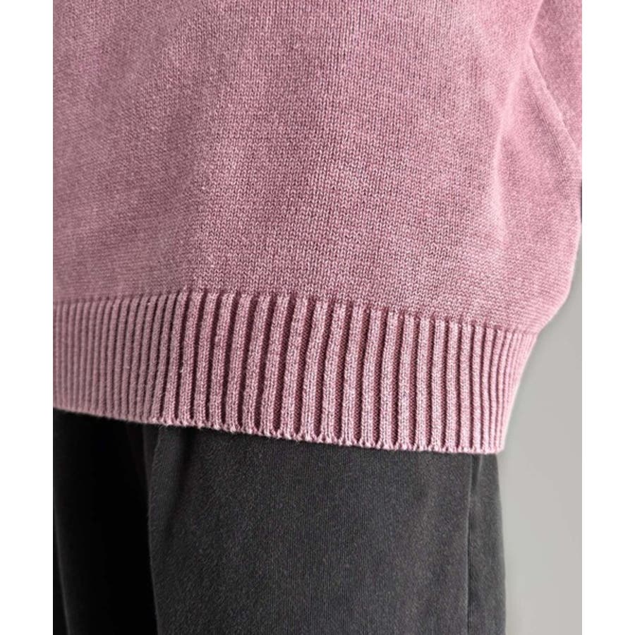 綿100%刺繍入りピグメント加工Vネックセーター」