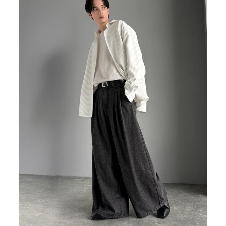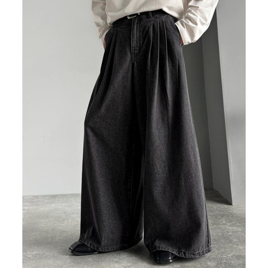 深めに入った3タックが美しい立体感を生み、スーパーワイドなシルエットで存在感を放つ。