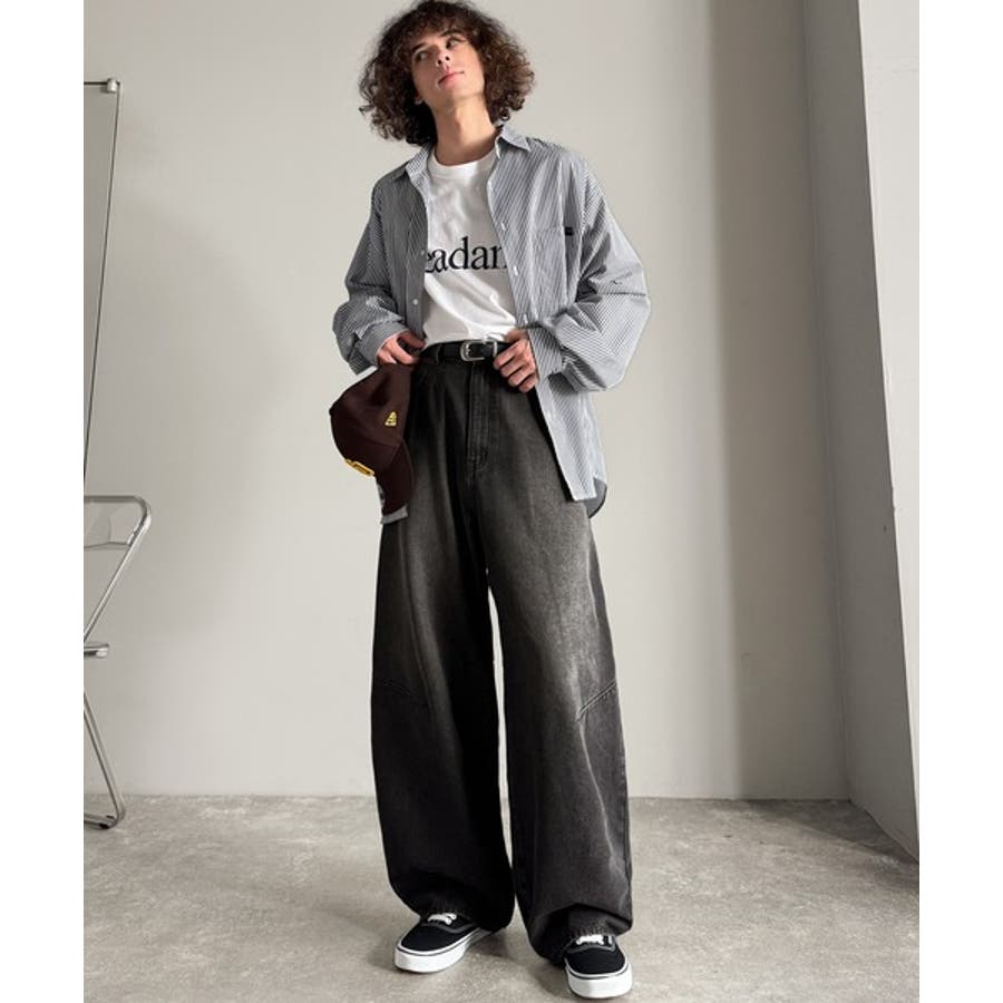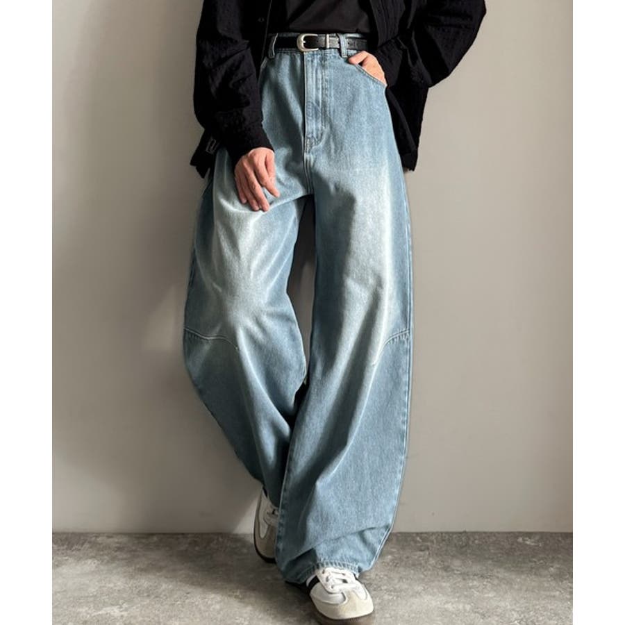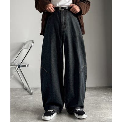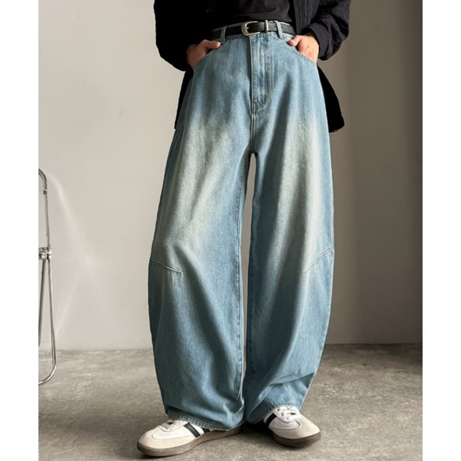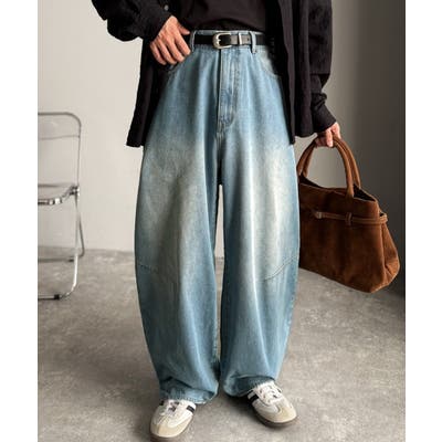 「シルエットで語る。」ブラスト加工カーブシルエットバレルレッグデニムパンツ
