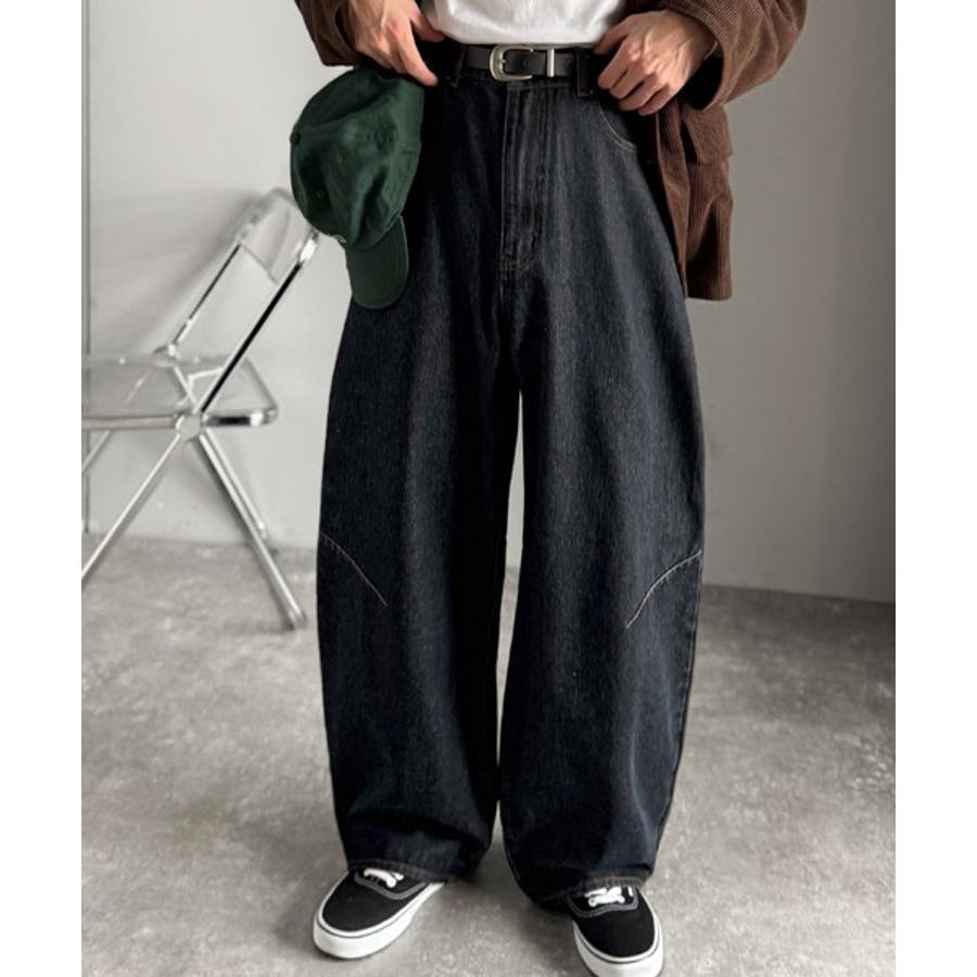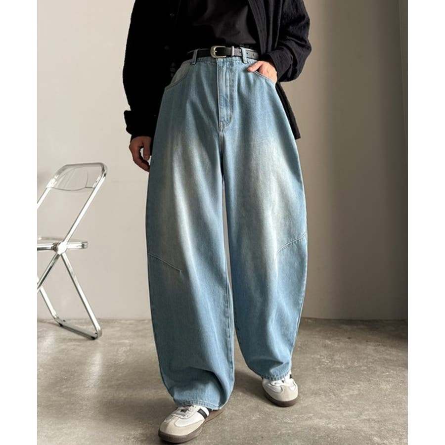 「Blasted Curve Silhouette Barrel-Leg Denim Pants/