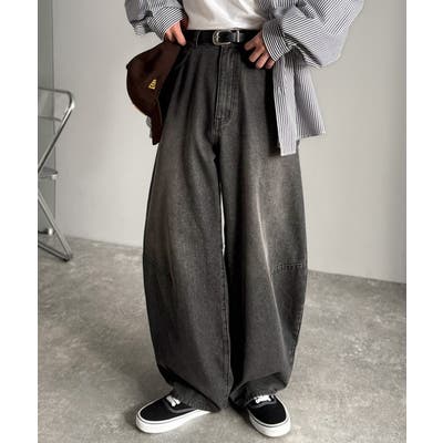 ブラスト加工カーブシルエットバレルレッグデニムパンツ」