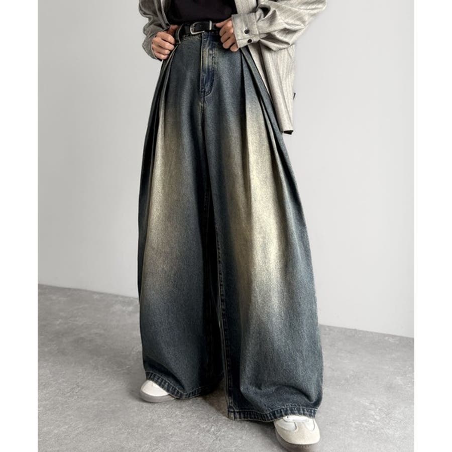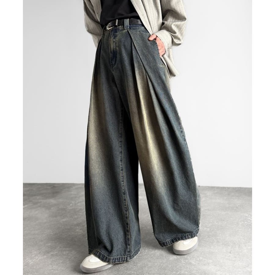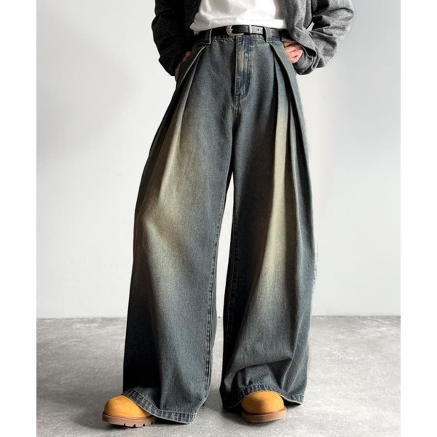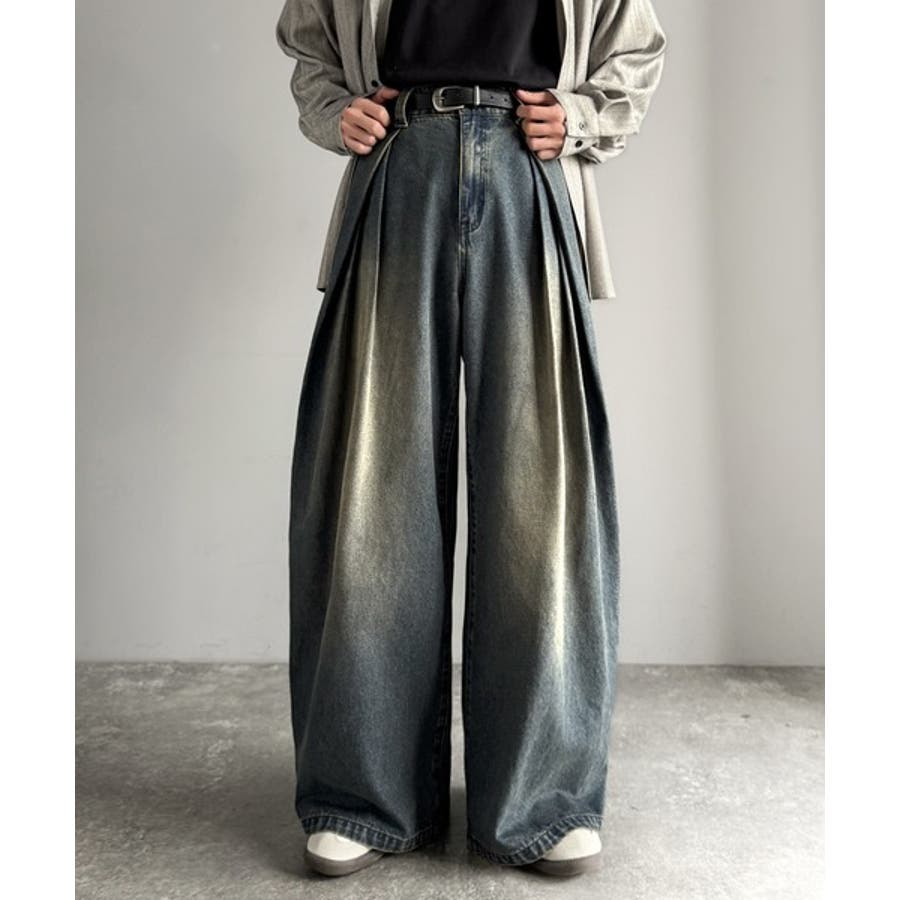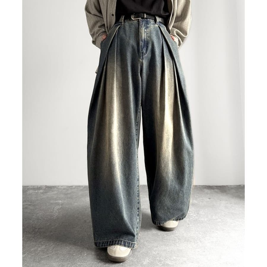ヴィンテージ加工3タックワイドバルーンデニムパンツ Vintage Washed
