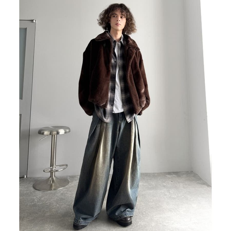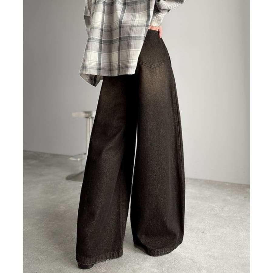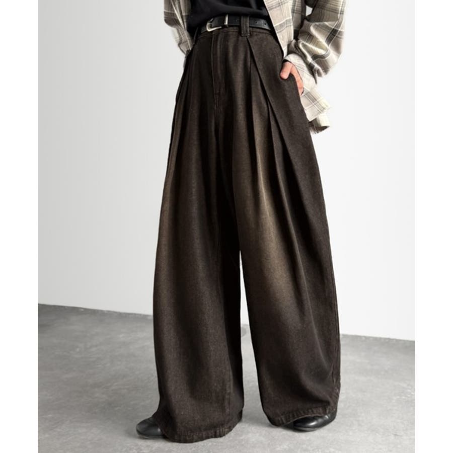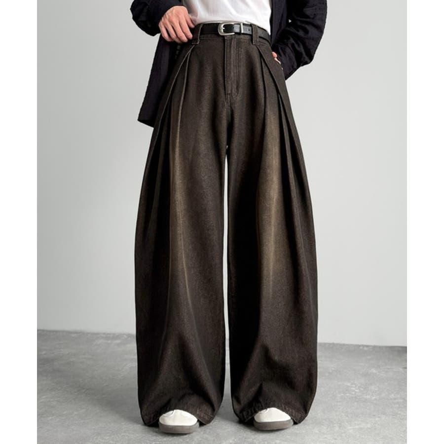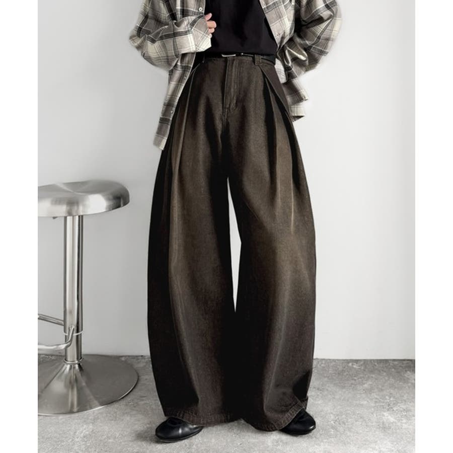 ヴィンテージ加工3タックワイドバルーンデニムパンツ」