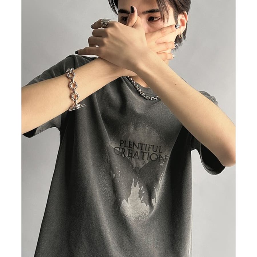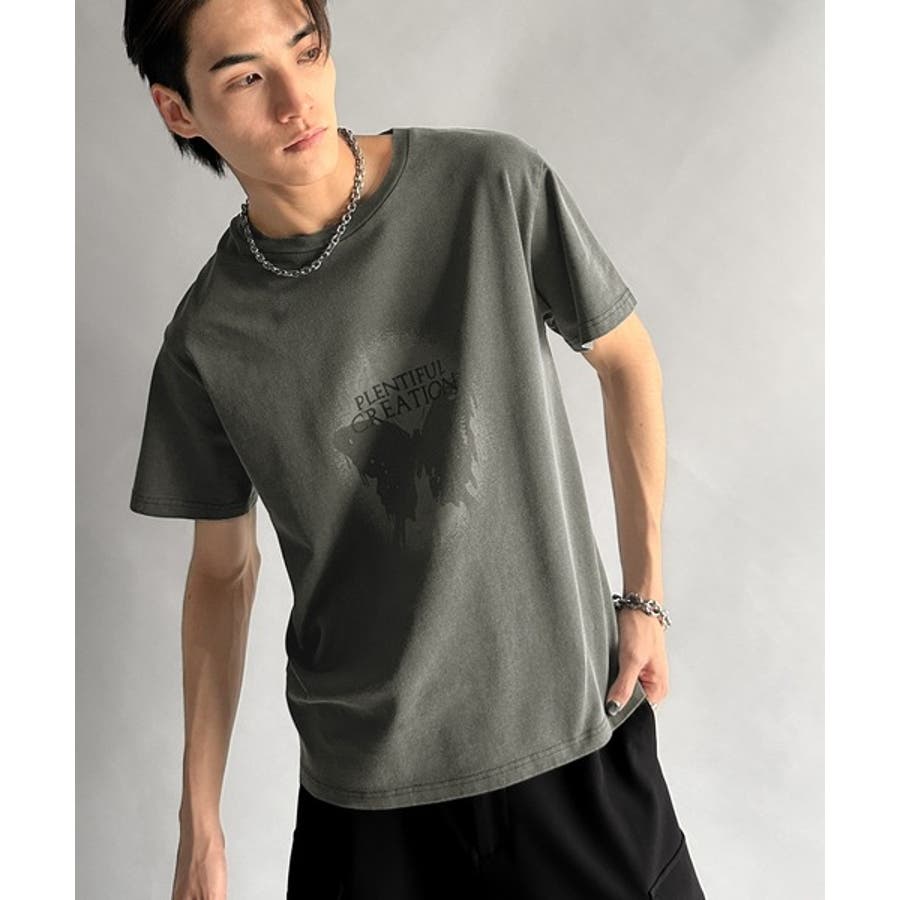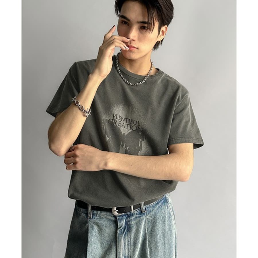 「即トレンド男子。」タイトフィットピグメント加工プリントTシャツ Tight F…