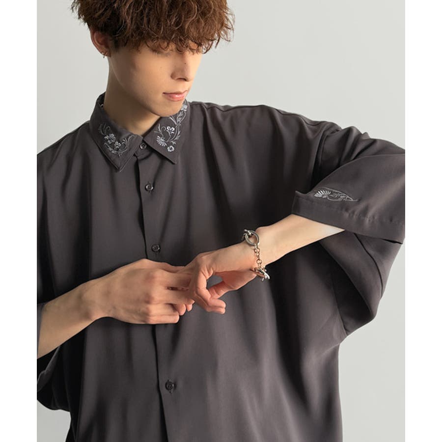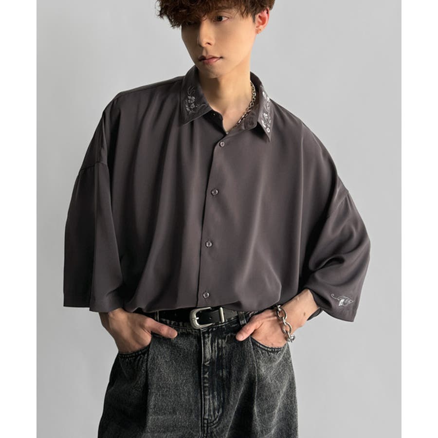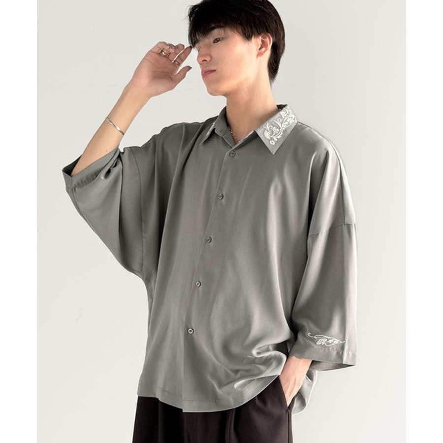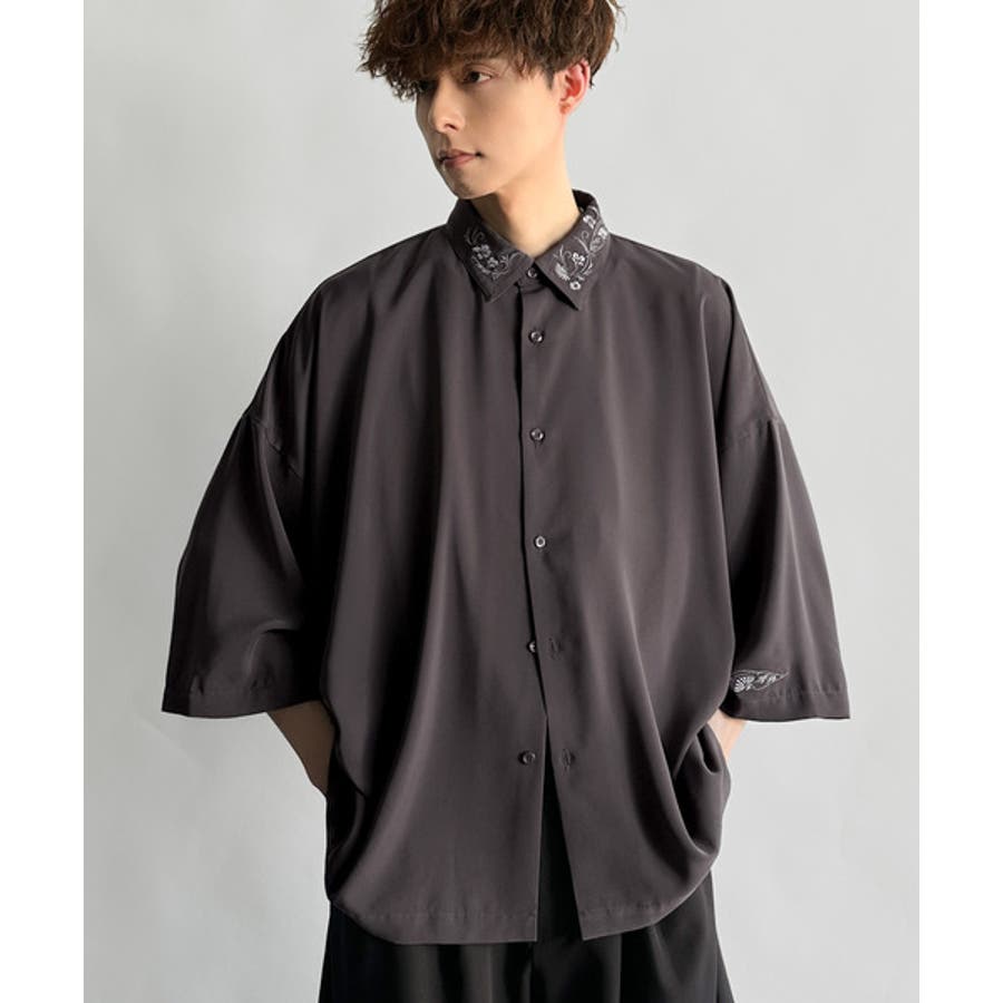 「Embroidered Collar Draped Dolman Shirt/衿刺繍ドレープドルマンシャツ」