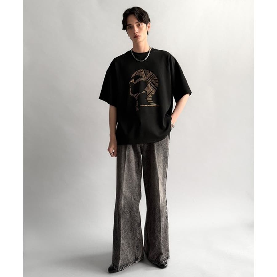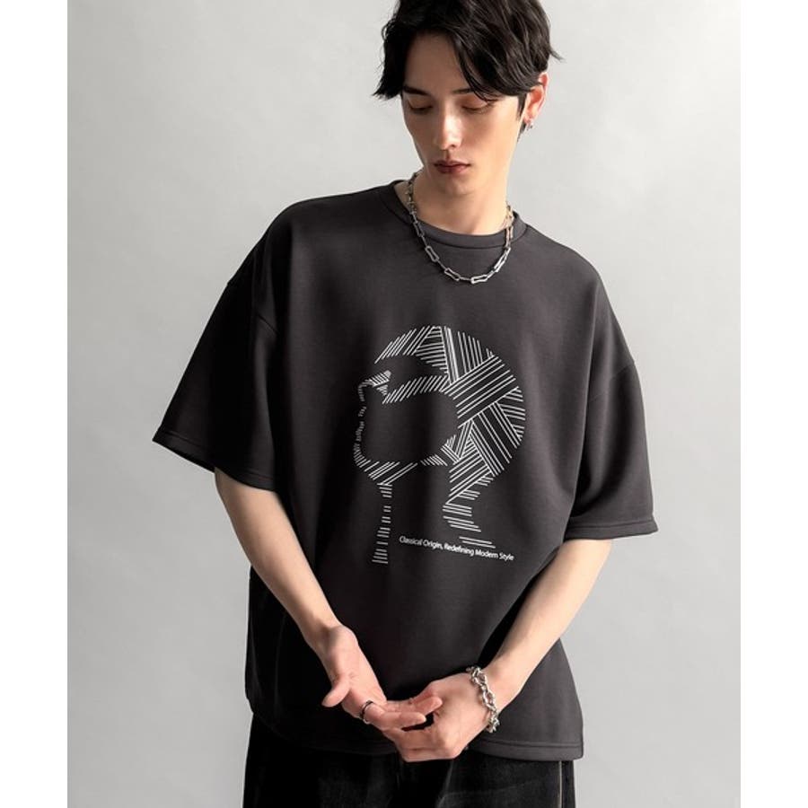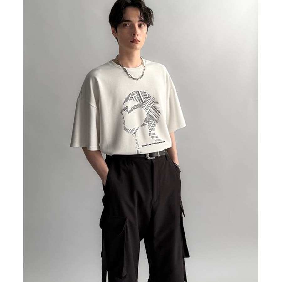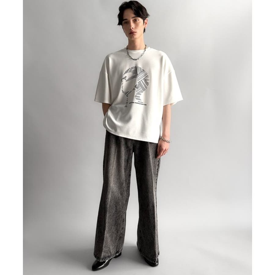 このフェイスグラフィックオーバーサイズ ダブルニットTシャツは、日常の幅広いシーンに活躍する万能アイテム。